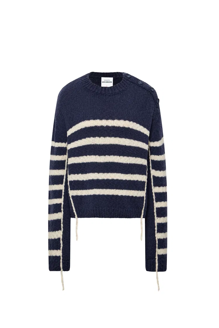 Kirsten Striped Pullover Sweater in Wool Blend Bouclé Knit