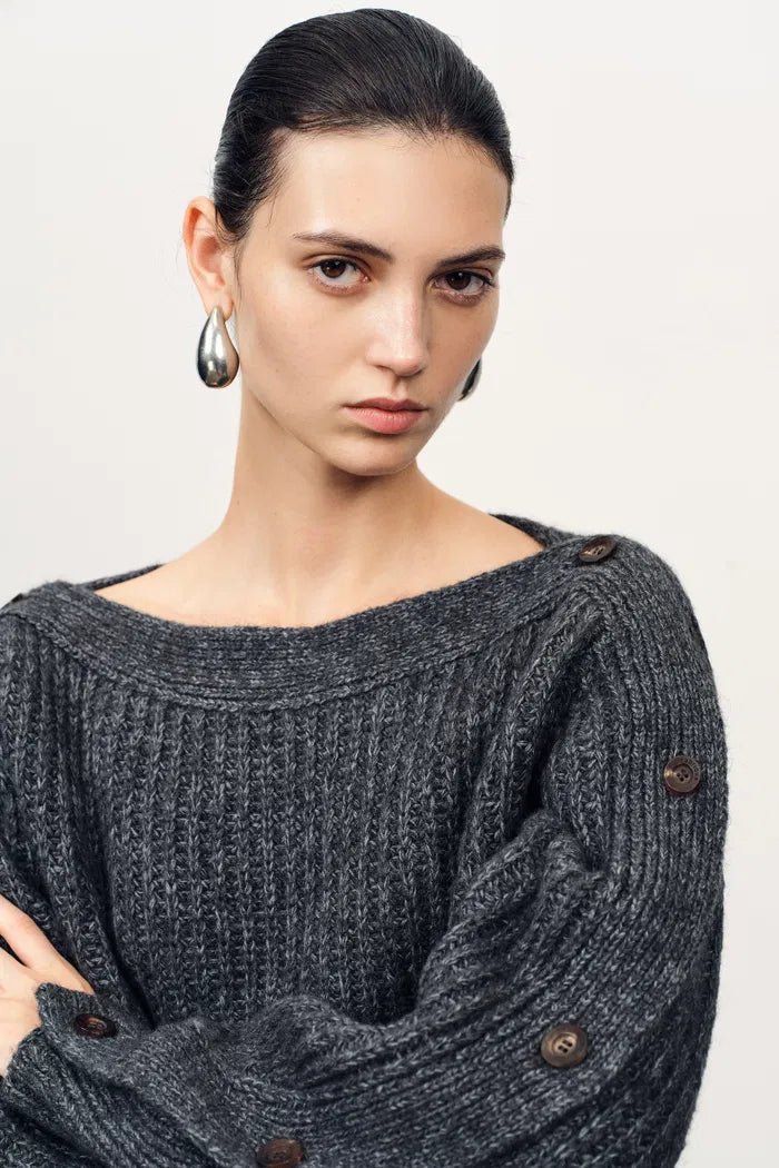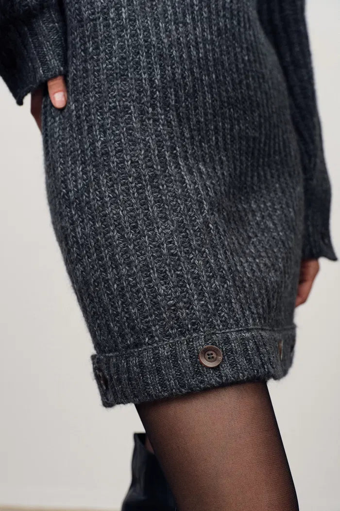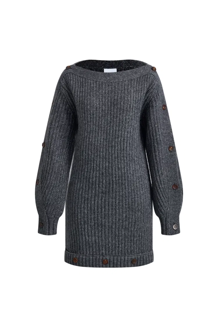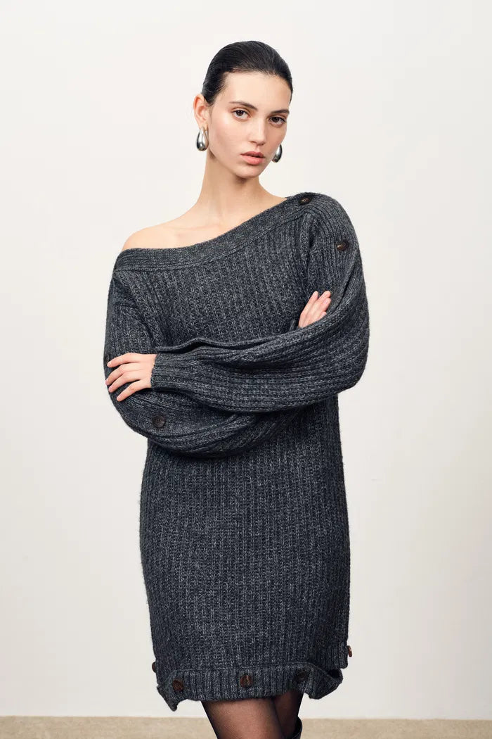 Kylie Adjustable Off Shoulder Dress in Coarse-Spun Merino Wool Knit