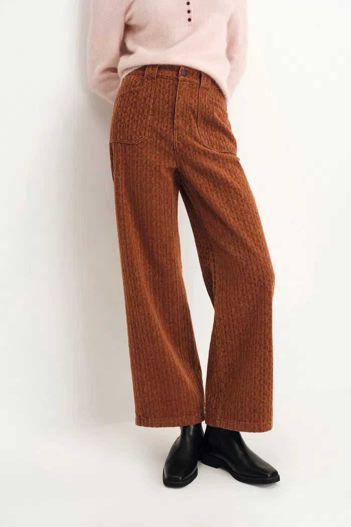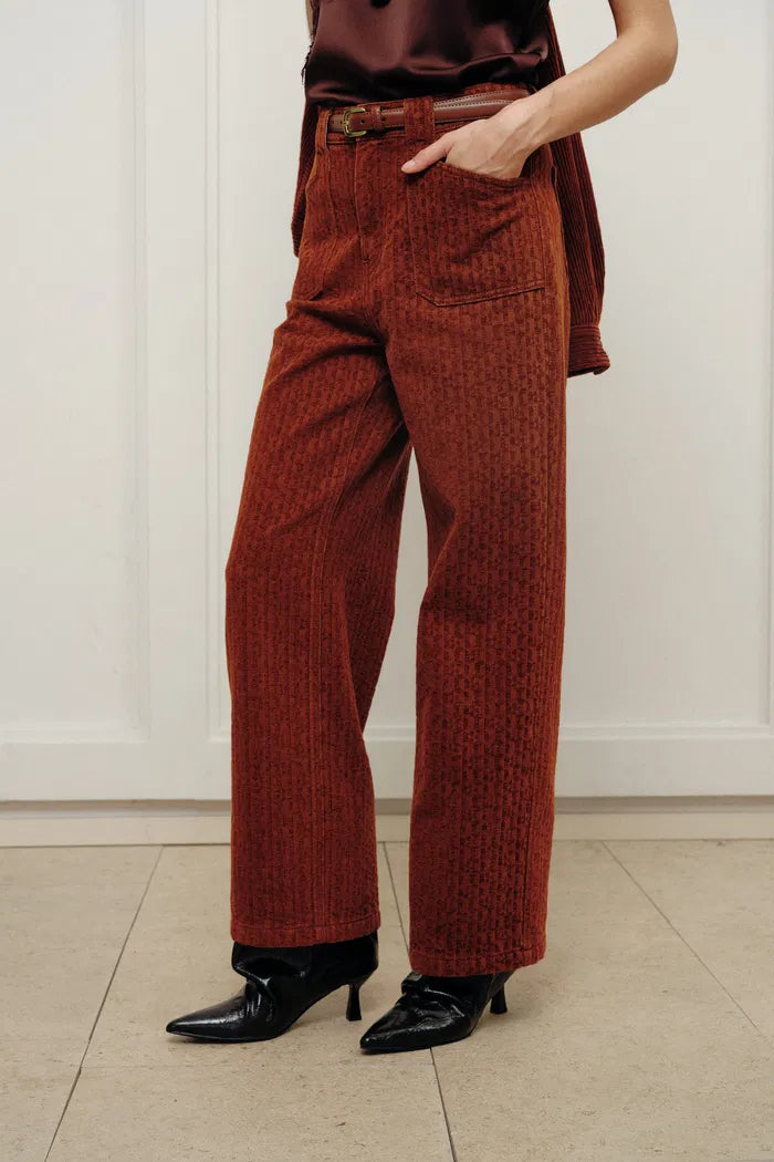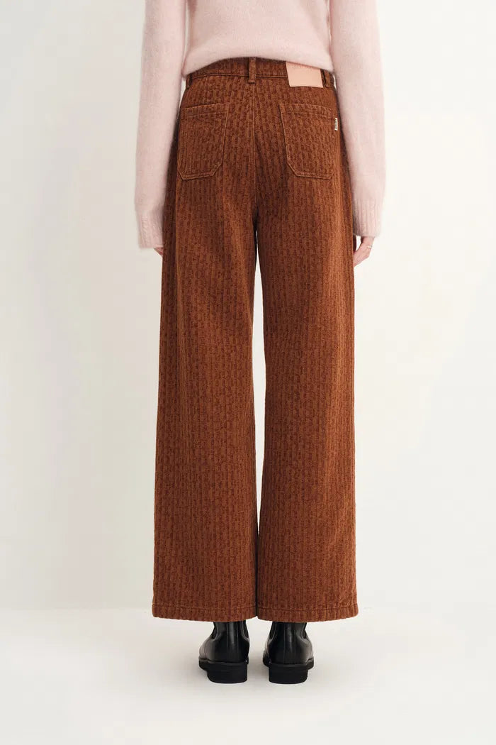 Kyra Geometric Texture Straight Leg Jeans in Jacquard Denim