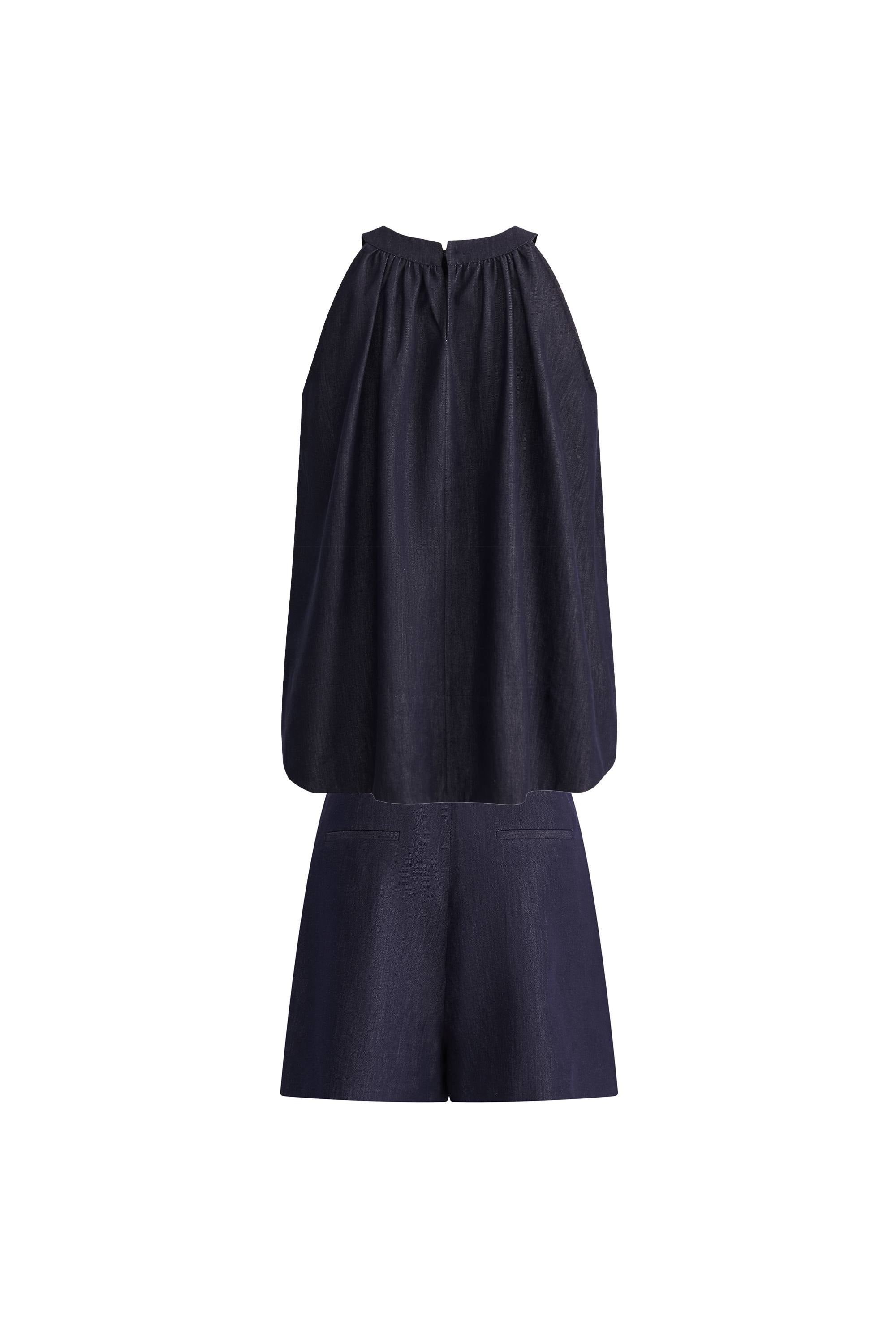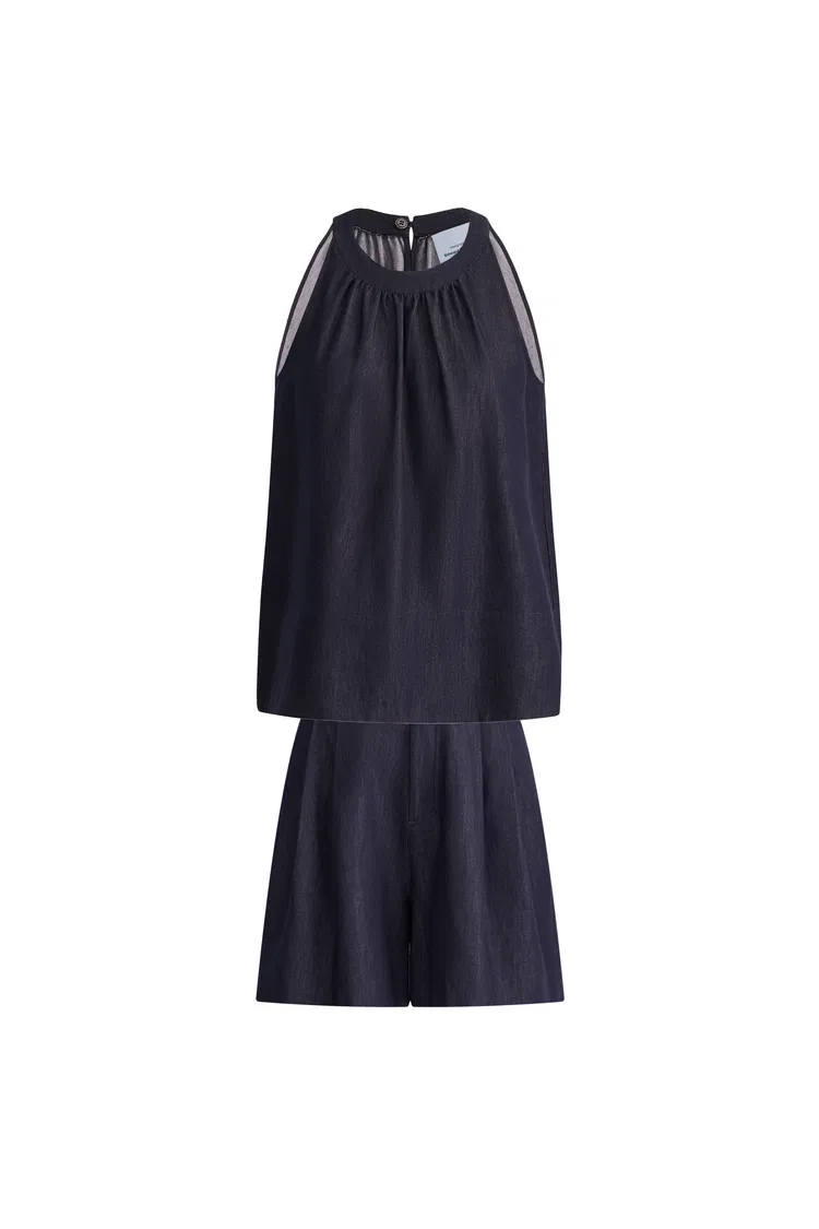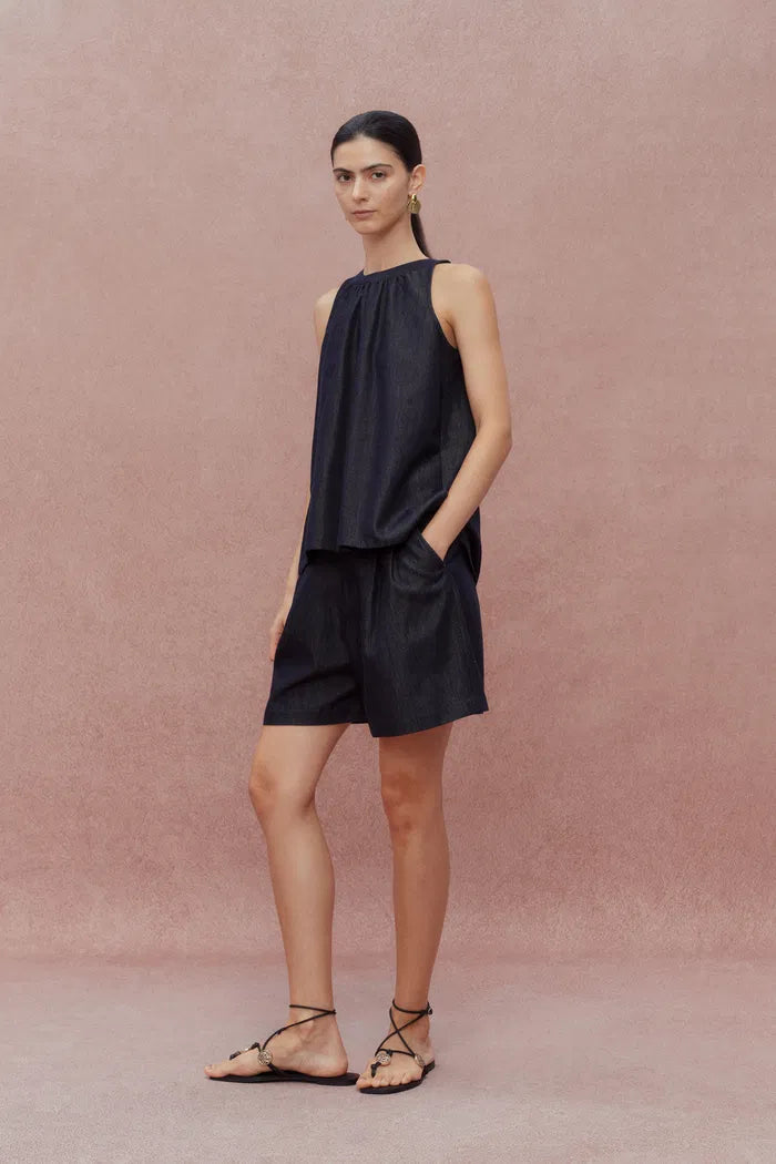 Kyra Sleeveless Vest Top and Short Matching Set in Lyocell Denim