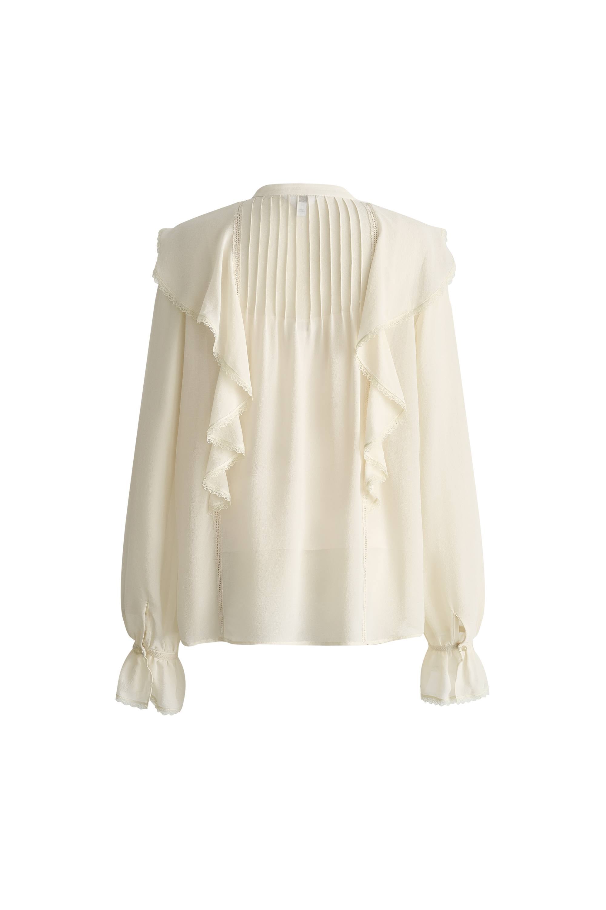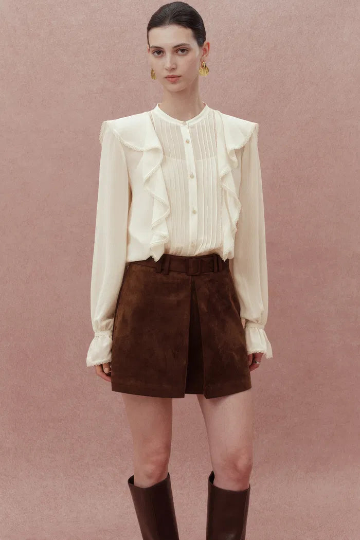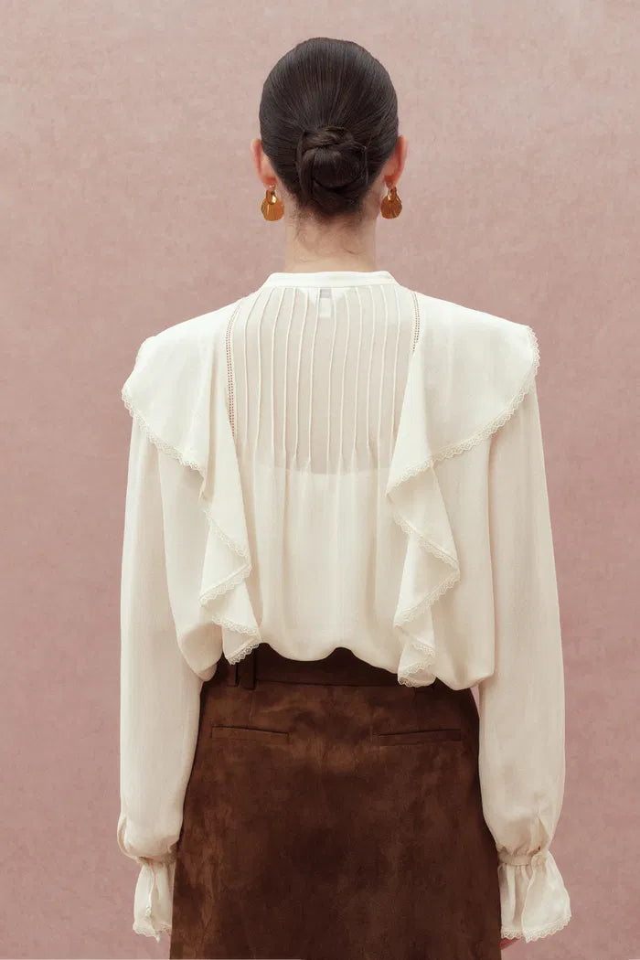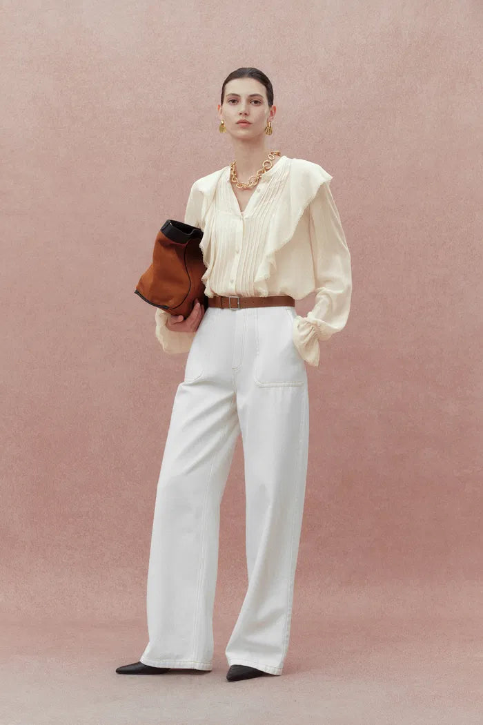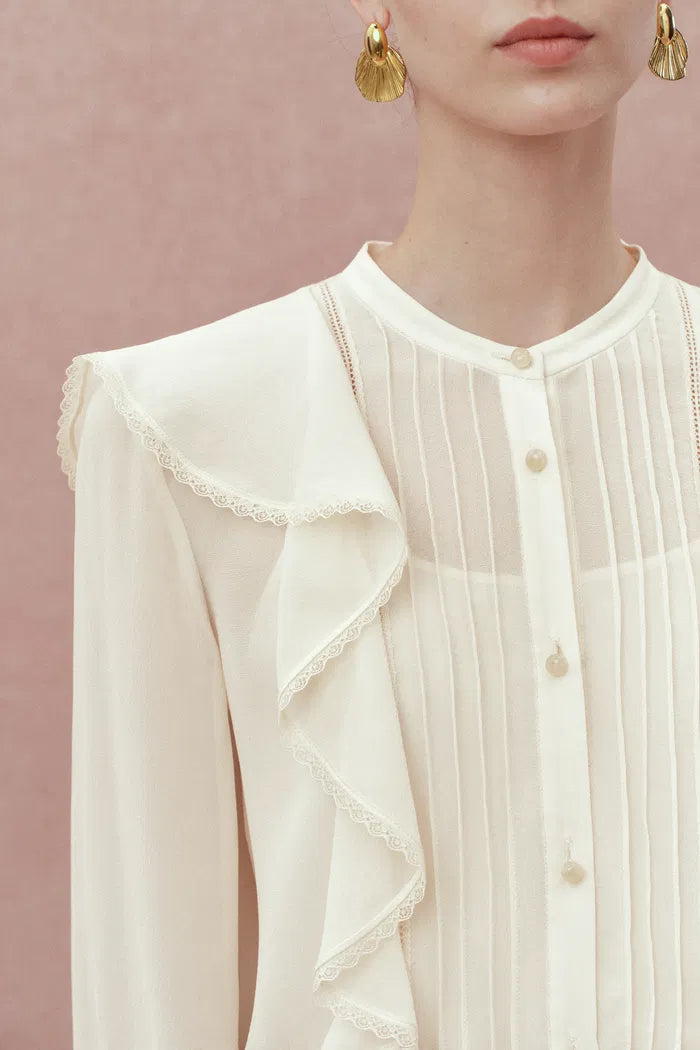 Lea White Ruffled Pleated Shirt in Silk