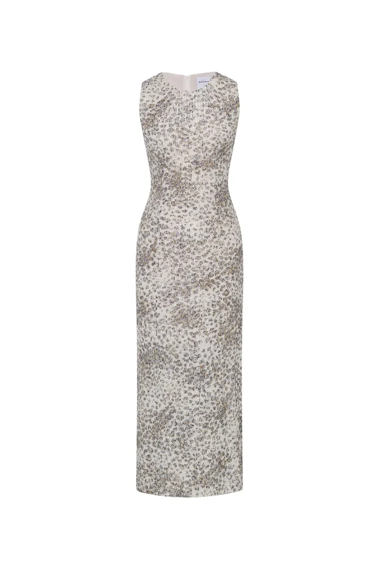 Leopard Handstitched Sequin Midi Dress in Stretch Sequin Mesh
