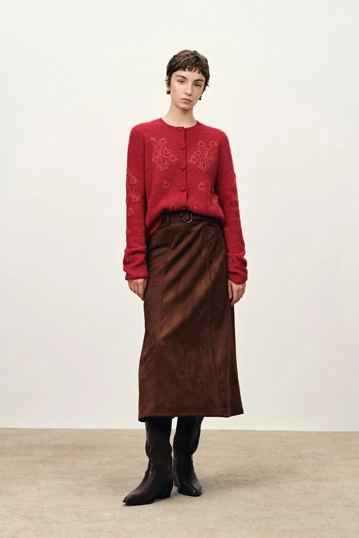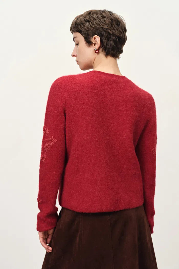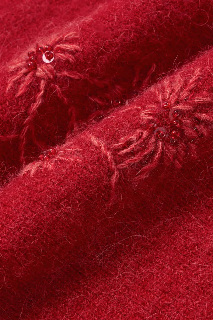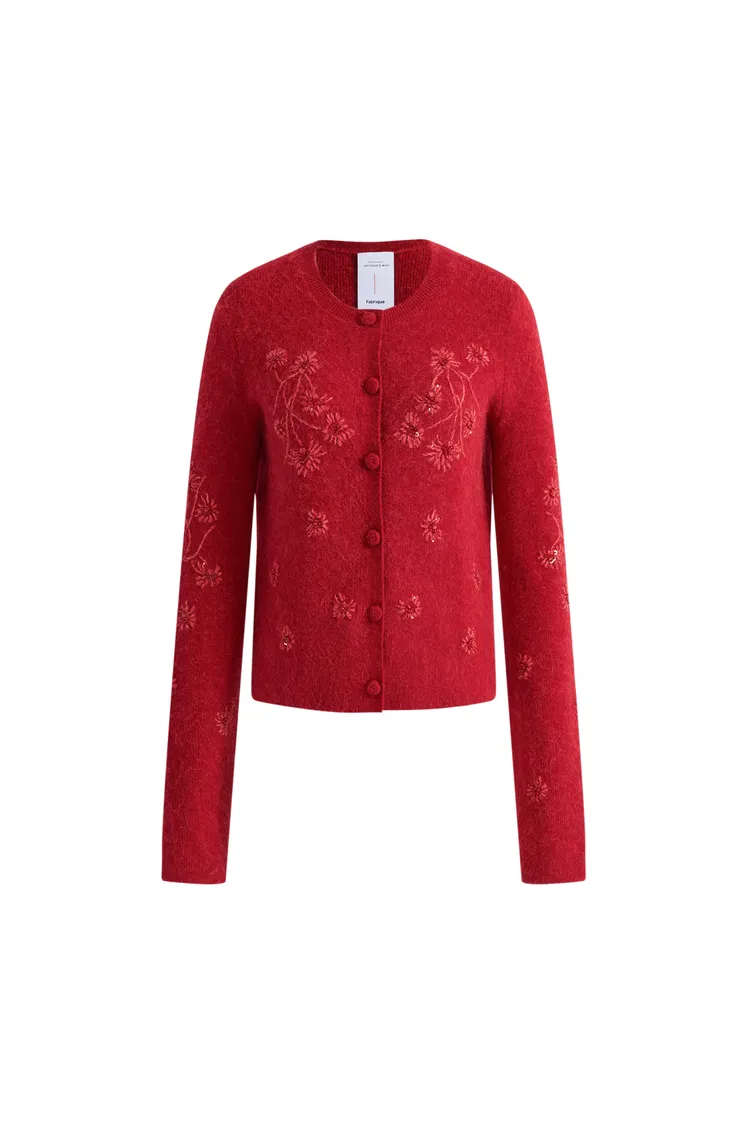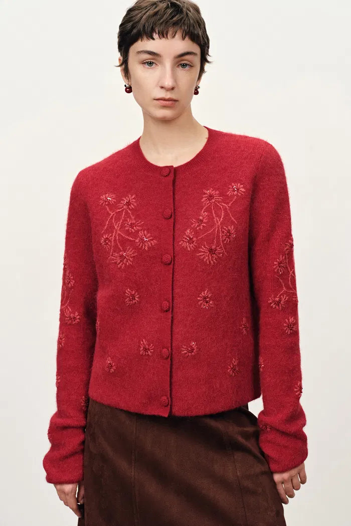 Letitia Hand Crocheted Beaded Floral Cardigan in Wool Alpaca Blend Knit