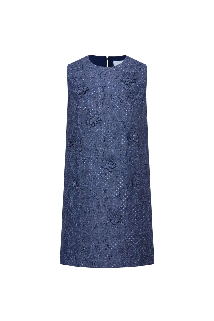 Lila Textured Sleeveless Short Dress in Imported Korean Metallic Lace