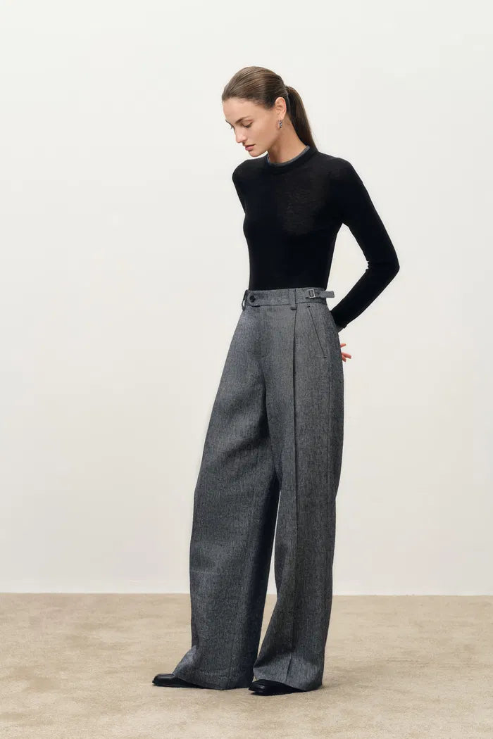 Lillian Adjustable Waistband Trousers in Merino Linen Blend