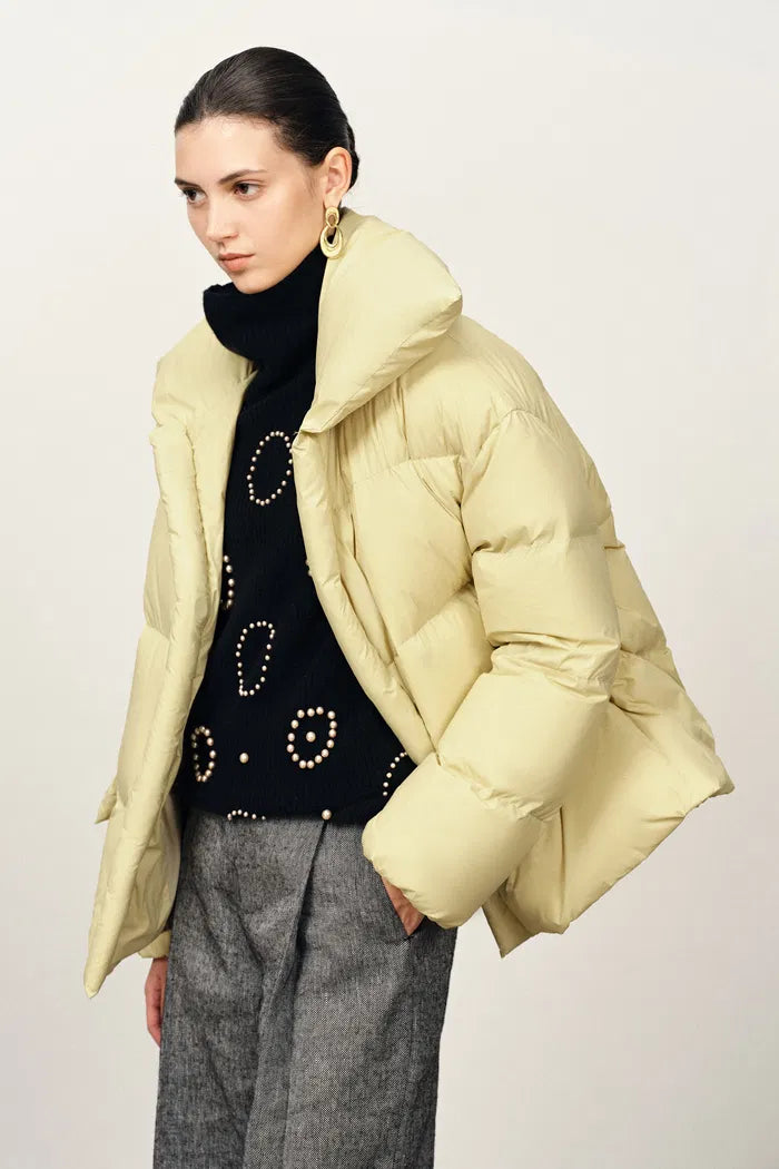 Linn Reversible Collar Lightweight Wrap Down Jacket in Ultra-Light Nylon