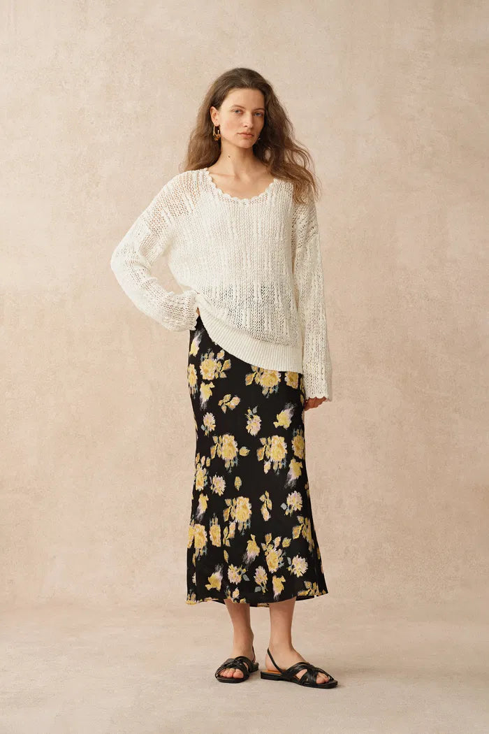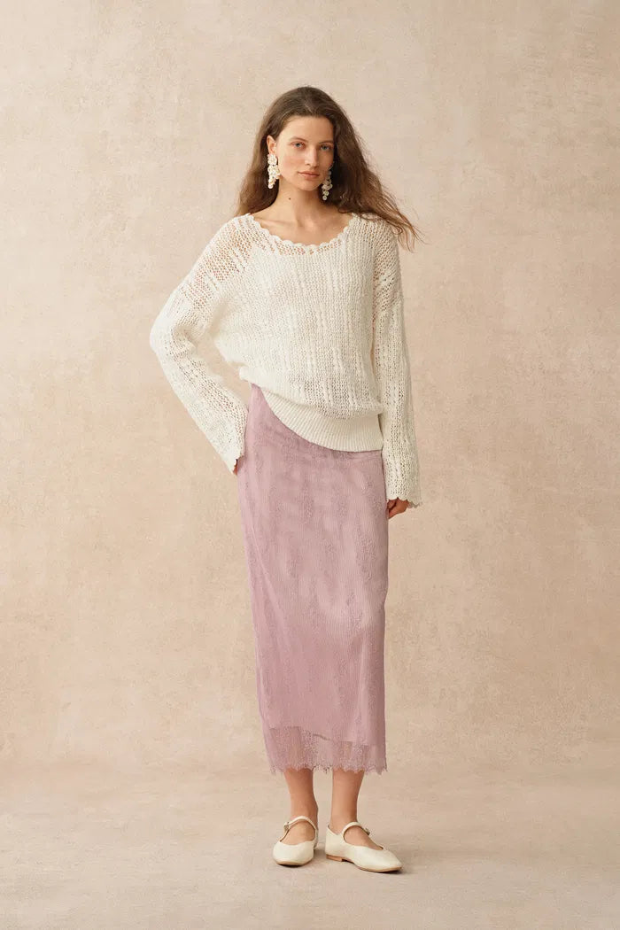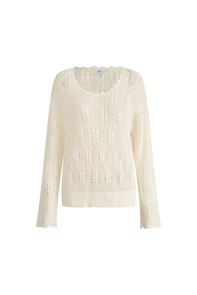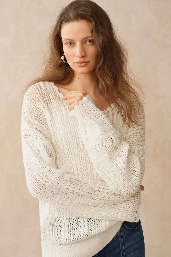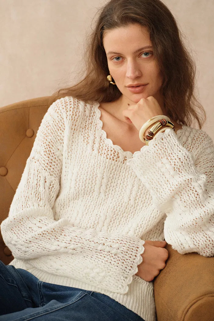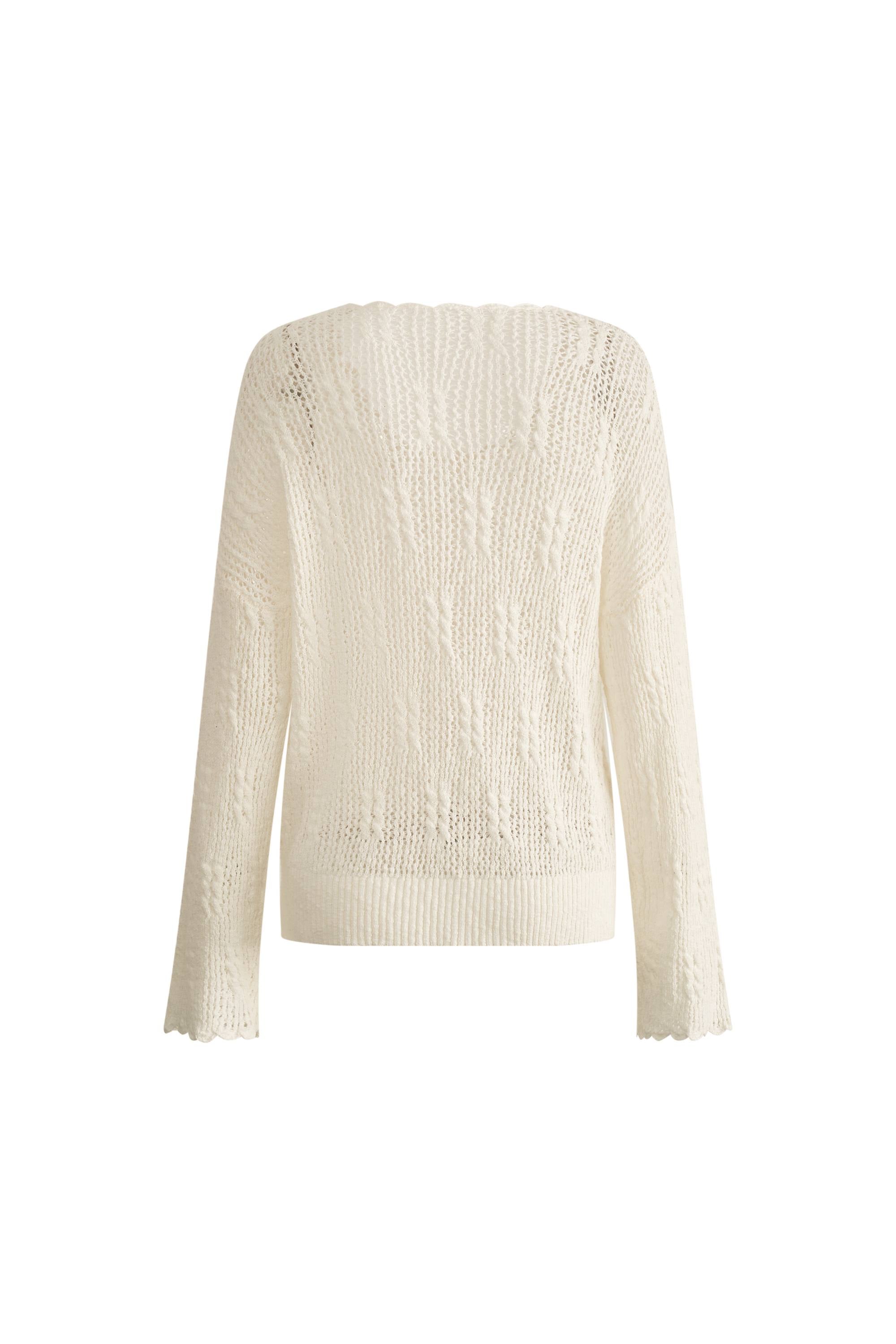 Livy Scalloped Neckline Cardigan in Textured Cotton Knit
