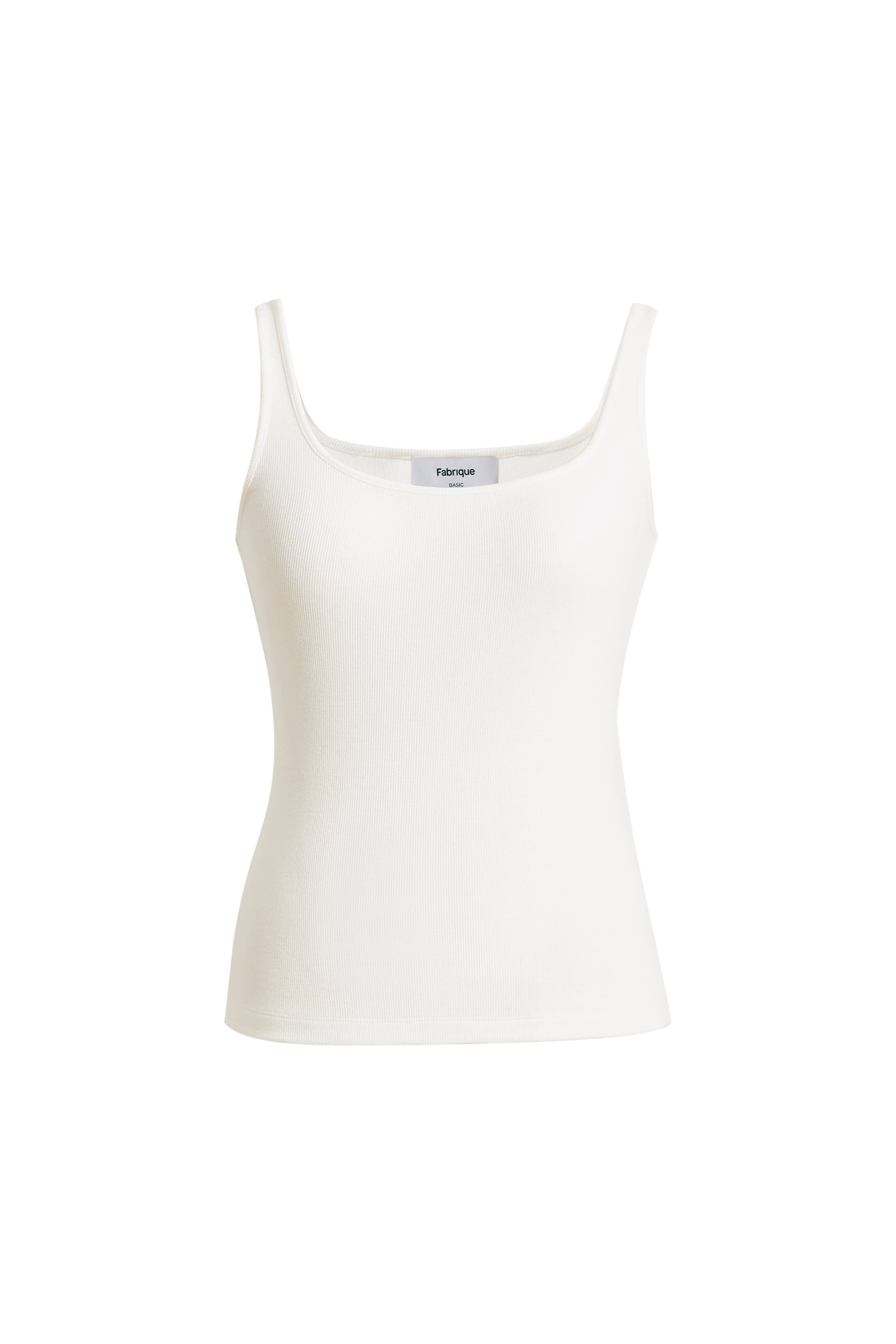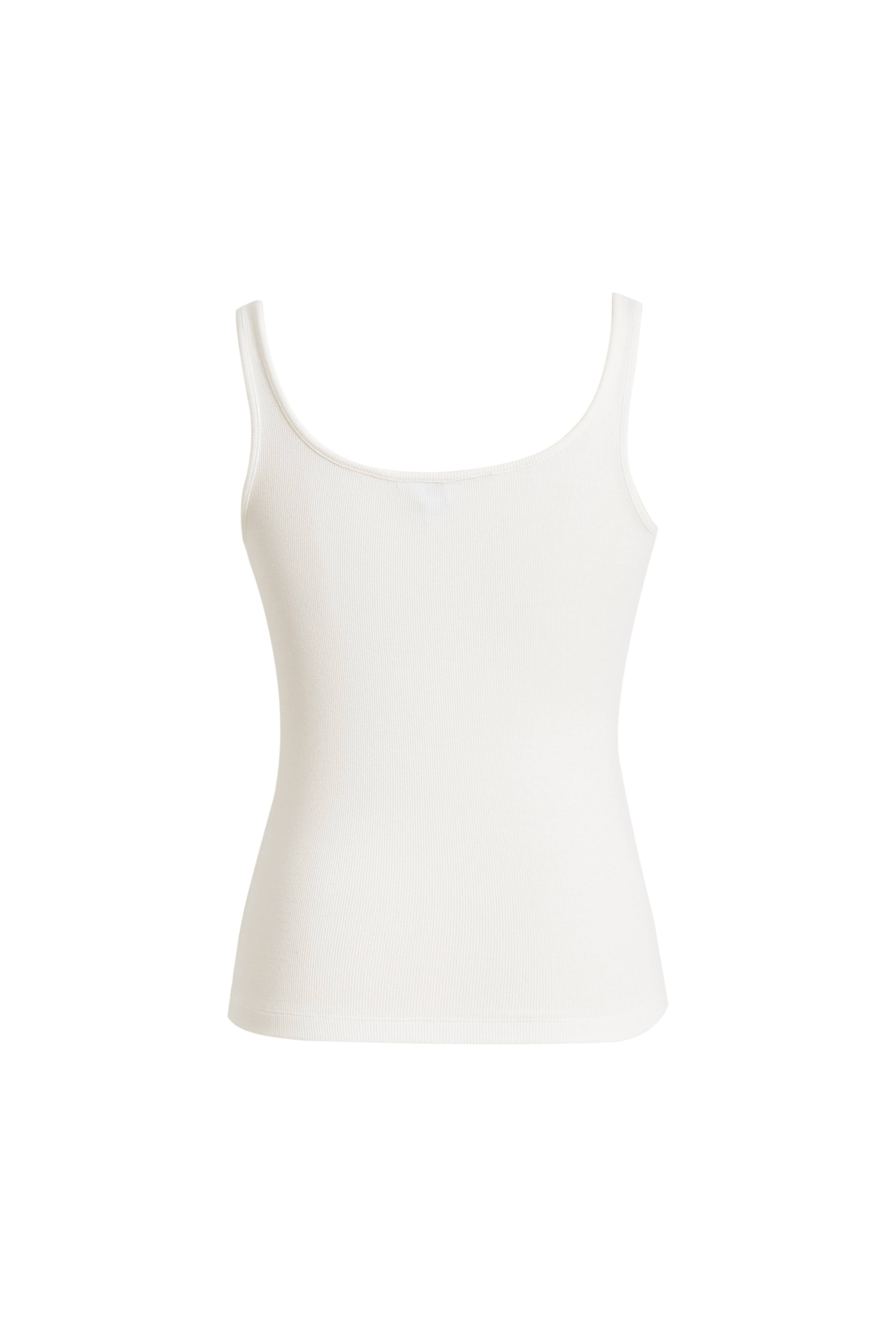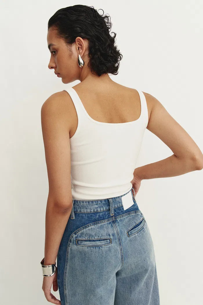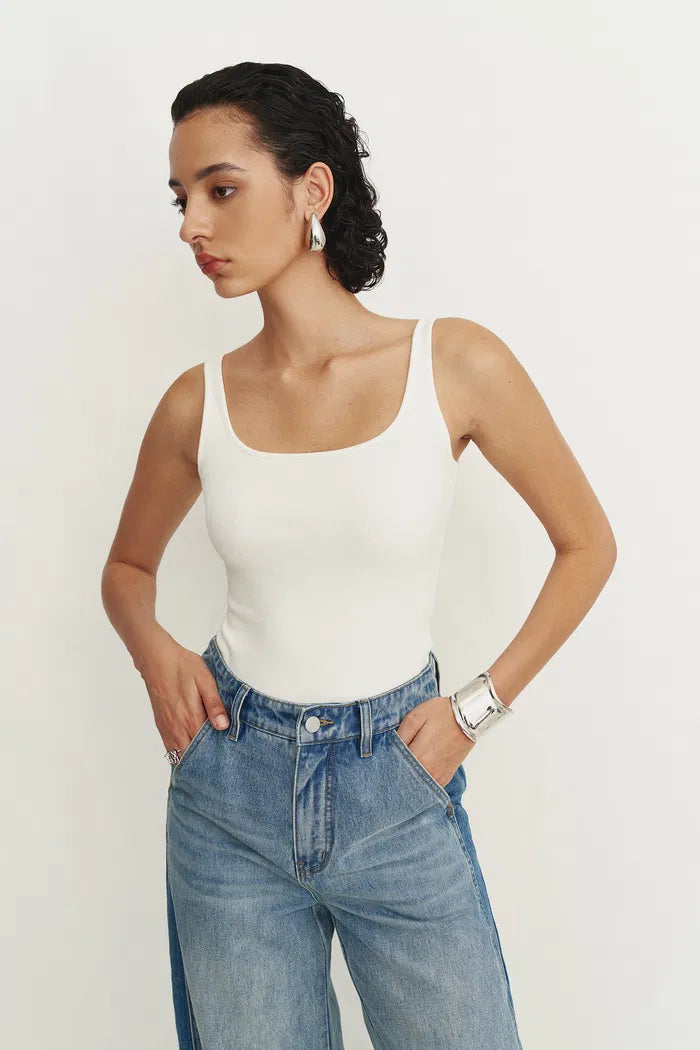Liz Square Neck Body Con Sleeveless Tank Top in High-Stretch Ribbed Knit