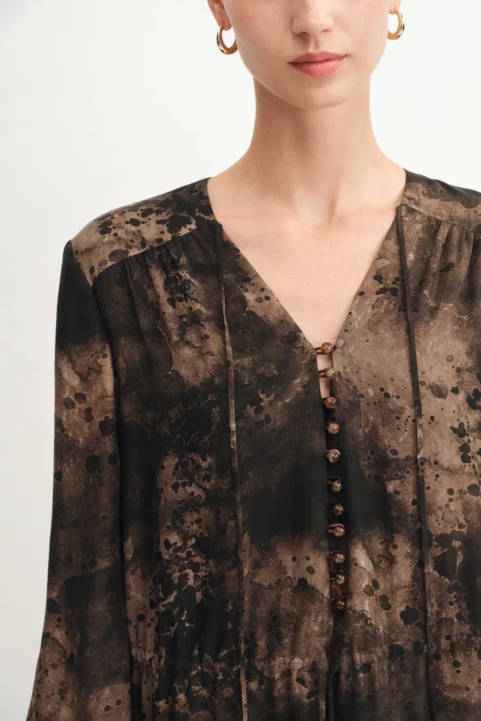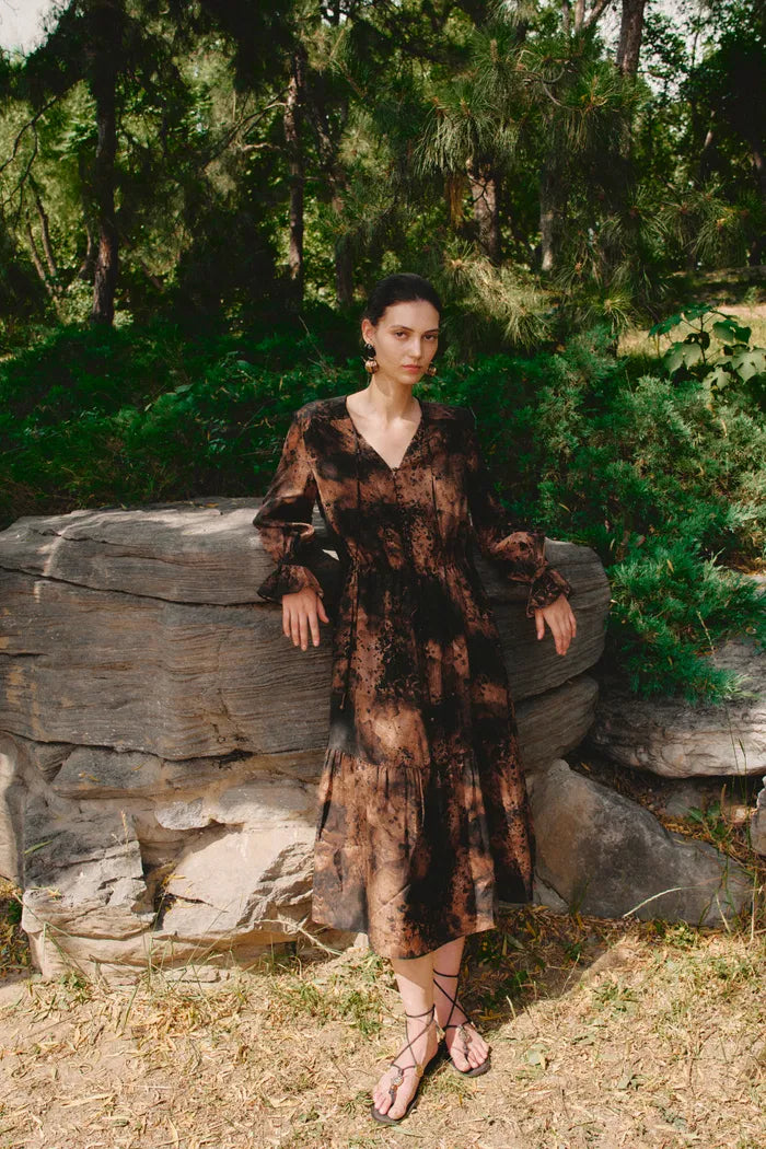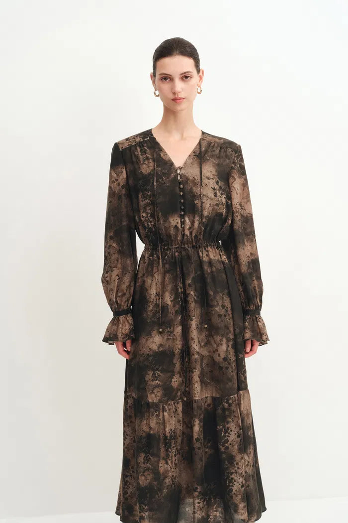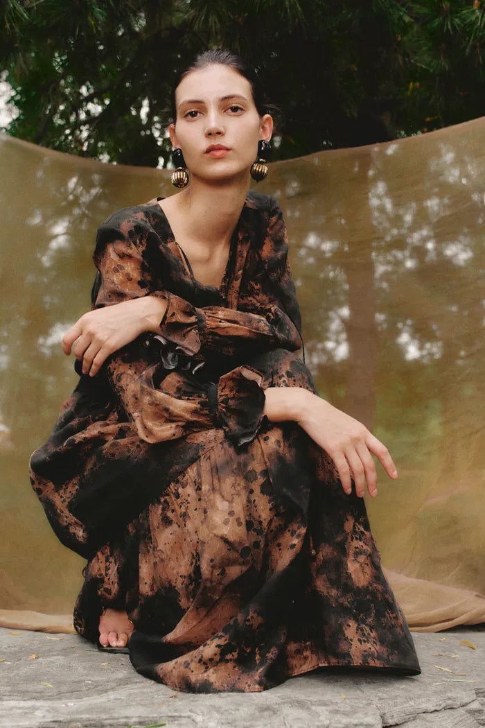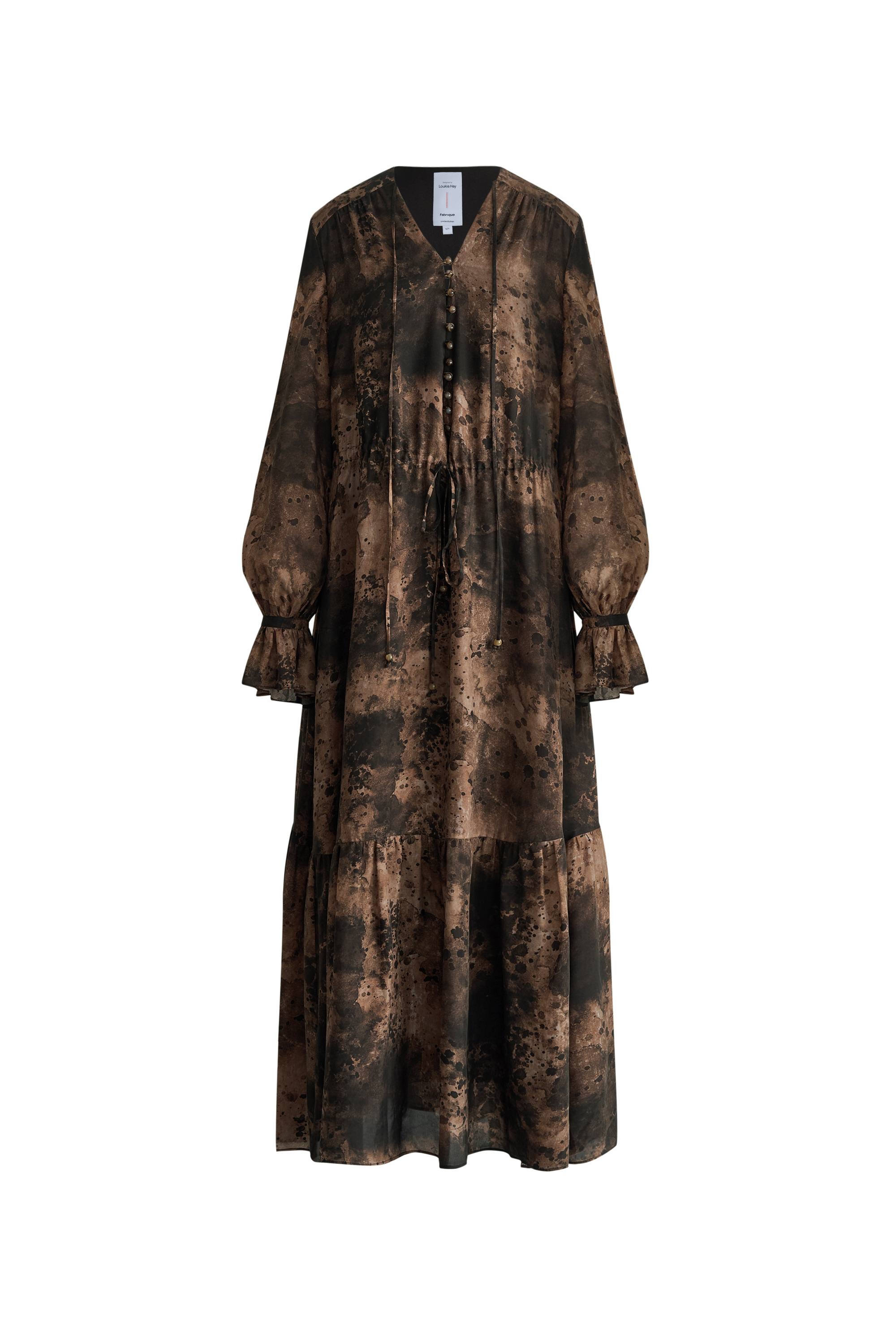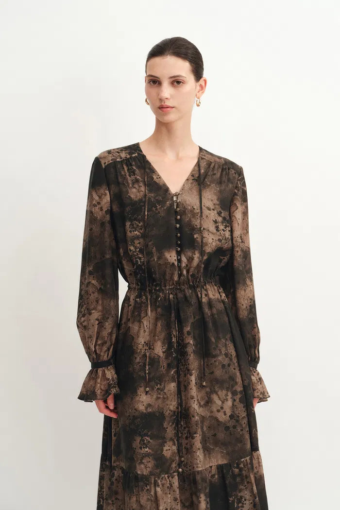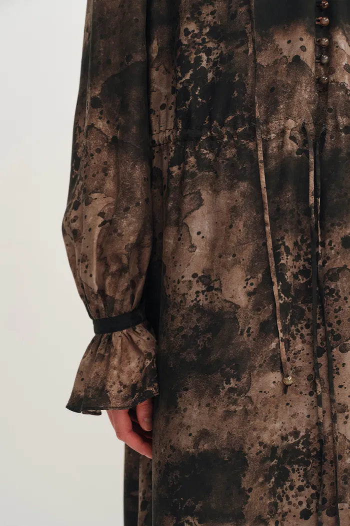 Louise Ink Print Long Sleeve Maxi Dress in Cupro