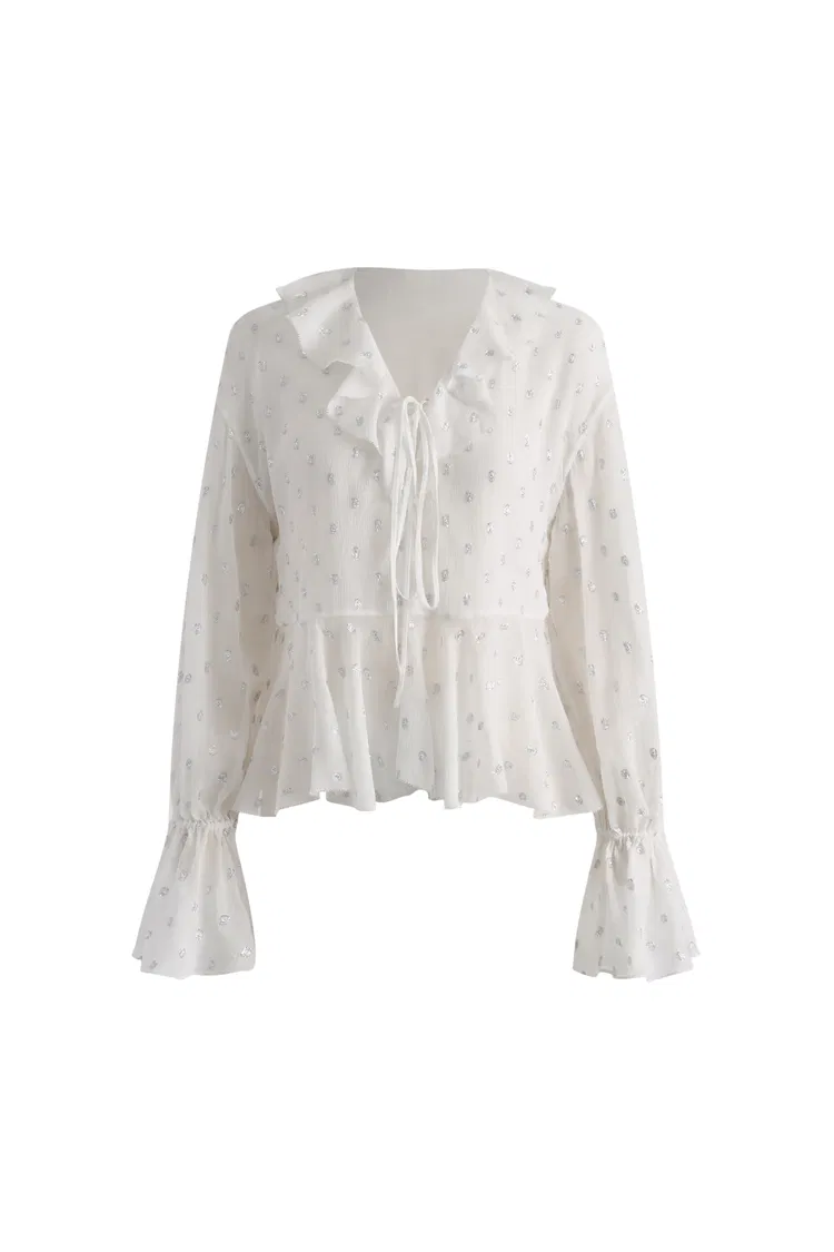- Ruffle V-neckline