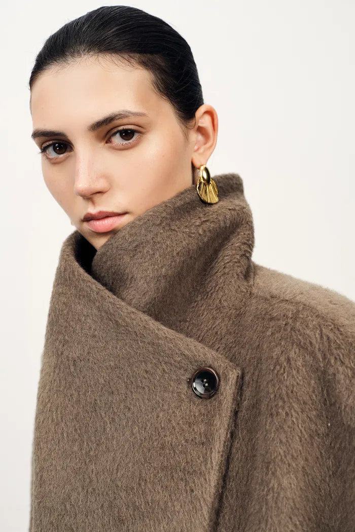 Lumi Mocha Wrap Coat in Alpaca Wool Blend