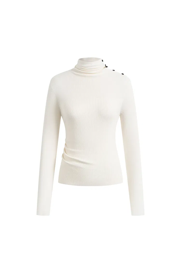 Lumina Slouchy Turtleneck Semi Sheer Bodice Fitted Top in Combed Wool