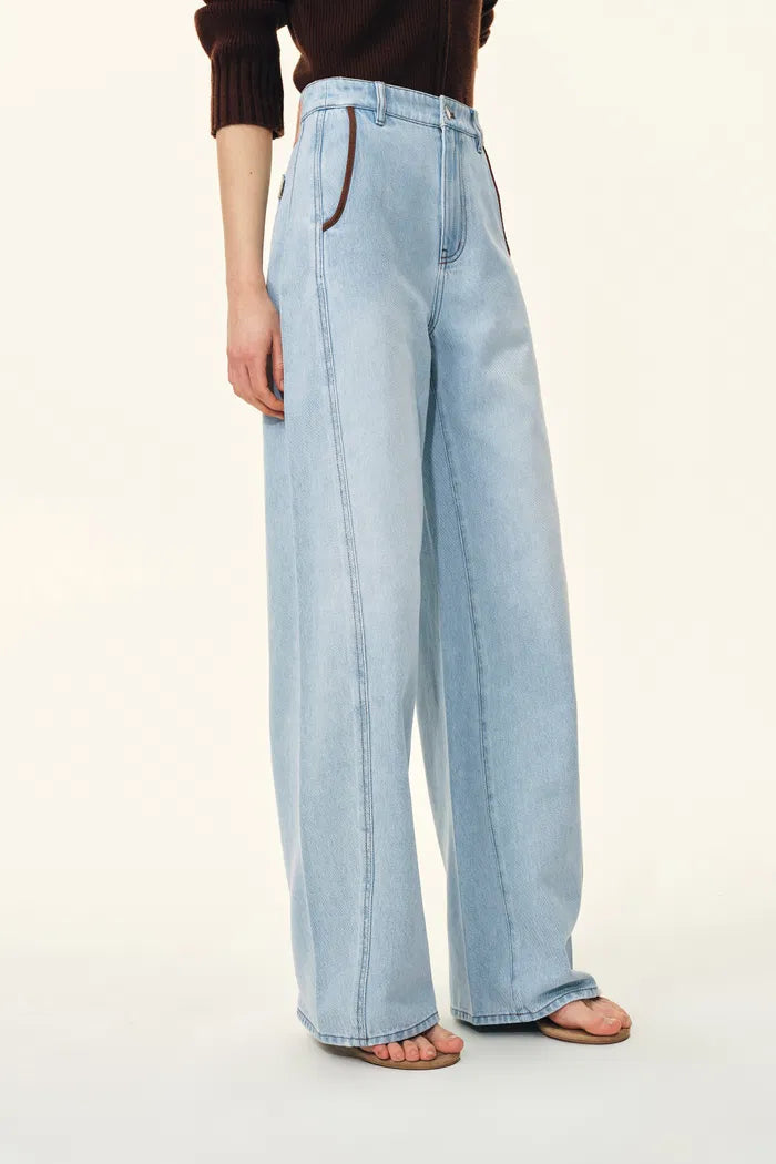 Luna Patchwork Soft Barrel Leg Jeans in Cotton Denim