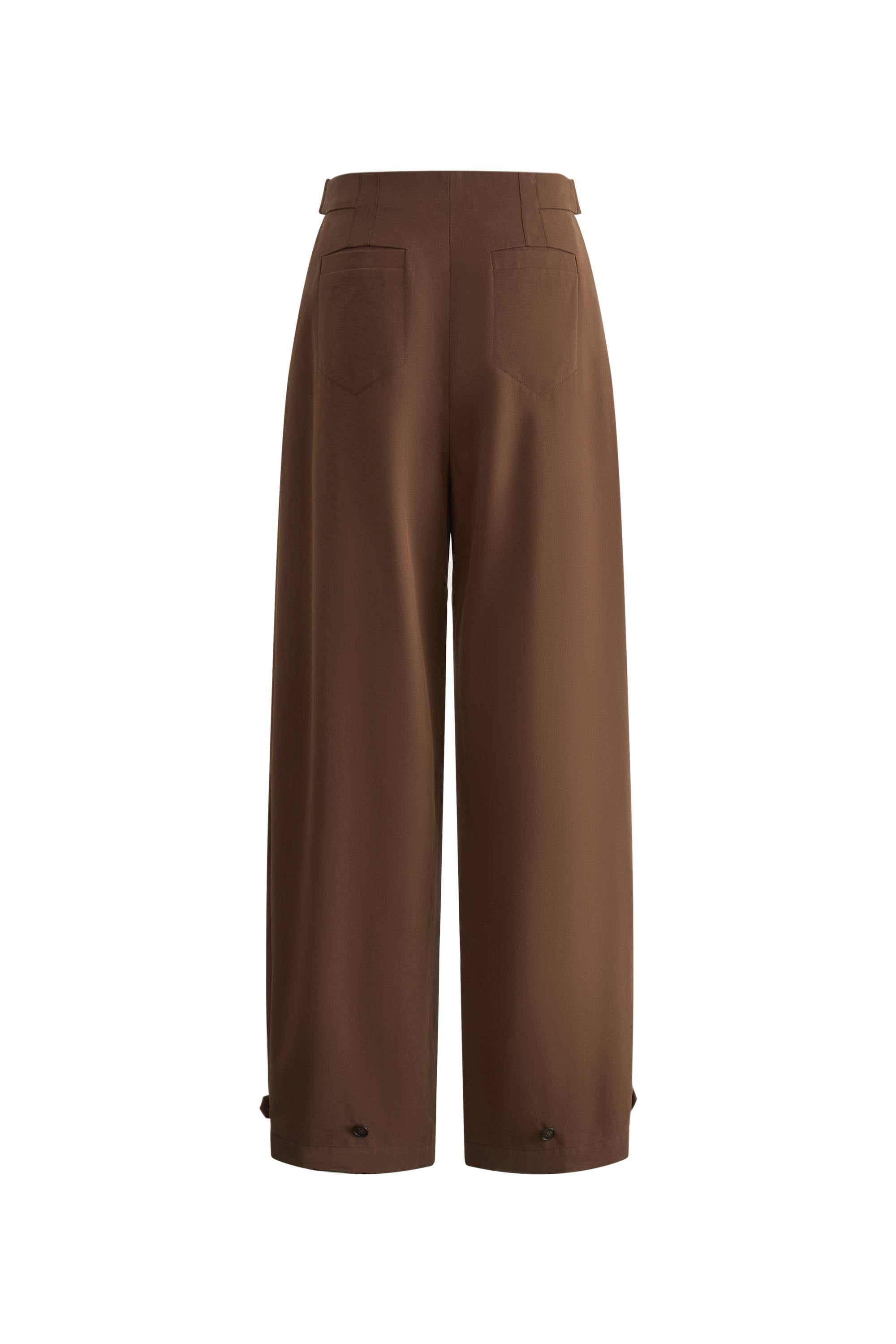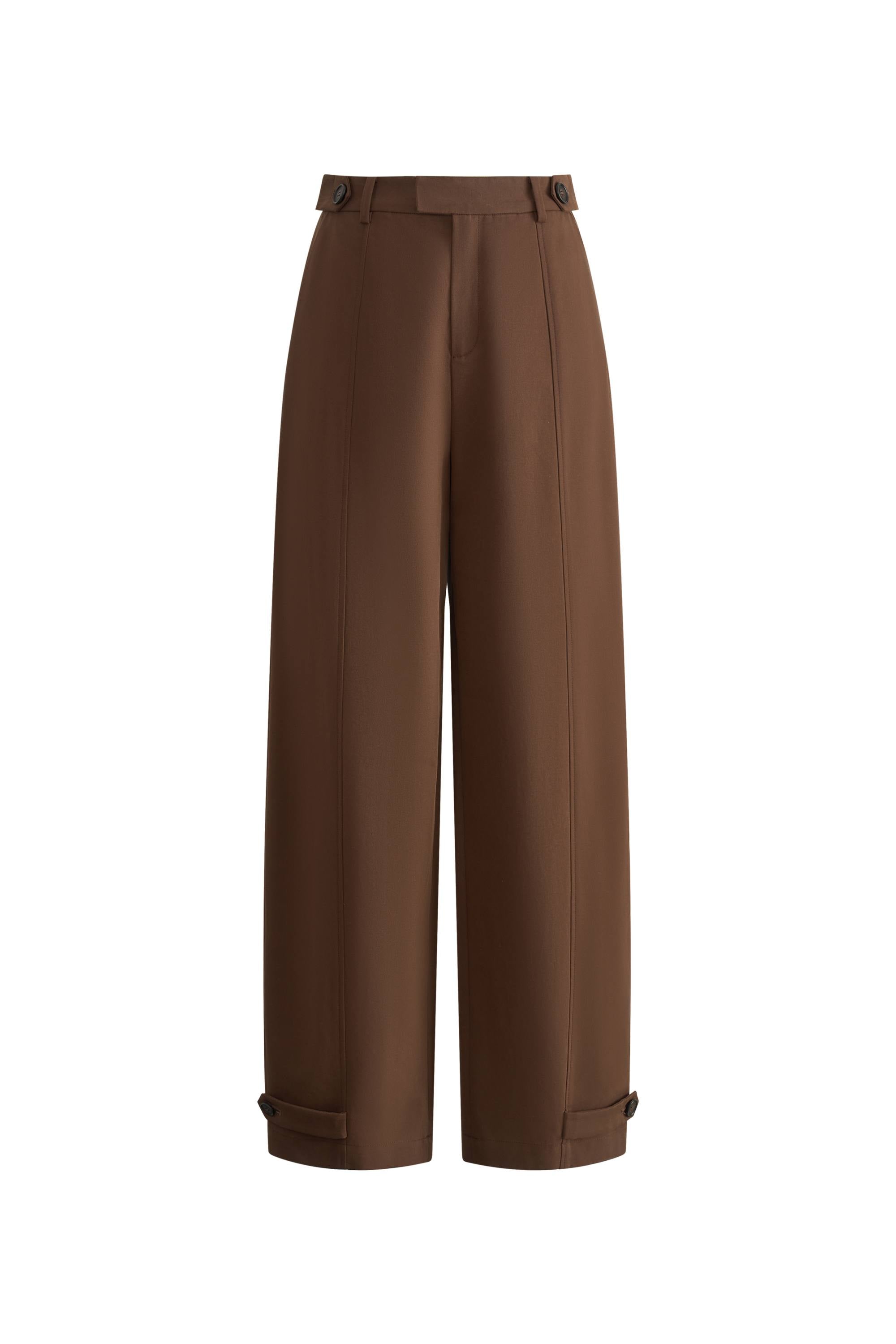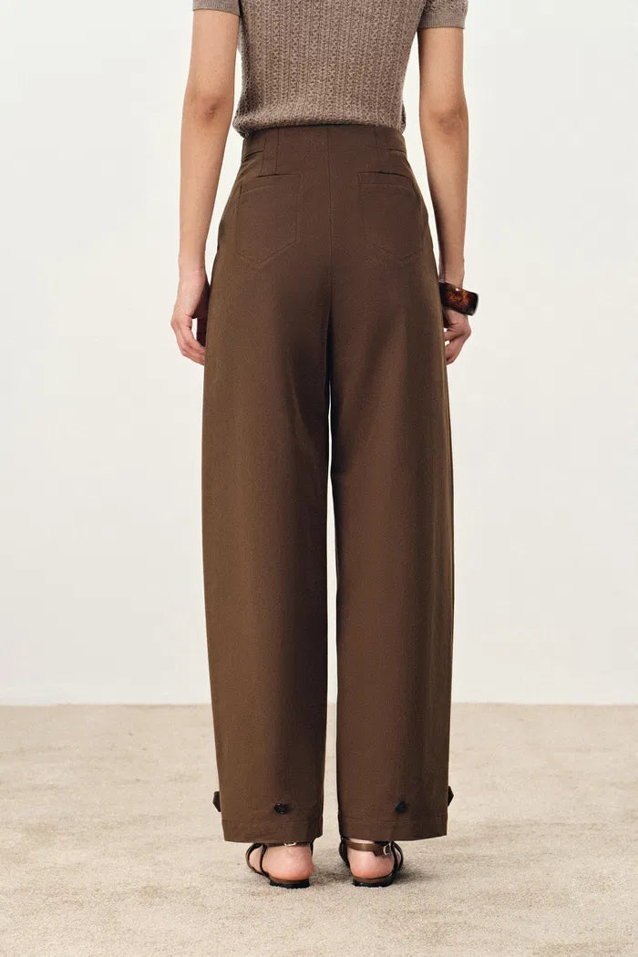 Lydia Buckle Curved Trousers in Cotton Twill