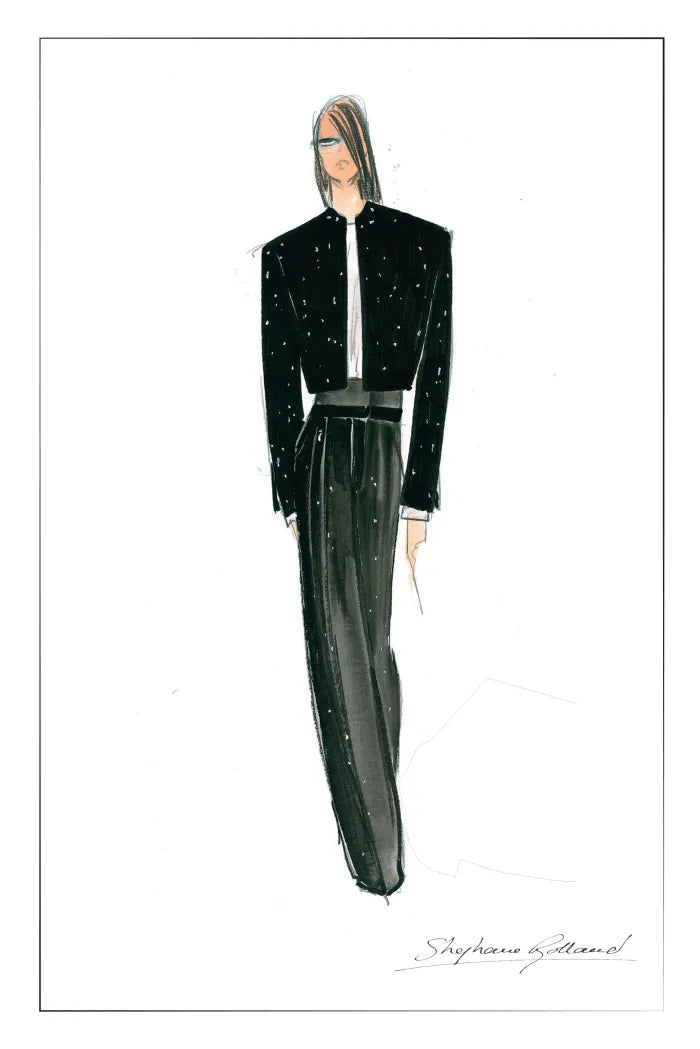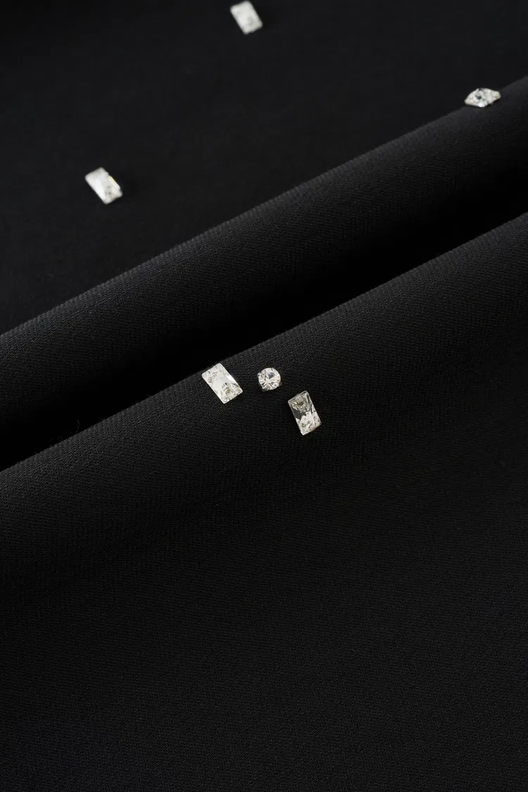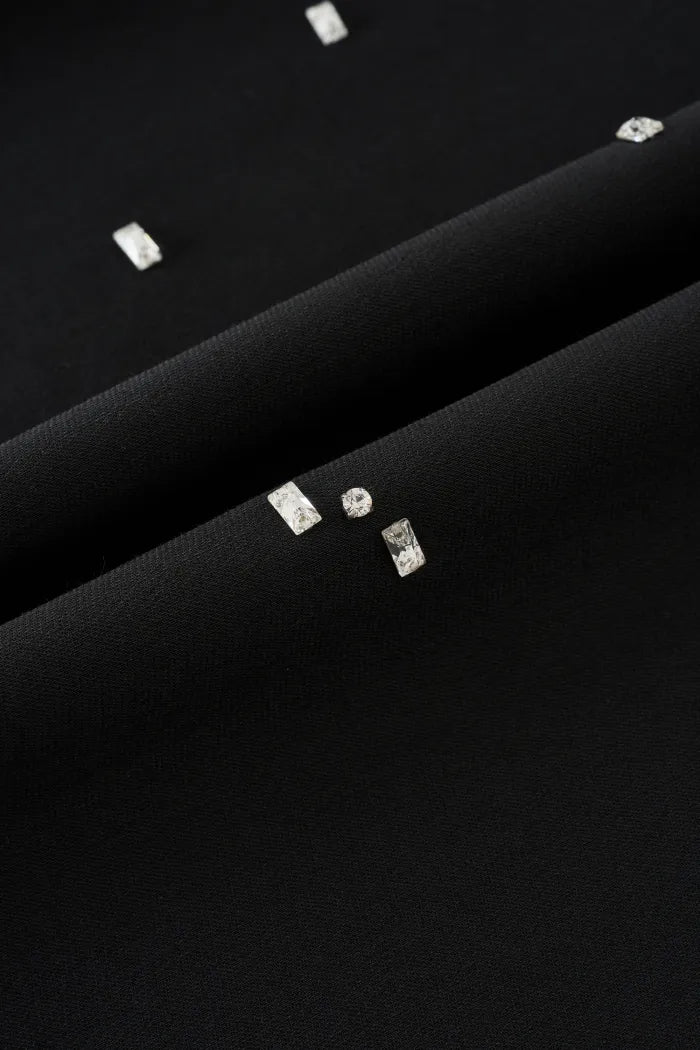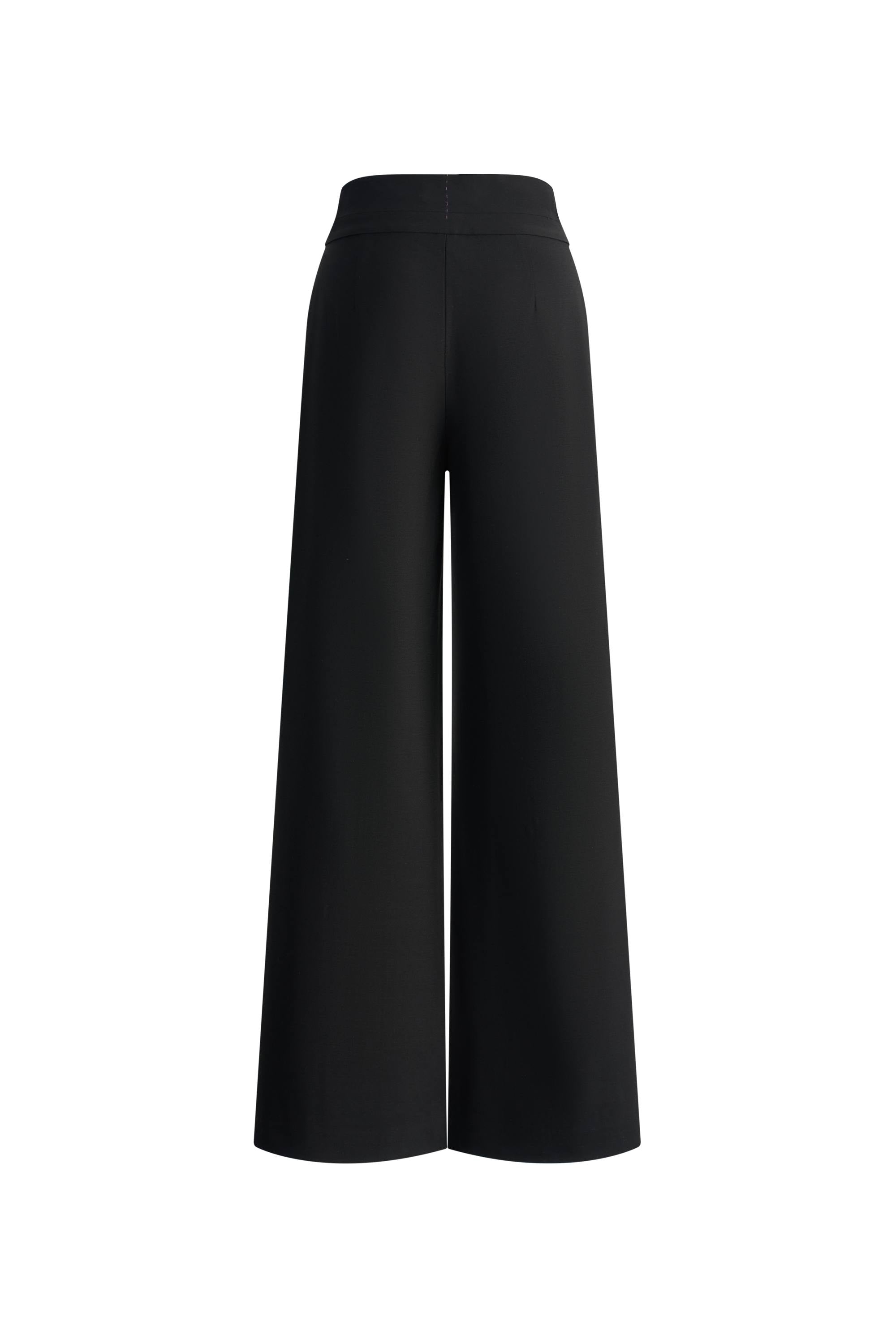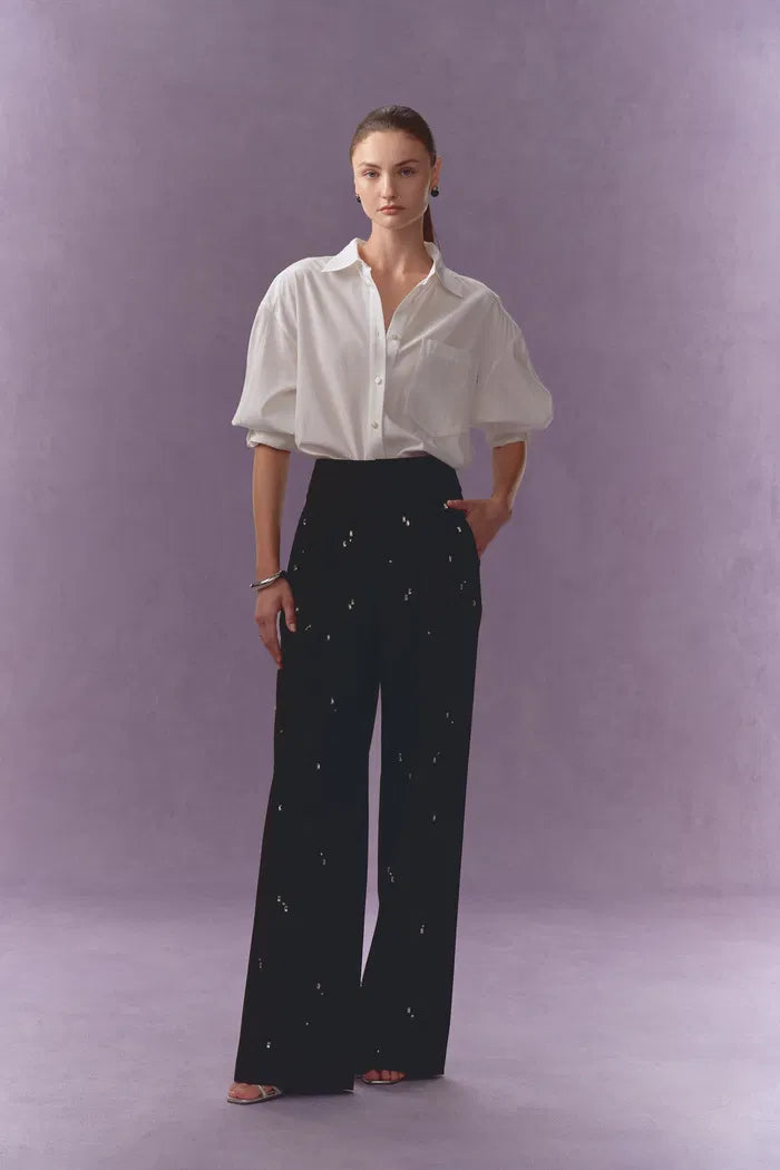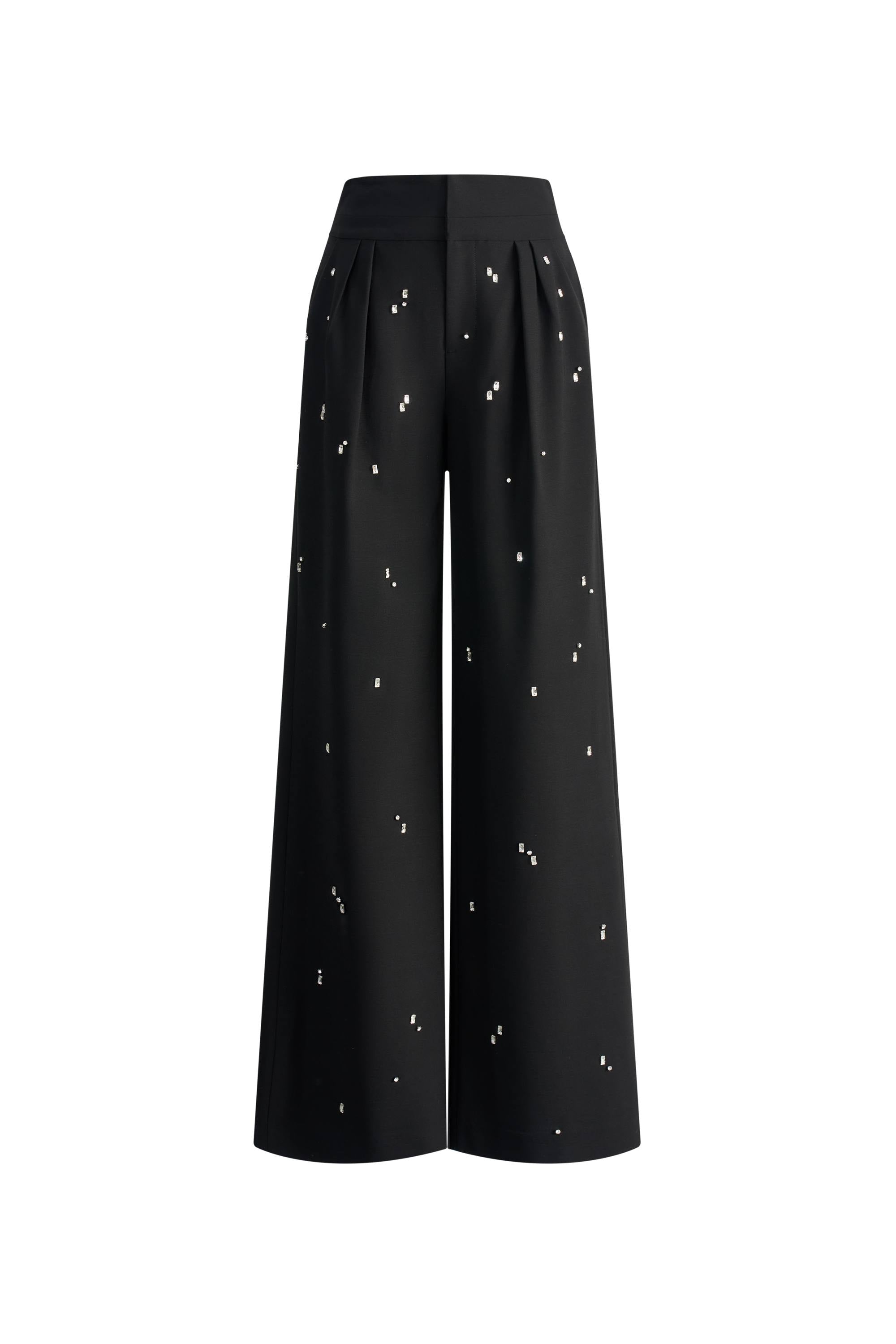 Lyra Hand Sewn Rhinestone Pleated Trousers in Fine Wool Suiting