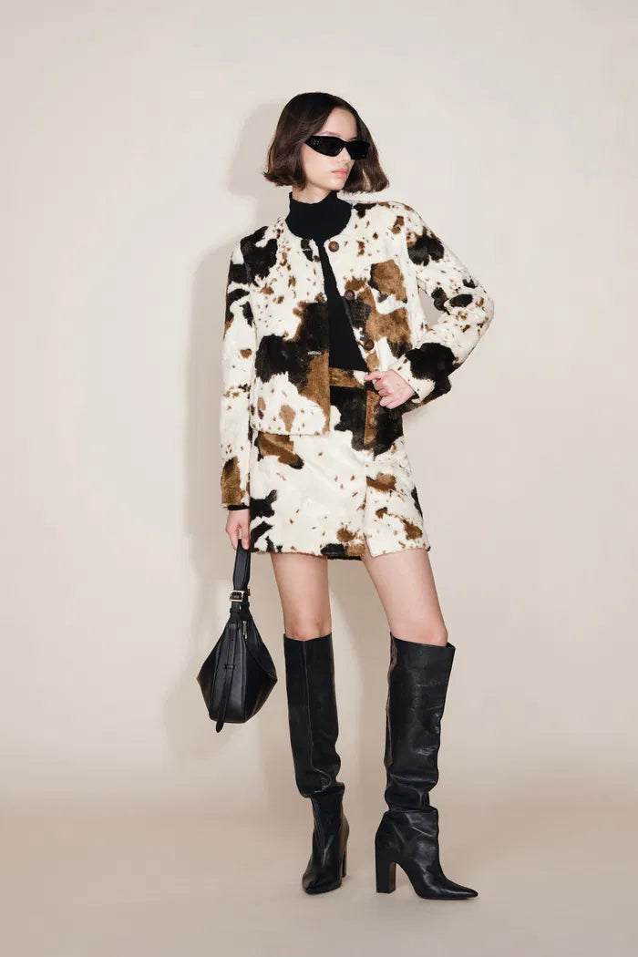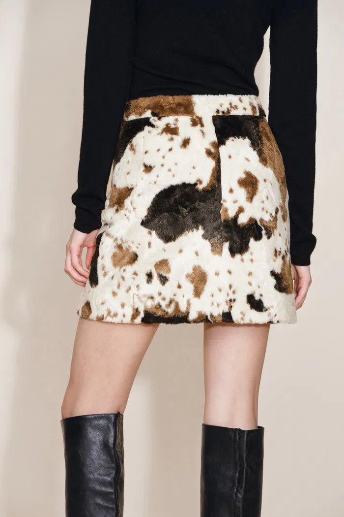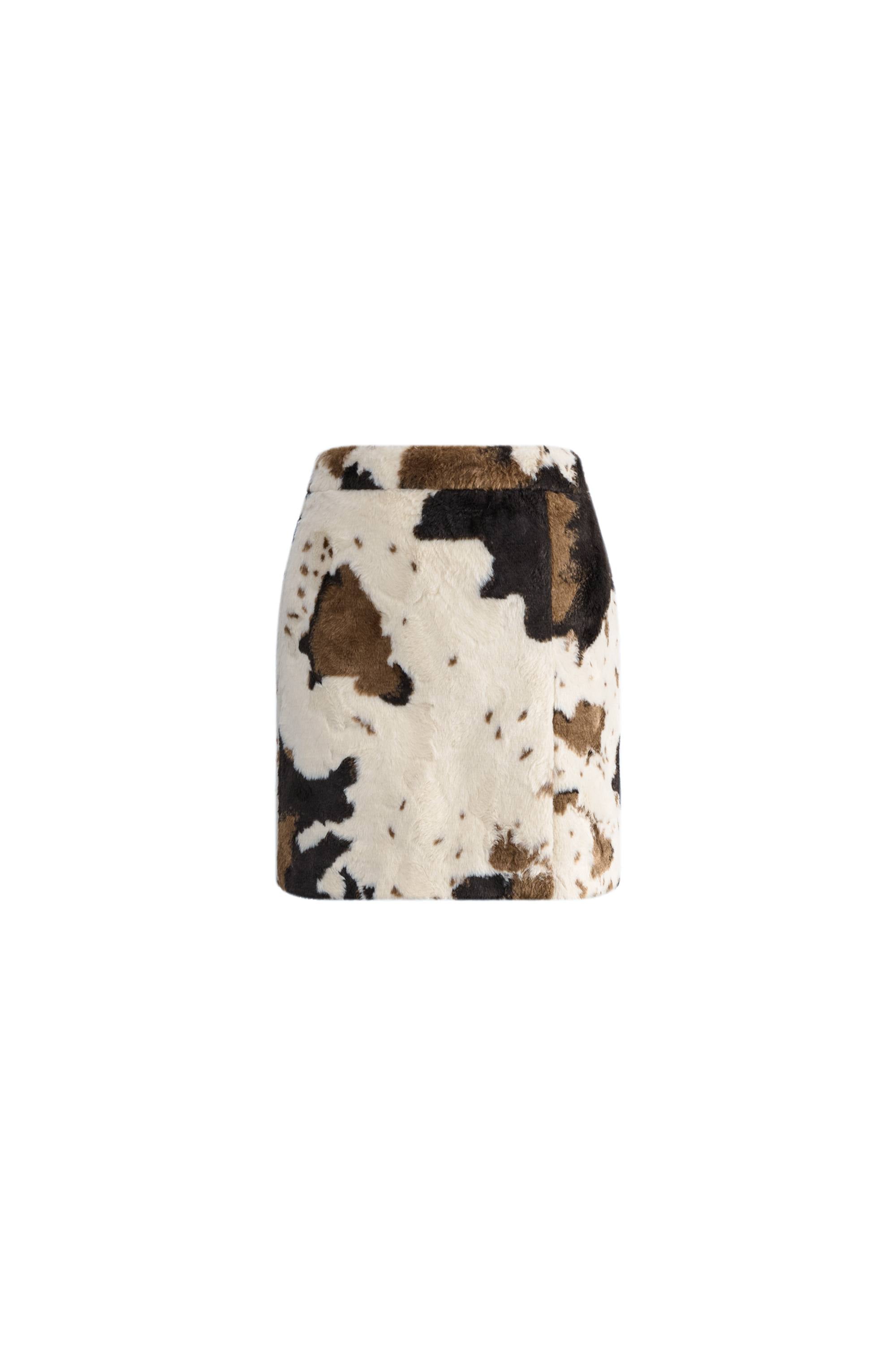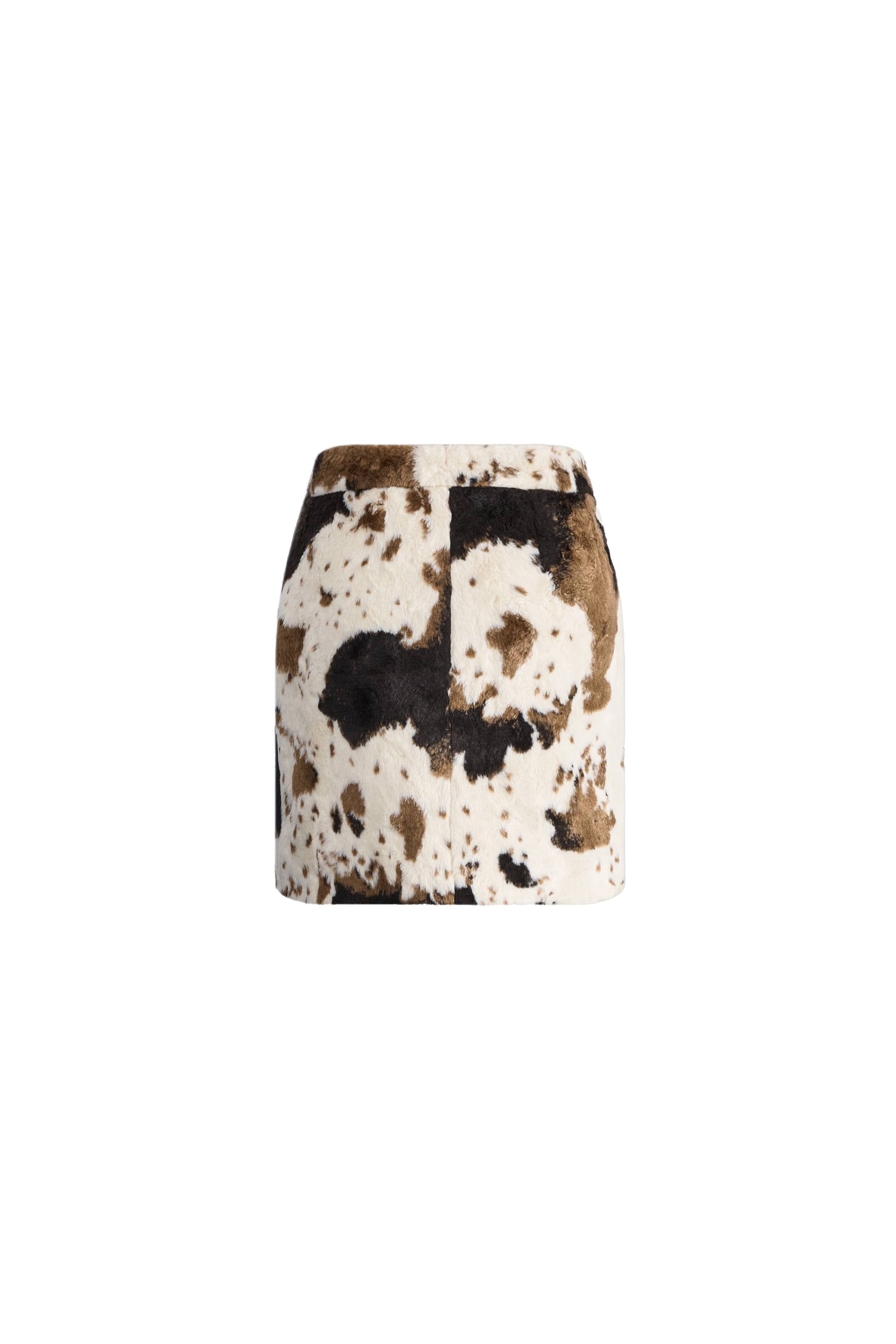 Mane Cow Print Mini Skirt in Faux Horse Fur
