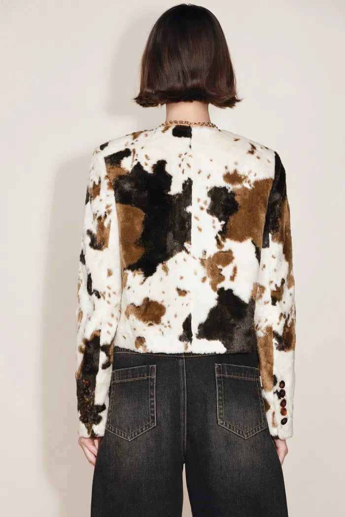 Mane Cow Print Short Jacket in Faux Horse Hair