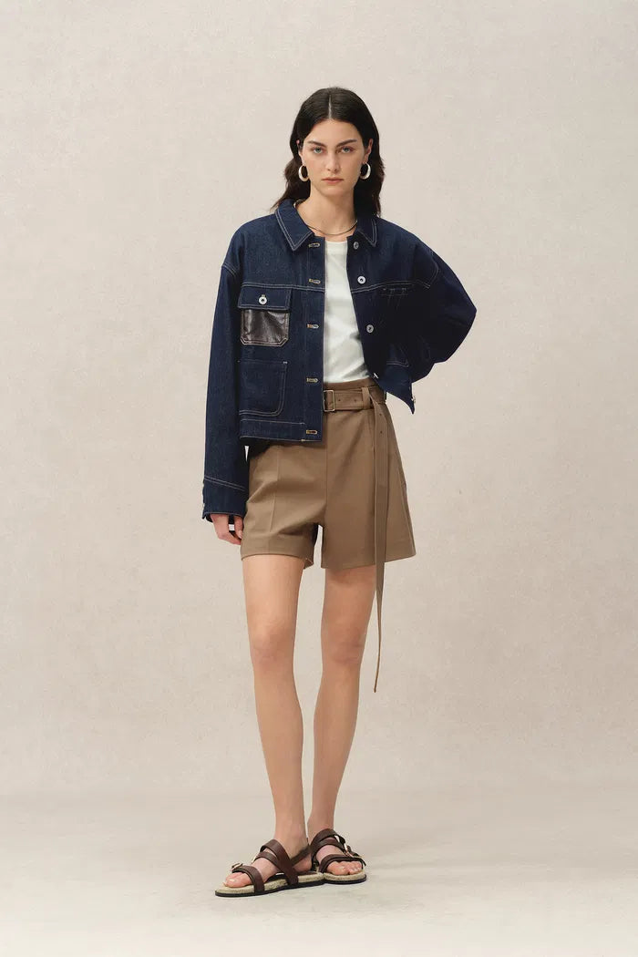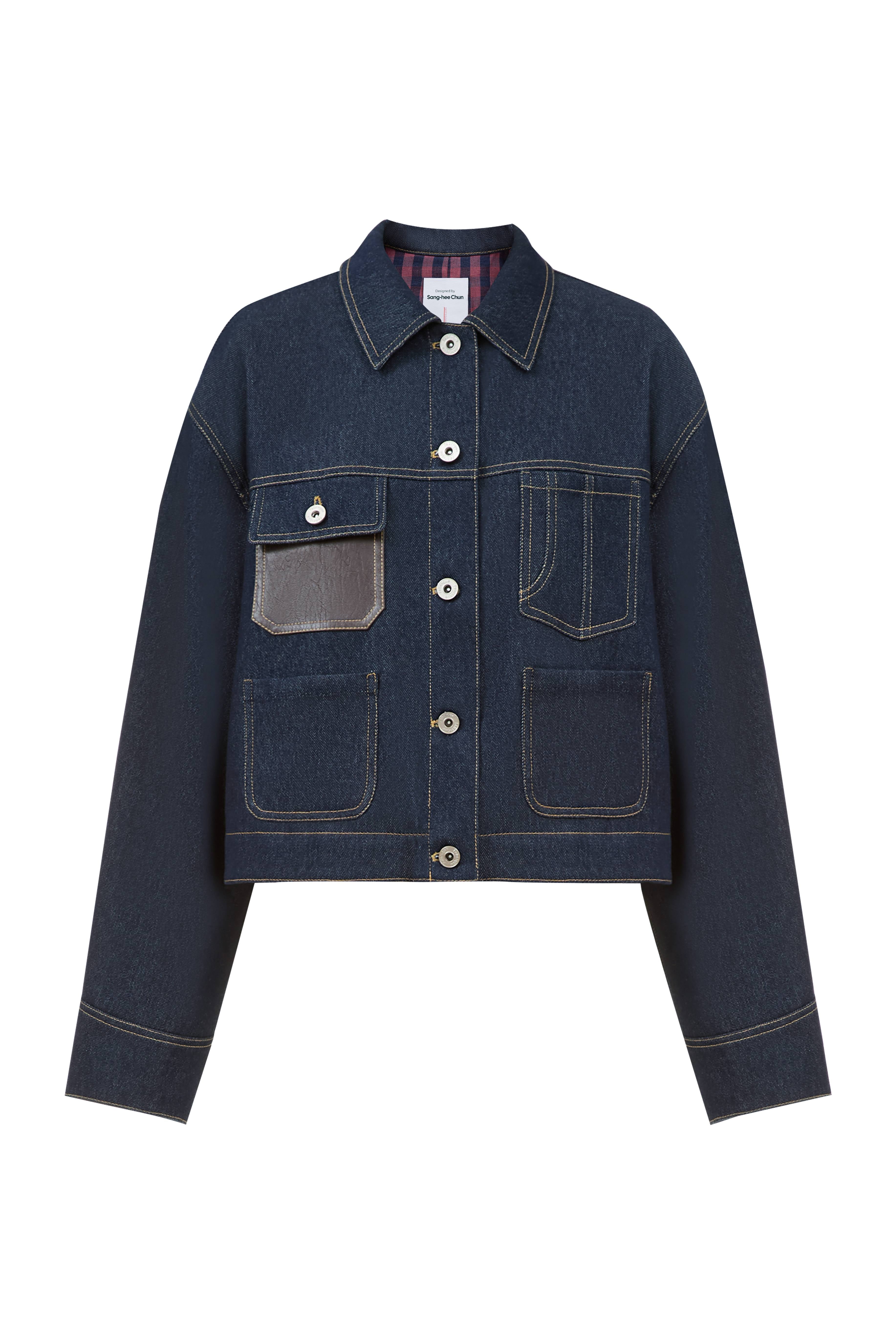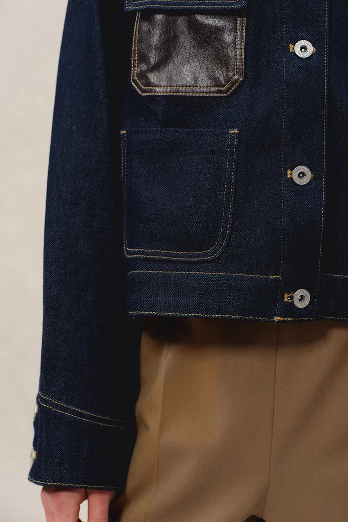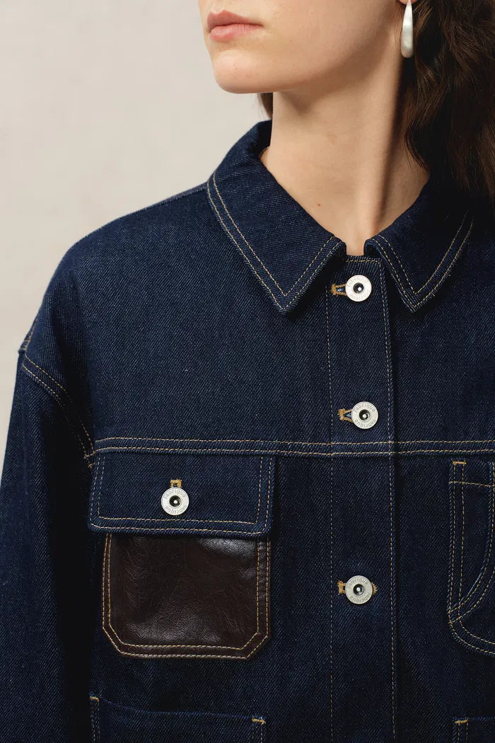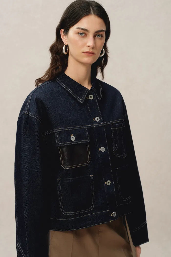 Maya Leather Patchwork Jacket in Raw Tencel Denim