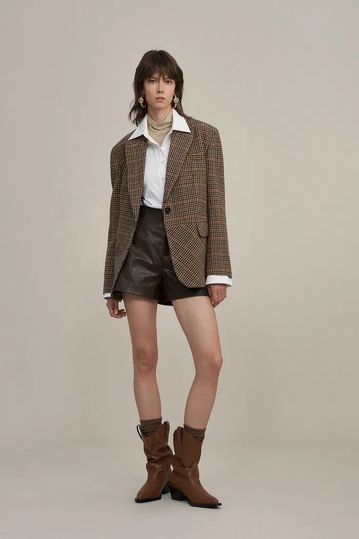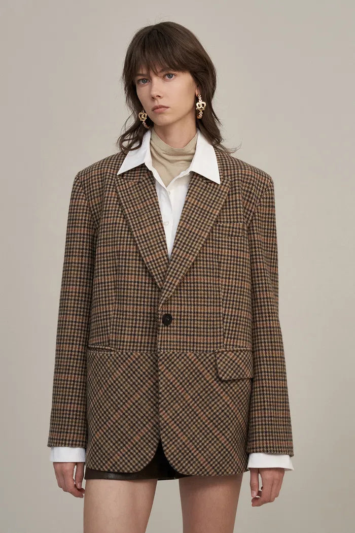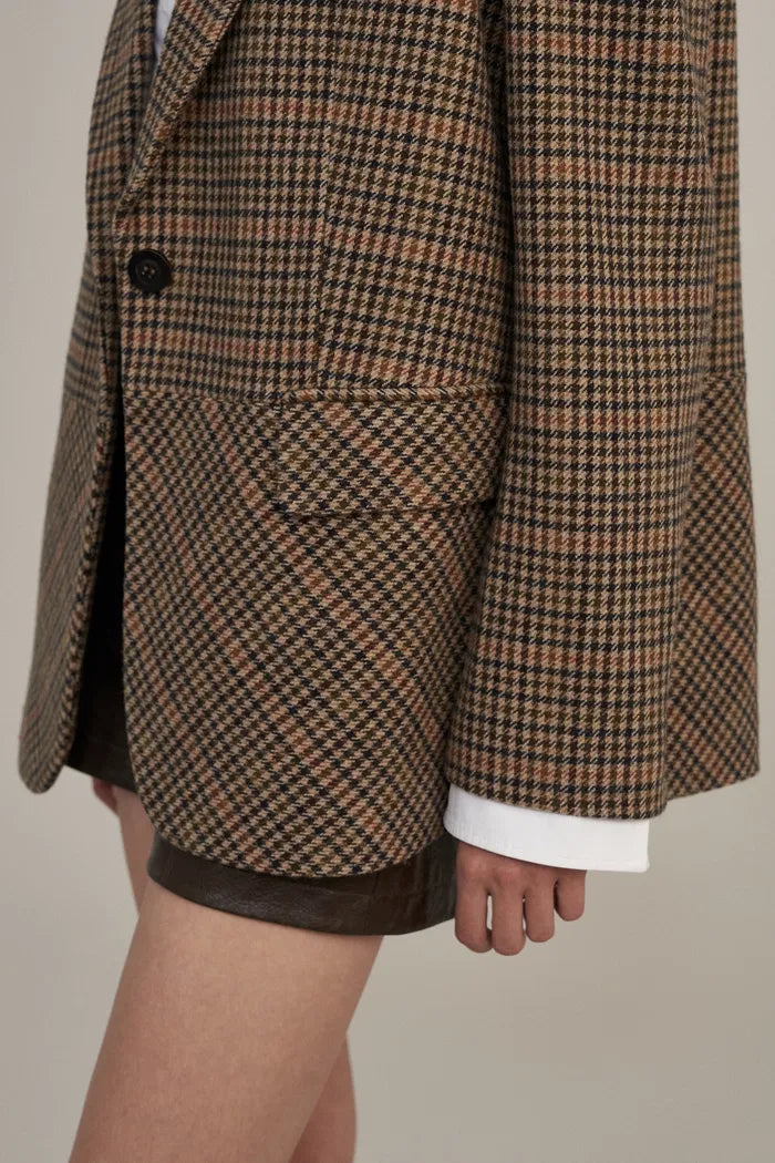 Meare Plaid Blazer in Merino Wool Blend Houndstooth