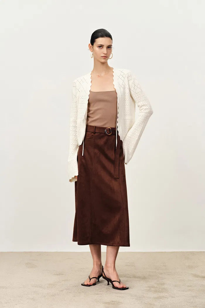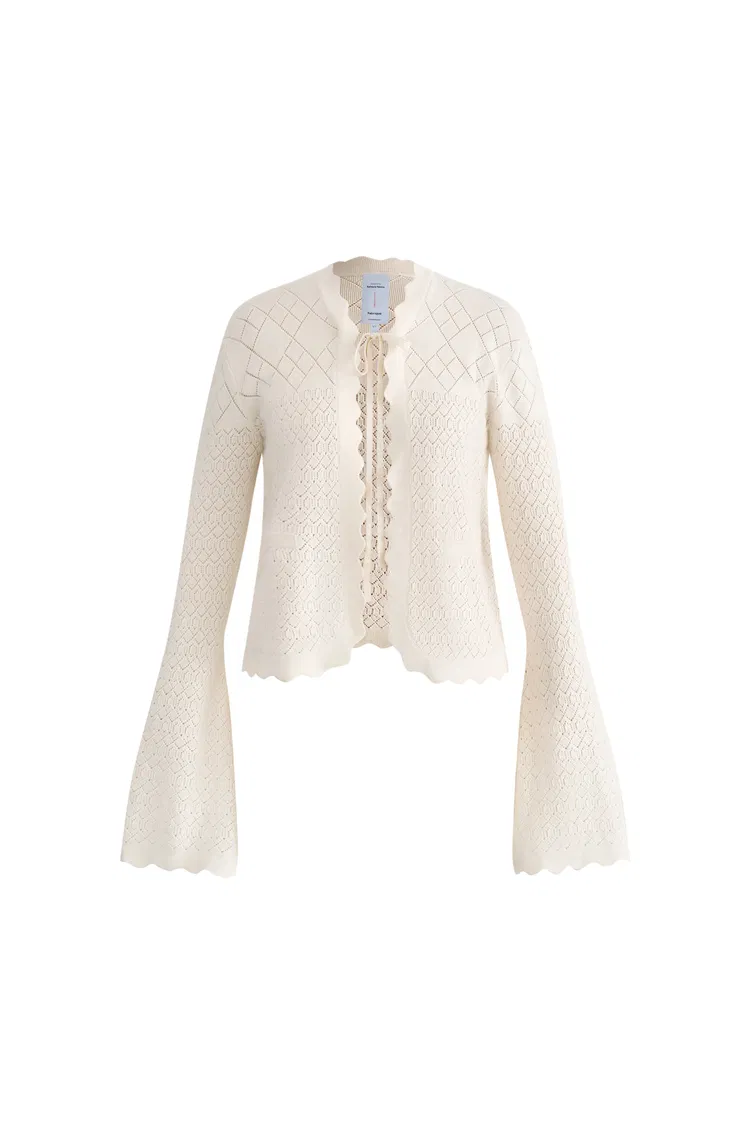 Megan Scalloped Trim Cardigan in Merino Wool Knit