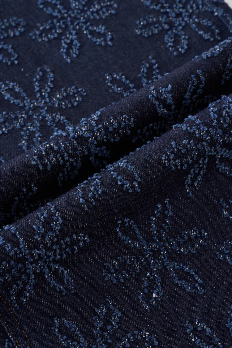 Mia Flora Straight Wide Leg Jeans in Cotton Jacquard Denim