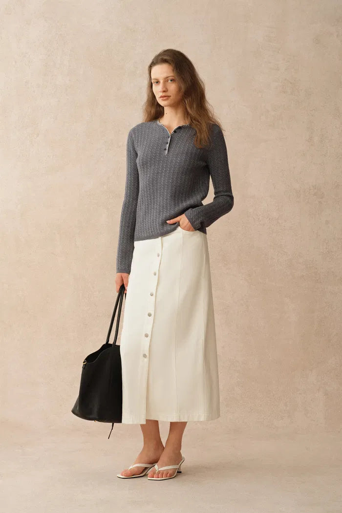 Mika Henley Neck Long Sleeve Top in Merino Wool Cable Knit
