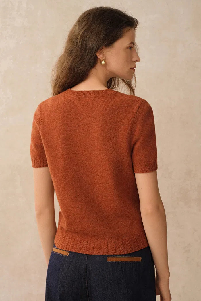 Miya Crew Neck Short Sleeve Top in Merino Wool Knit