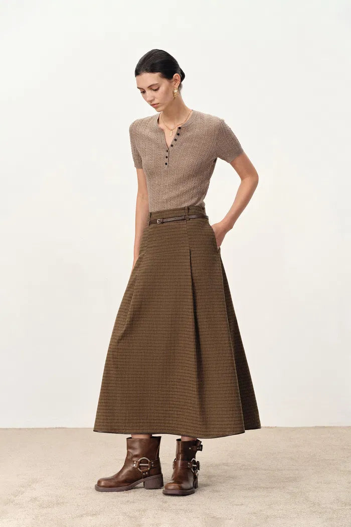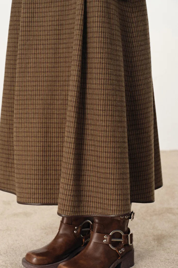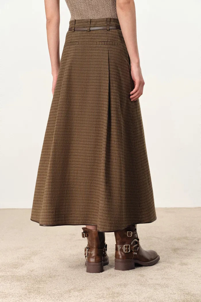 Naomi Leather Belted Plaid Skirt in Cotton Flannel
