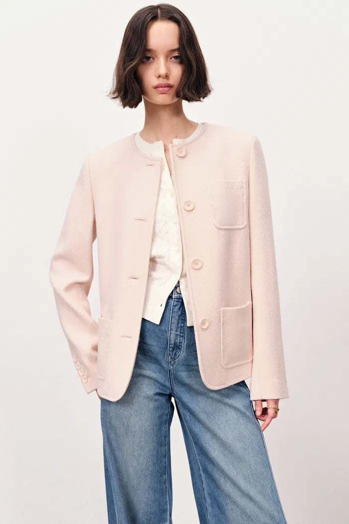 Nassau Rounded Collar Multi Yarn Jacket in Merino Wool