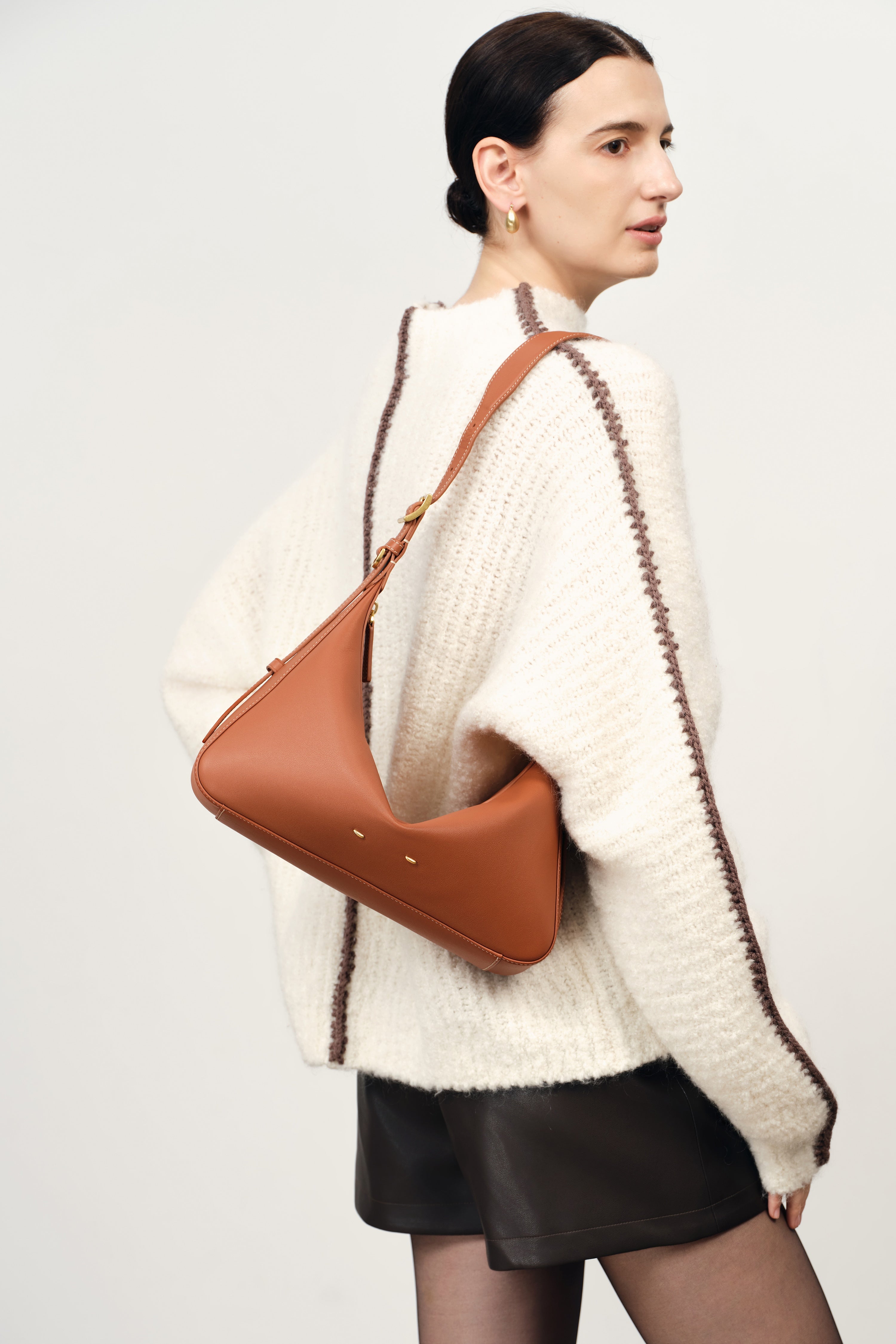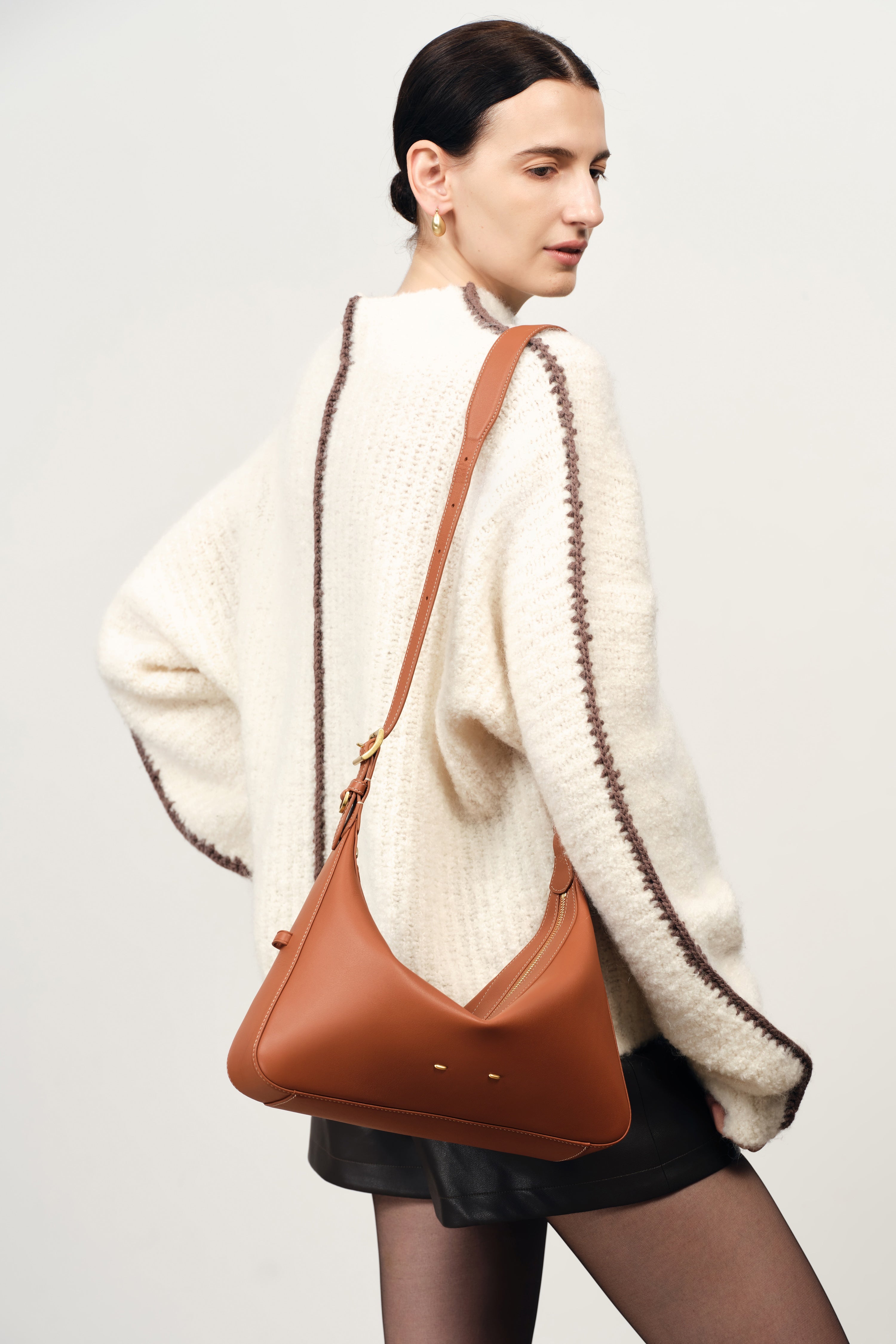 Inspired by Milan’s historic Navigli canals, this hobo bag captures the tranquil flow of water and the city’s vibrant markets. The soft yet sculpted silhouette forms a natural V-shaped drape that transforms into a fuller baguette when filled, shifting gracefully with every strap adjustment—effortlessly moving from laid-back strolls to elegant appointments.
