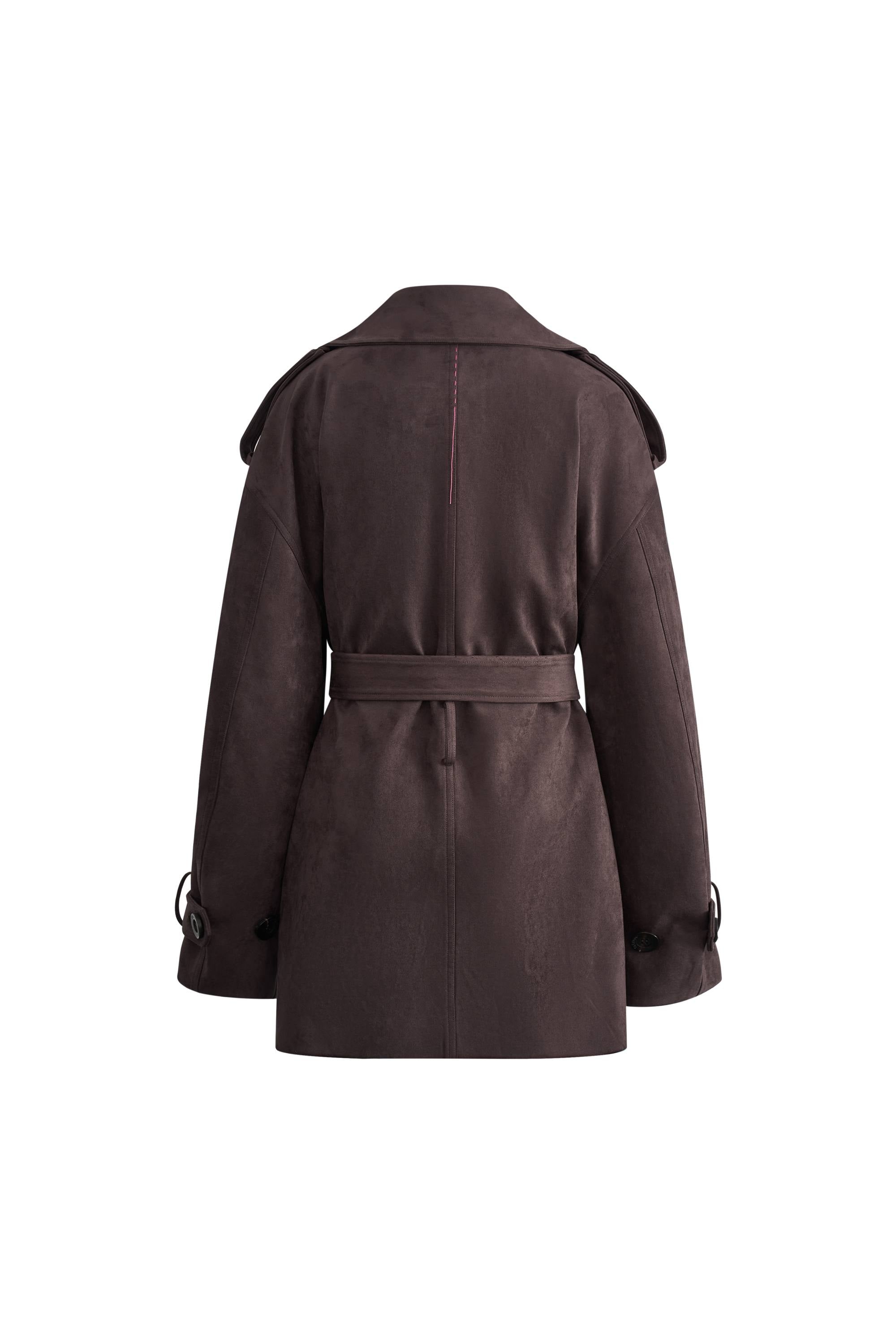 Nellie Large Lapel Short Trench Coat in Faux Suede