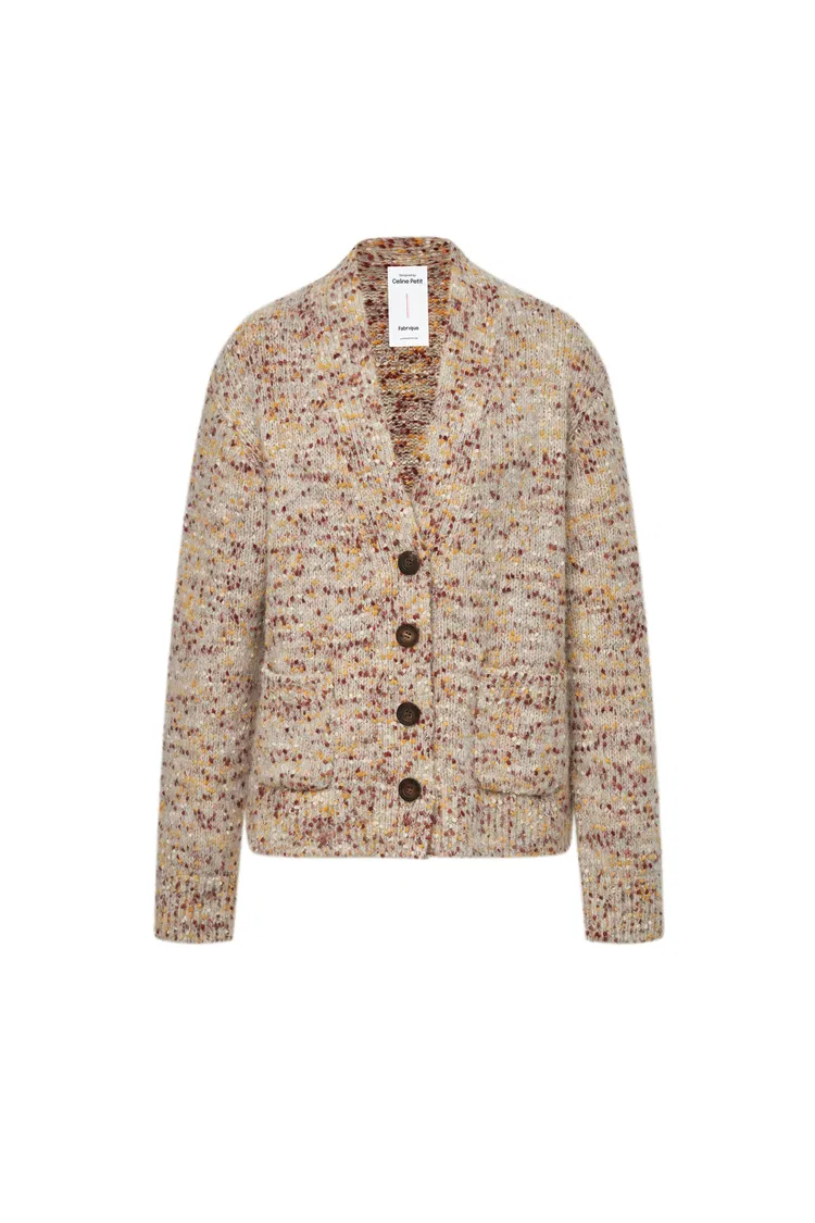 Nika Zodiac Jacquard Knit Cardigan in Wool Mohair Pom Pom Knit