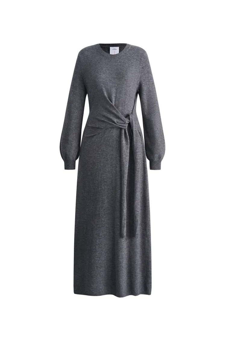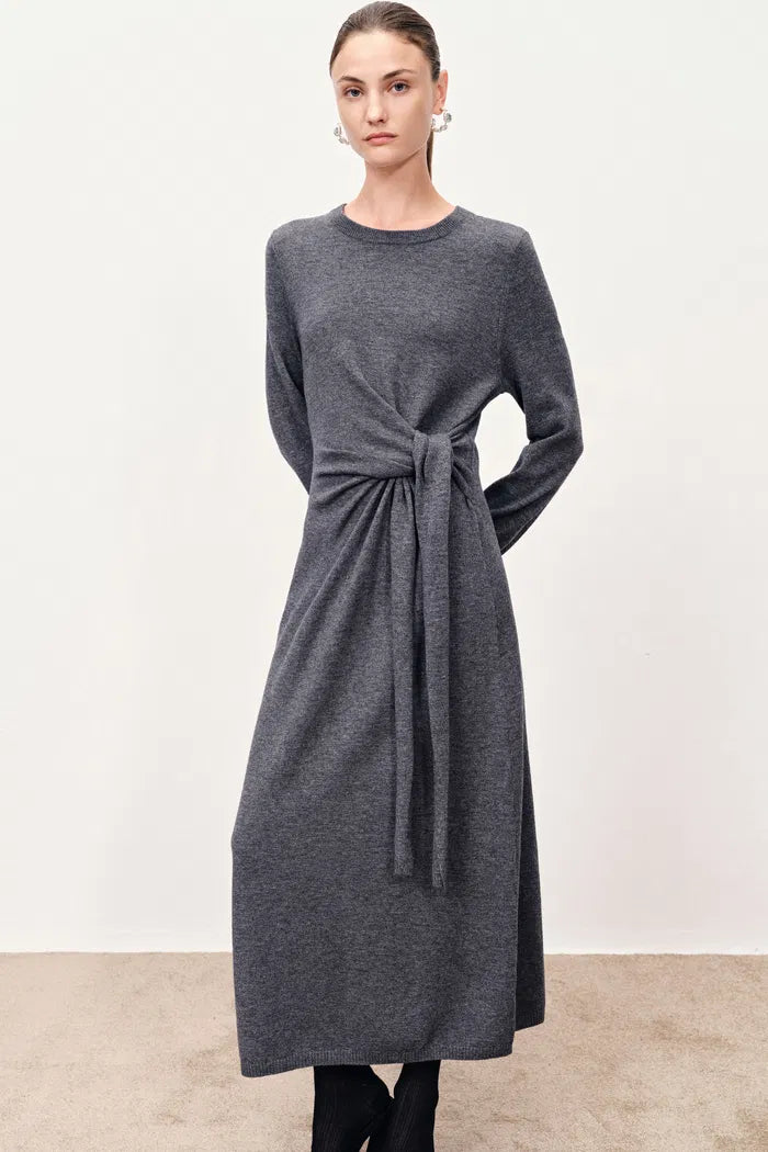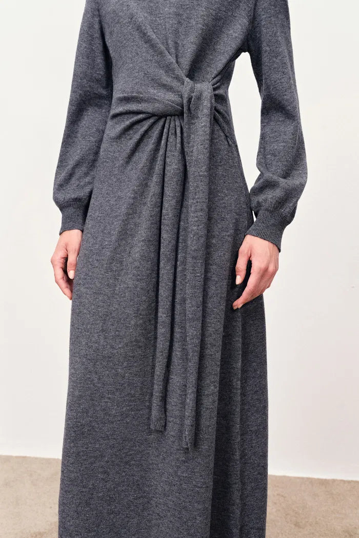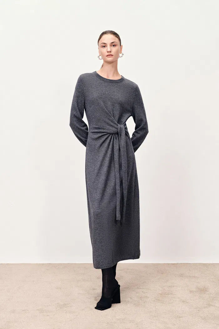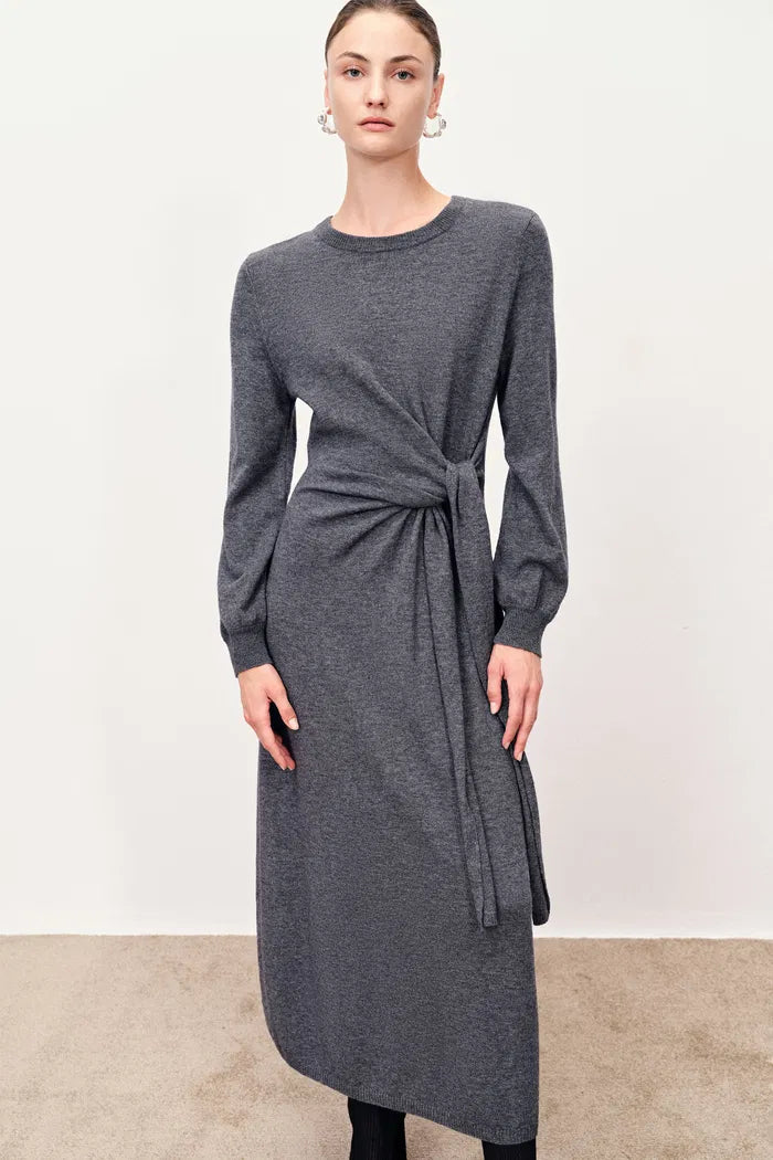 Nora Asymmetric Knotted Maxi Dress in Merino Wool Knit