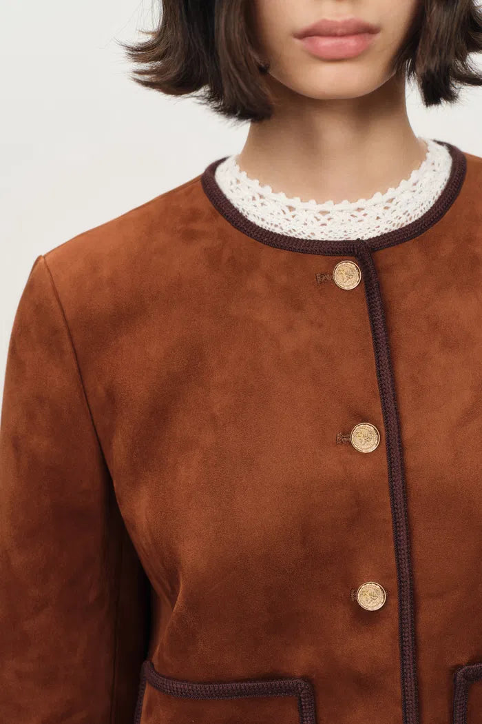 Olivia Contrast Trim Jacket in Faux Suede