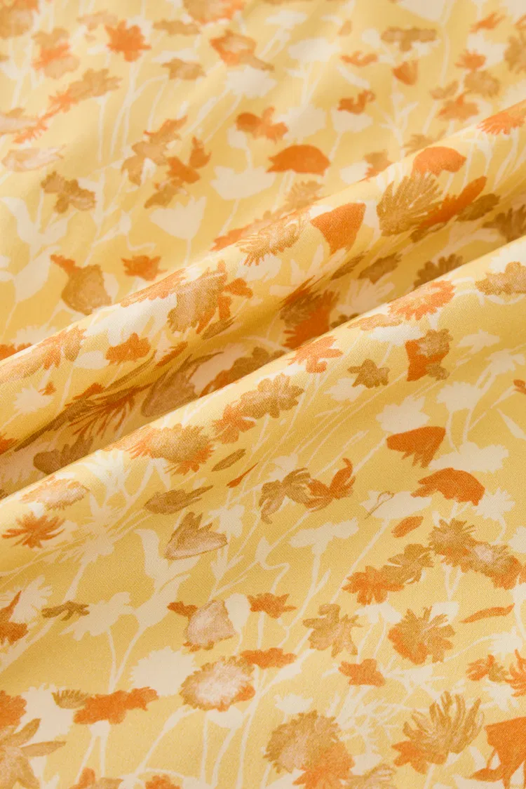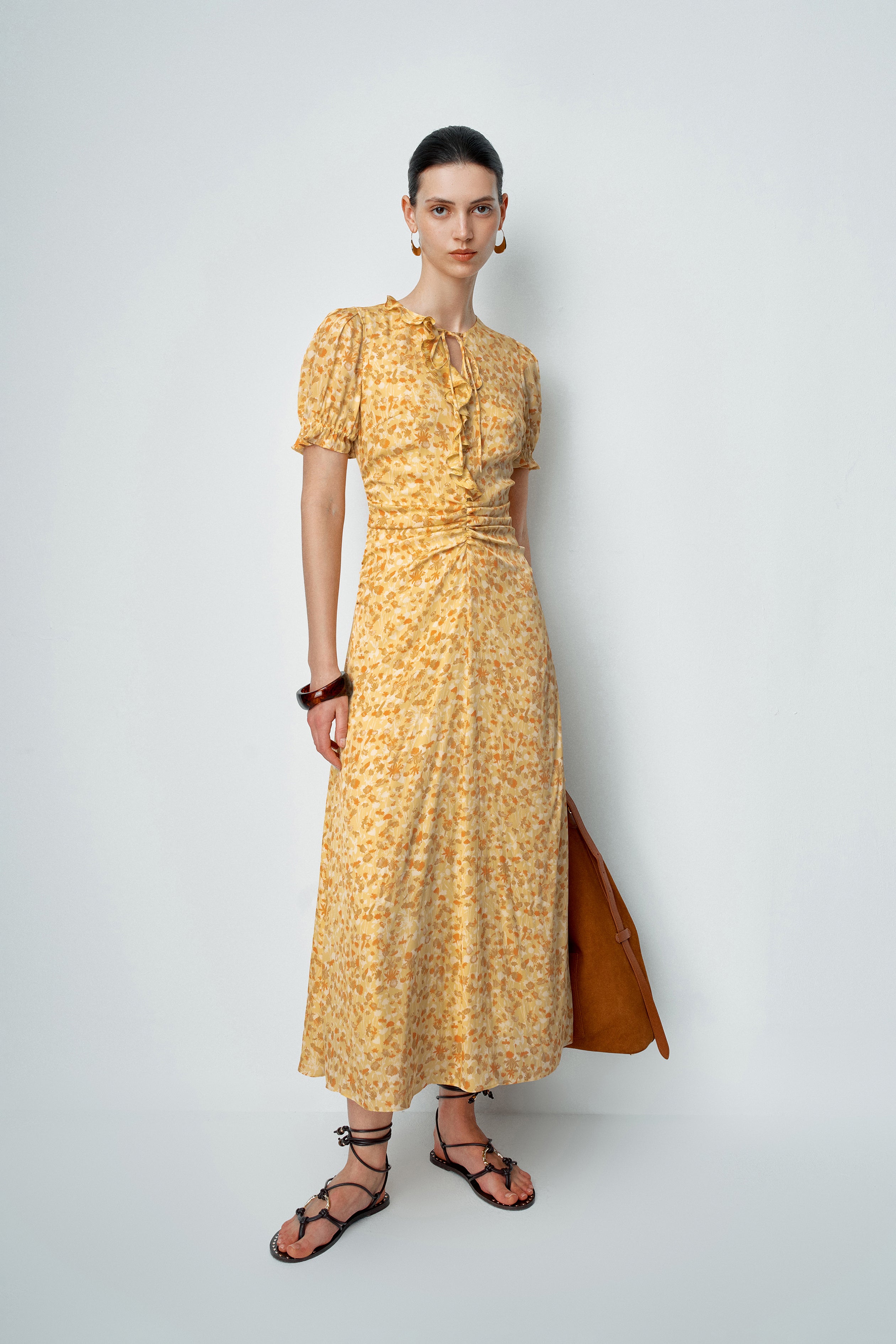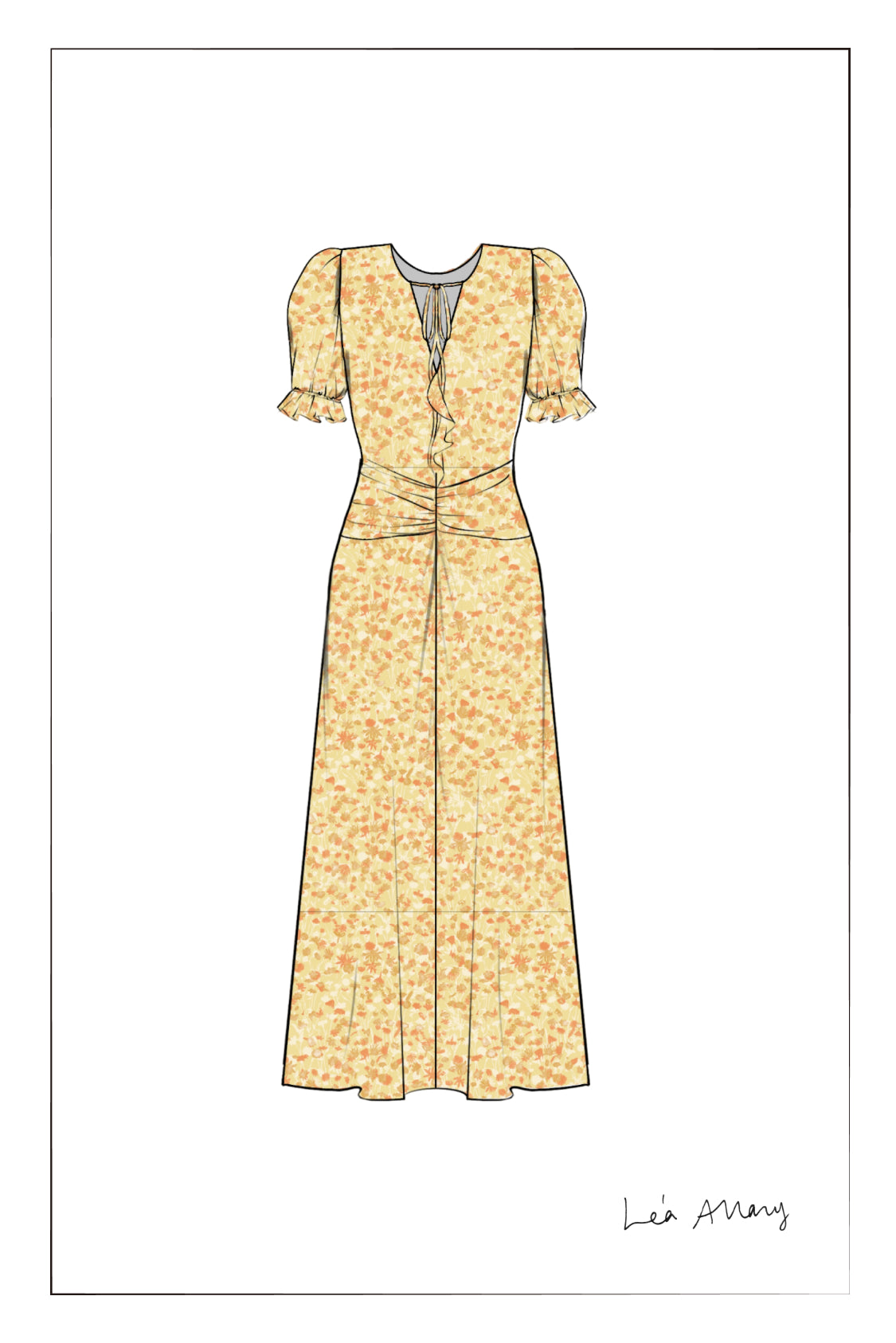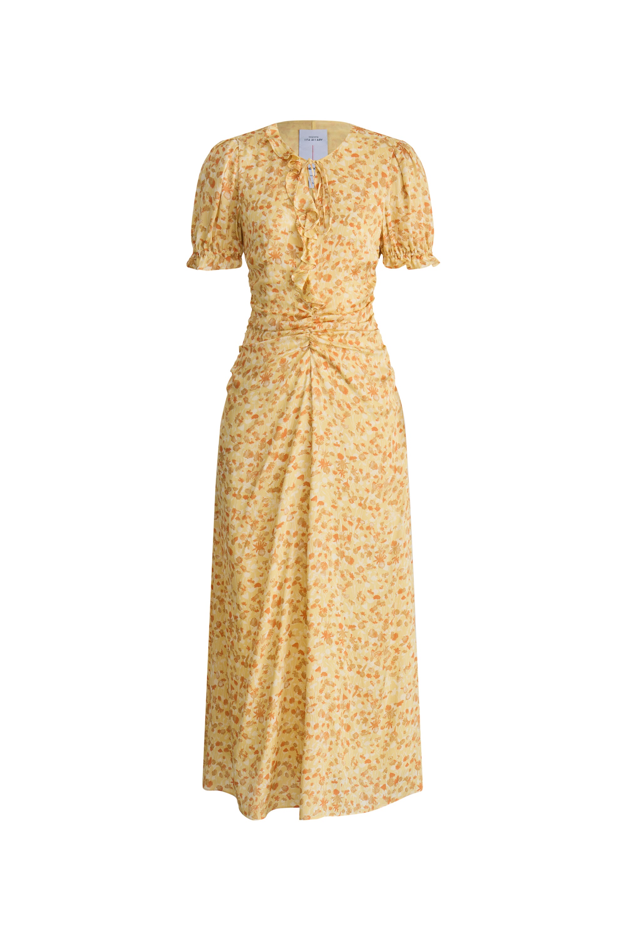 Paula Hand Painted Flora Ruffle Dress in Matte Silk Crepe