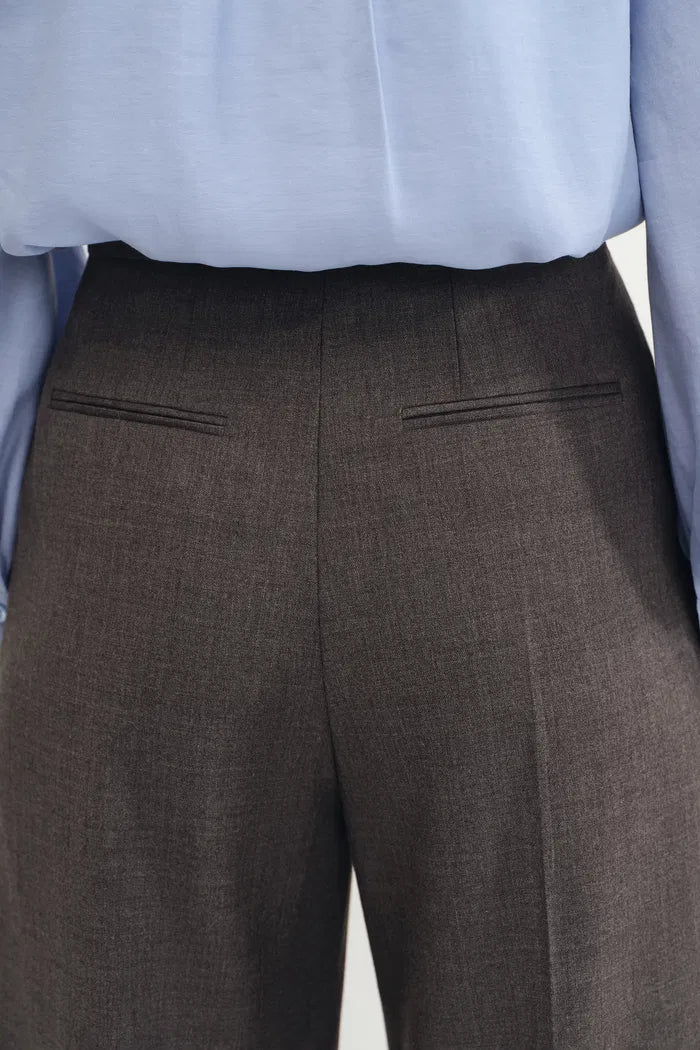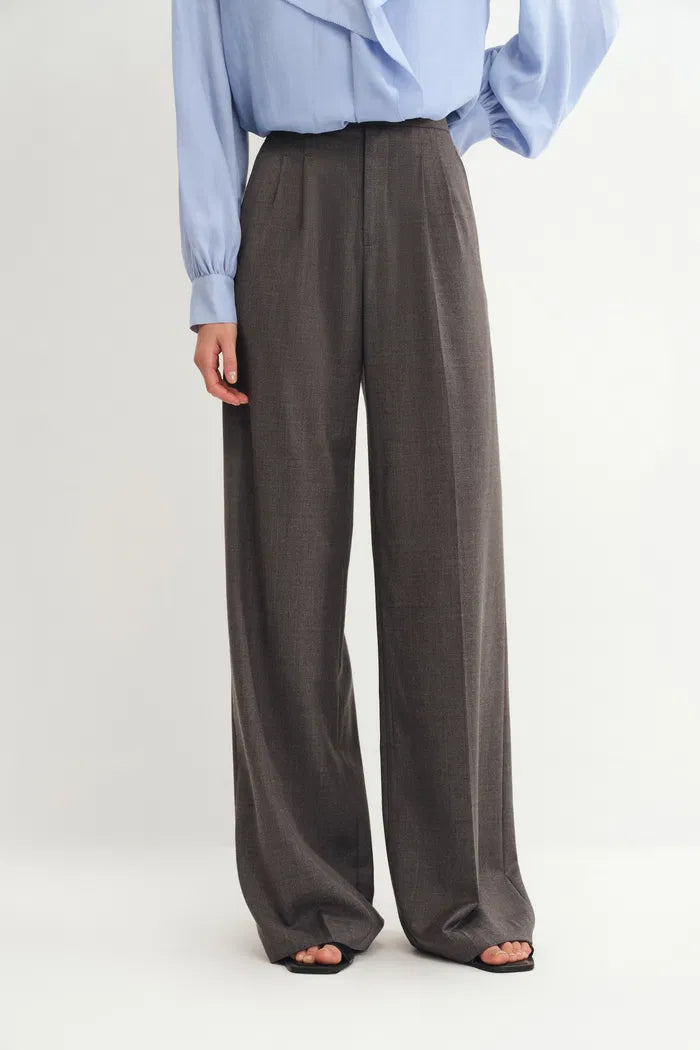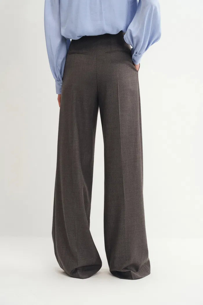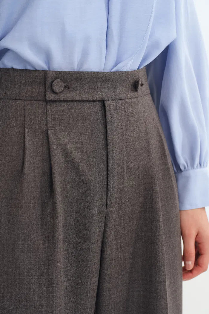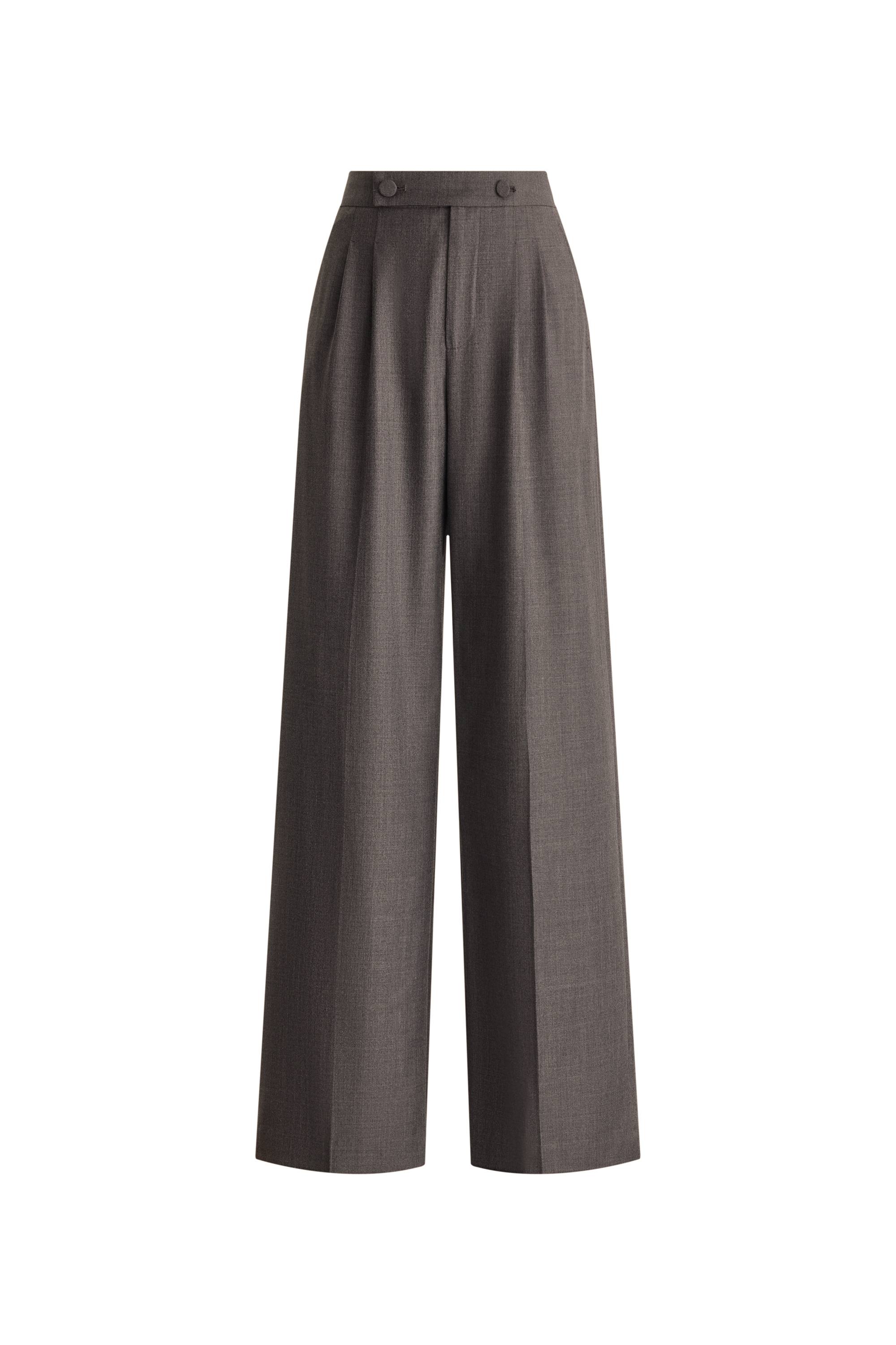 Paula Pleated Double Button Trousers in Wool-Silk Blend