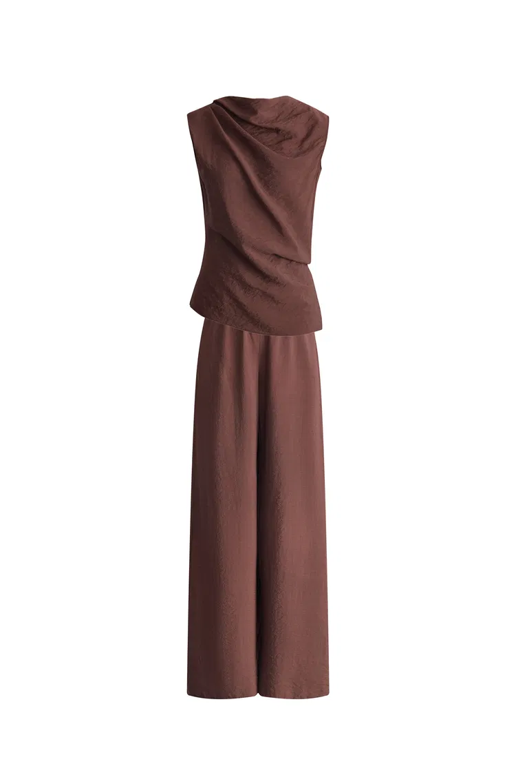 Phoebe French Cowl Sleeveless Top and Wide Leg Pant Matching Set in Dry Silk