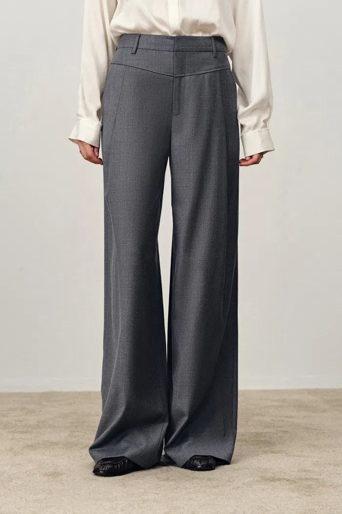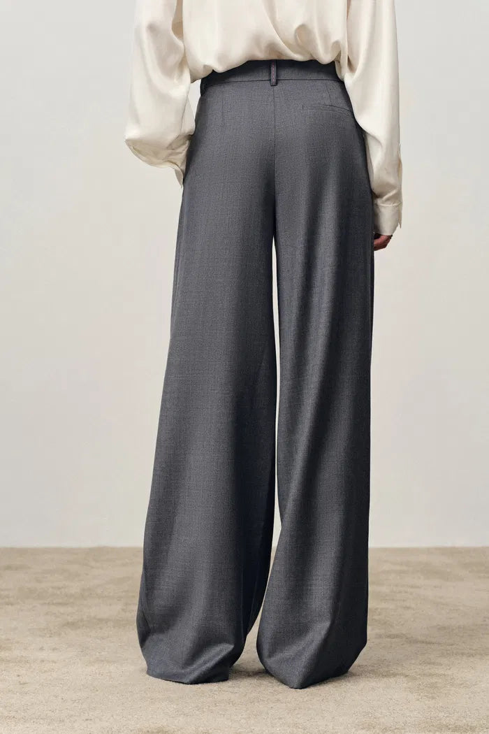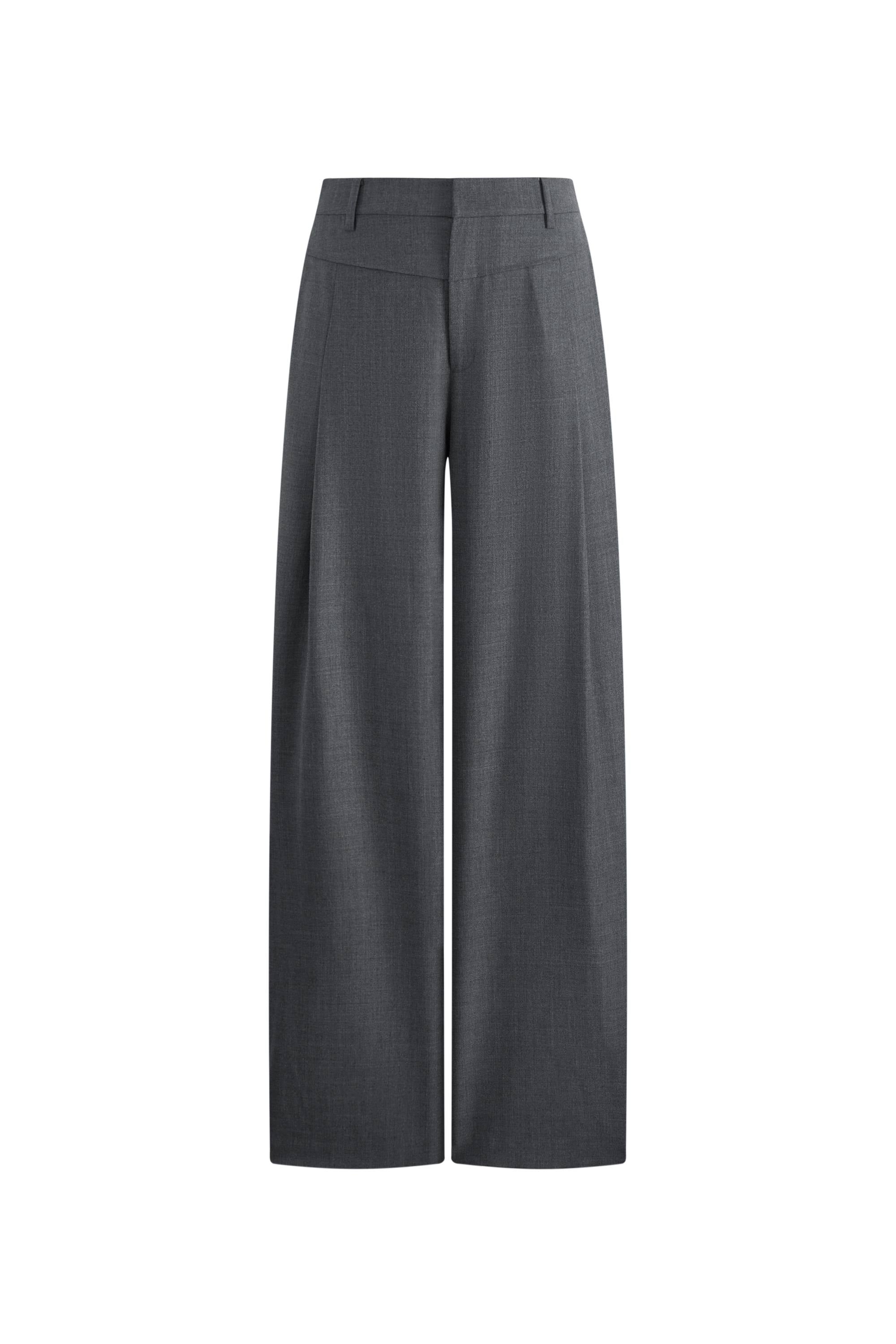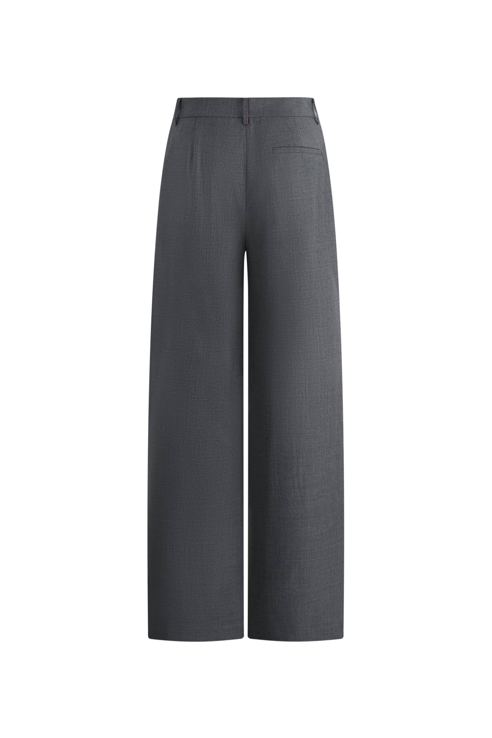 Phoebe Front V Shaped Trousers in Fine Wool Silk Blend Suiting