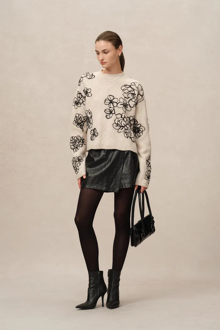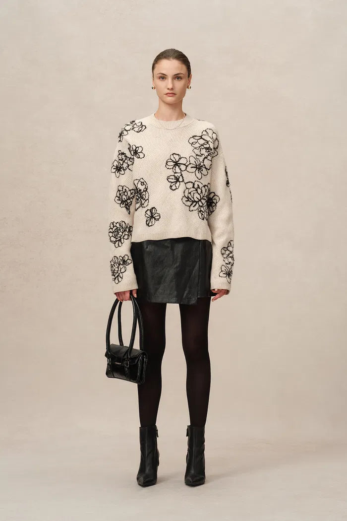 Poppy Embroidered Sweater in Chunky Wool Knit