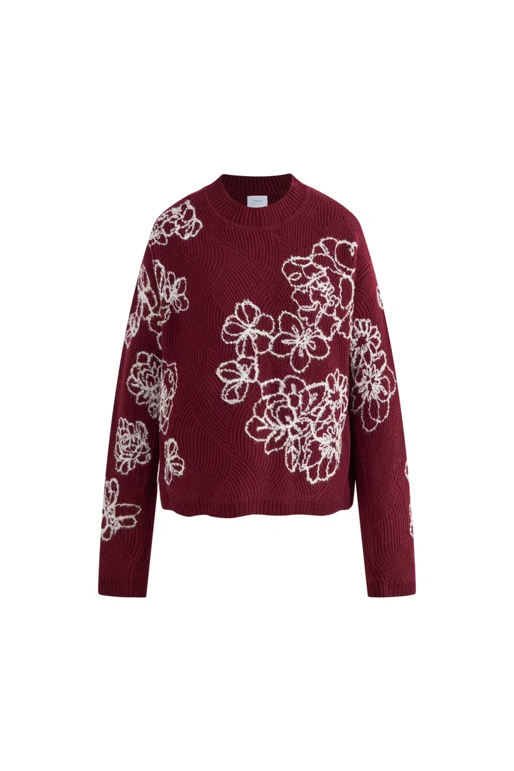Poppy Flora Embroidery Sweater in Merino Wool Knit