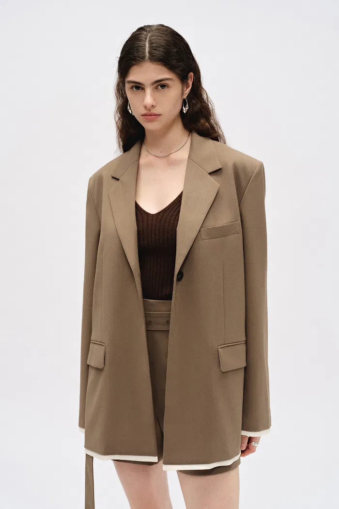 Meet the blazer that transforms any outfit. Our wool blend combines structure with ease, while contrast piping adds just enough interest. Those precise darts? They're your secret weapon for the perfect fit.