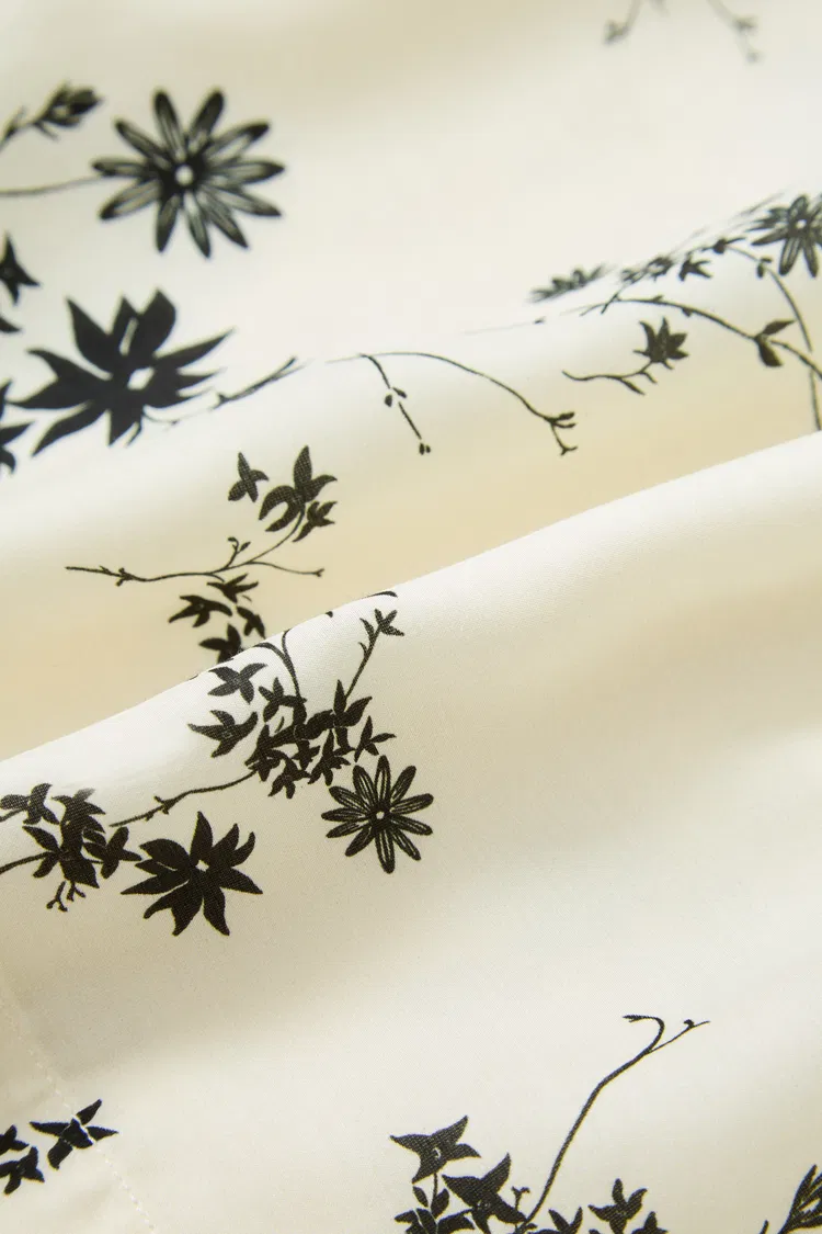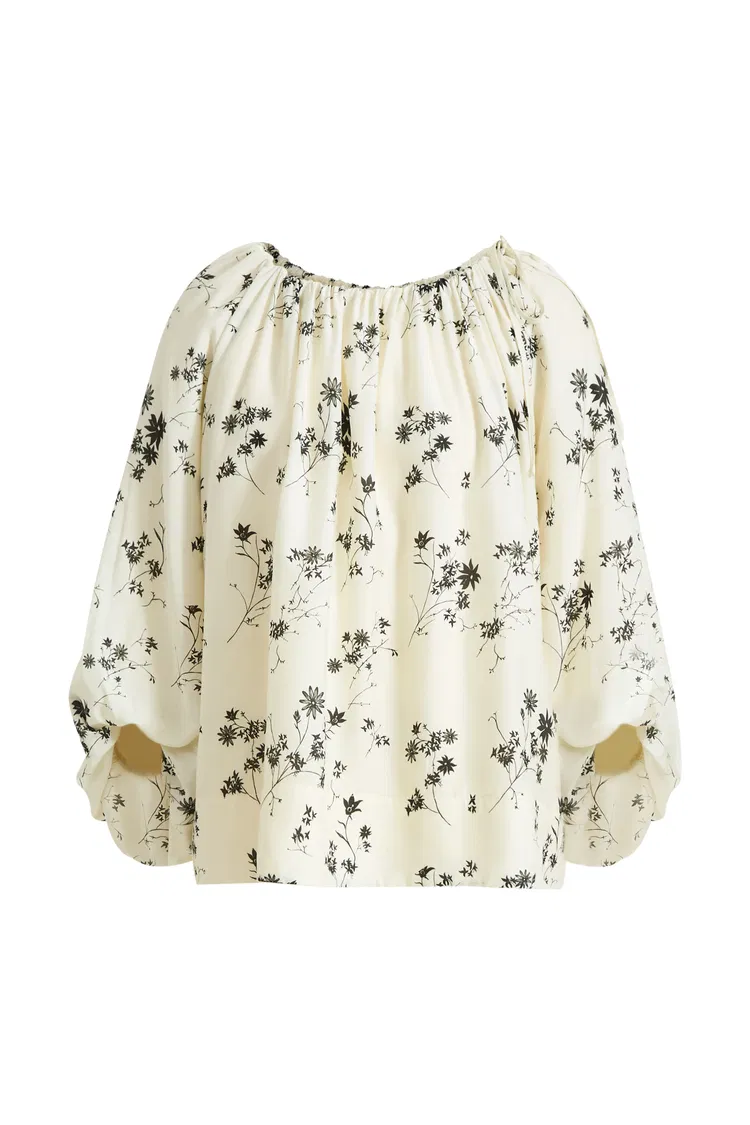 Quillie Hand Painted Print Off Shoulder Long Sleeve Blouse Top in Silk Twill