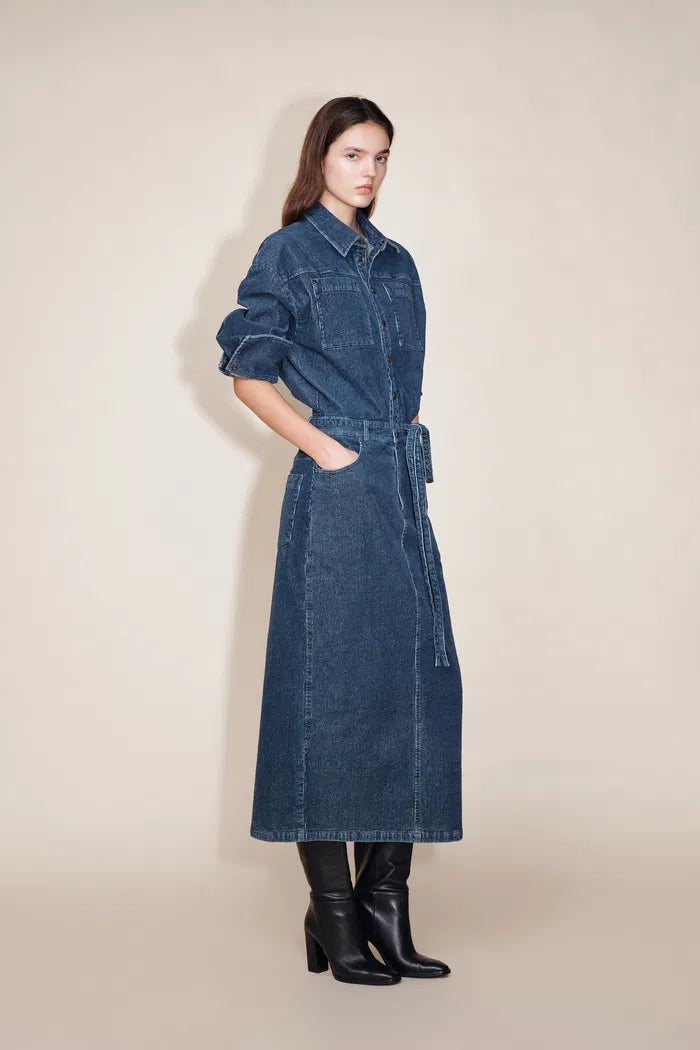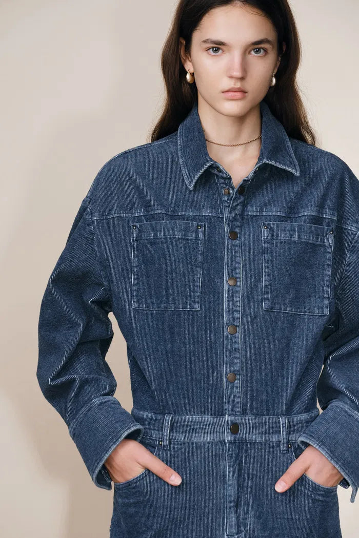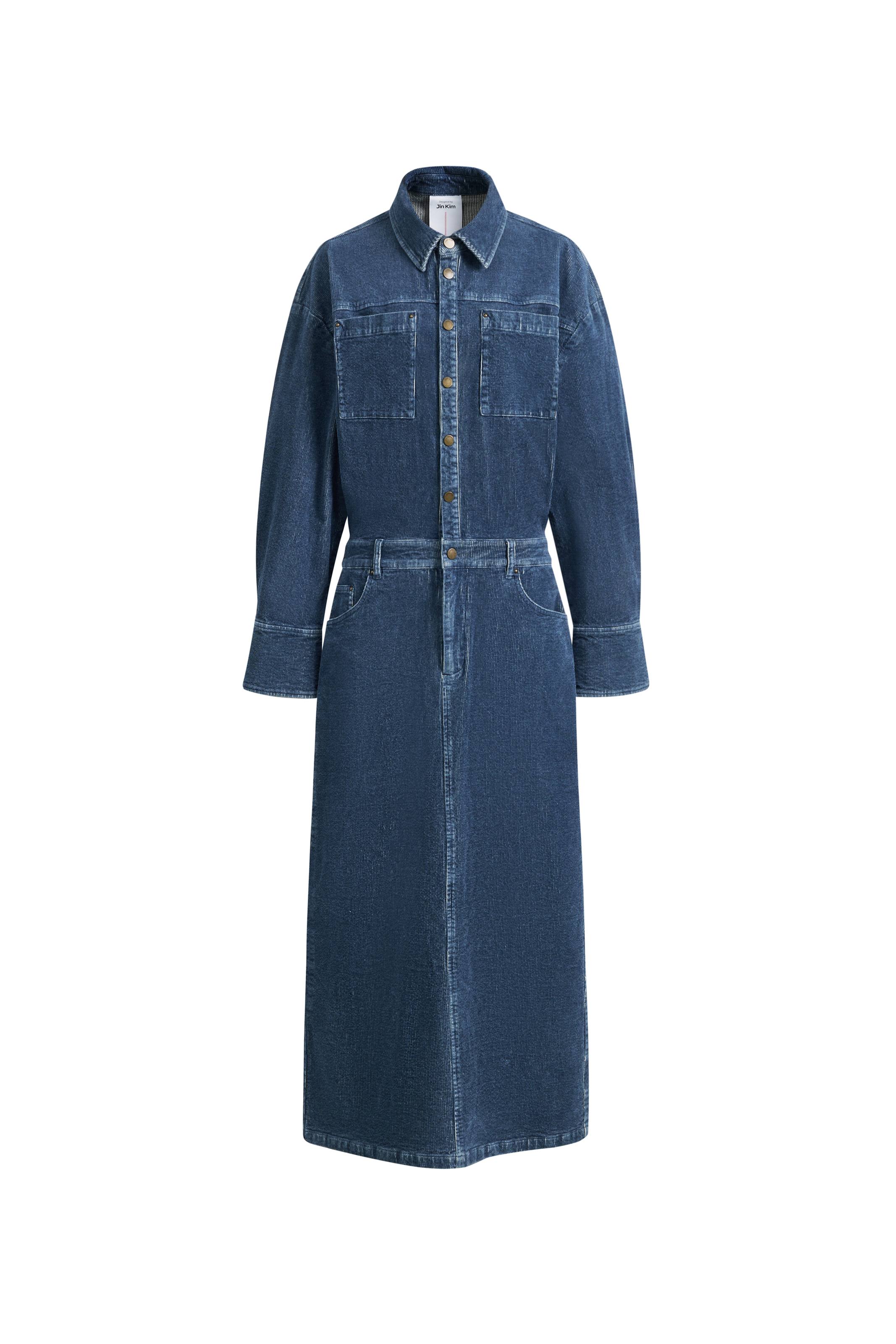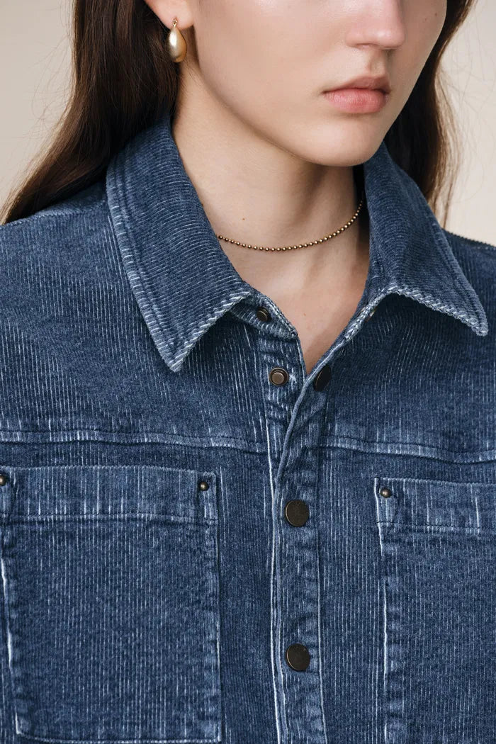 Quinn Antique Style Metal Buttons Dress in Washed Stretchy Corduroy