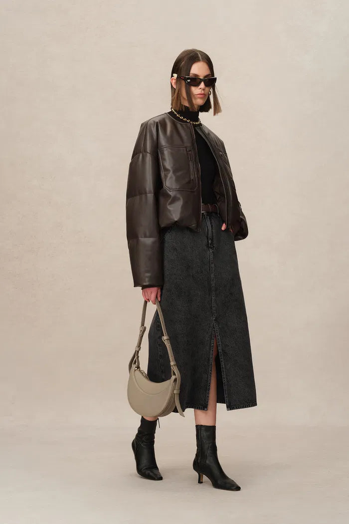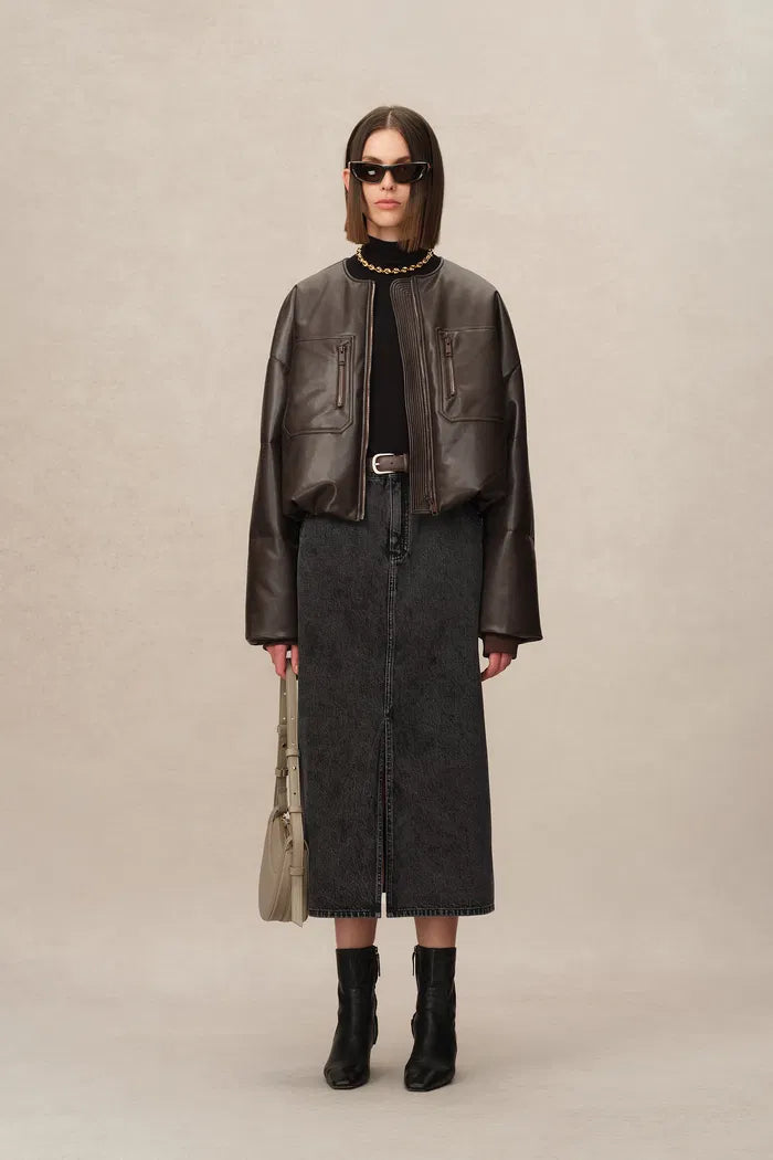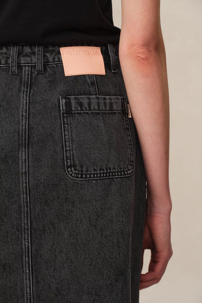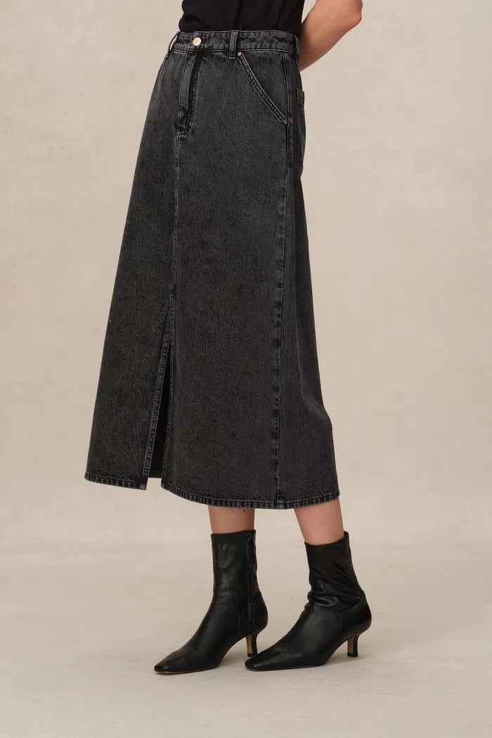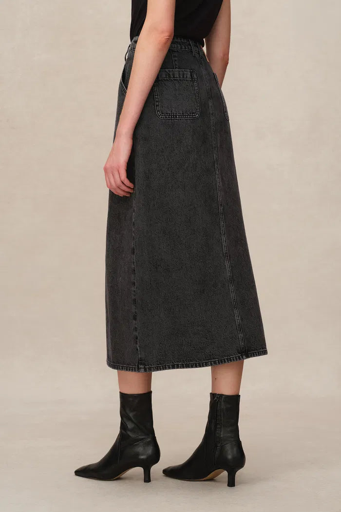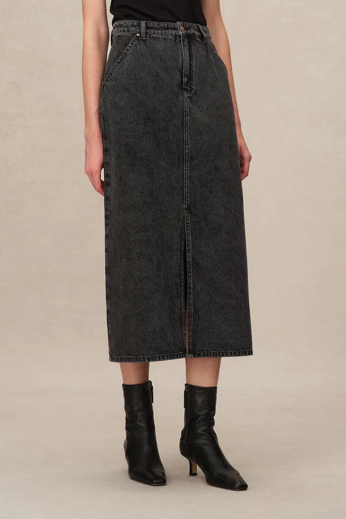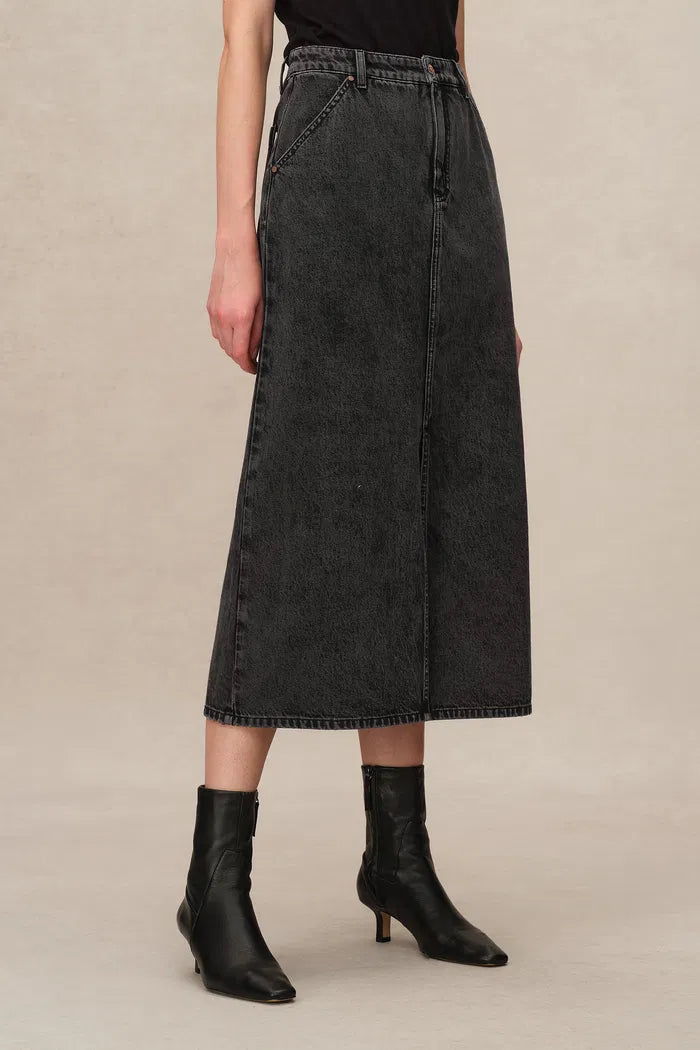 Raquel Front Slit Denim Maxi Skirt in Cotton Denim