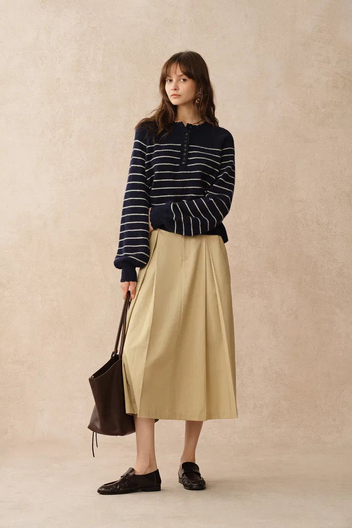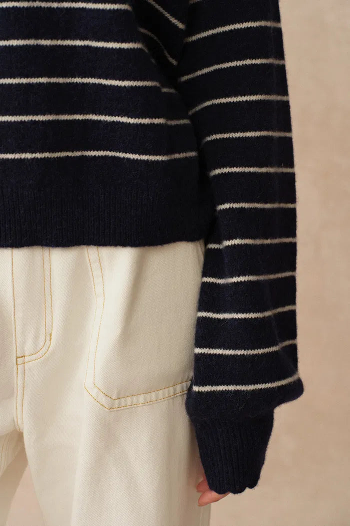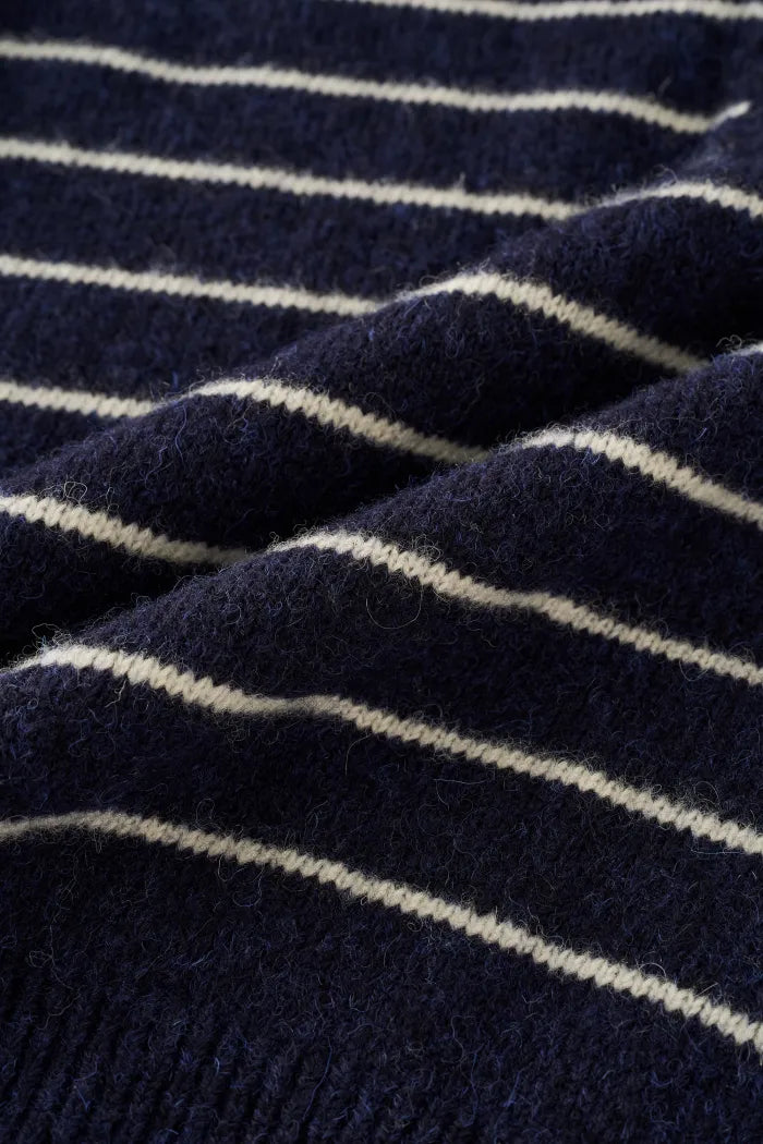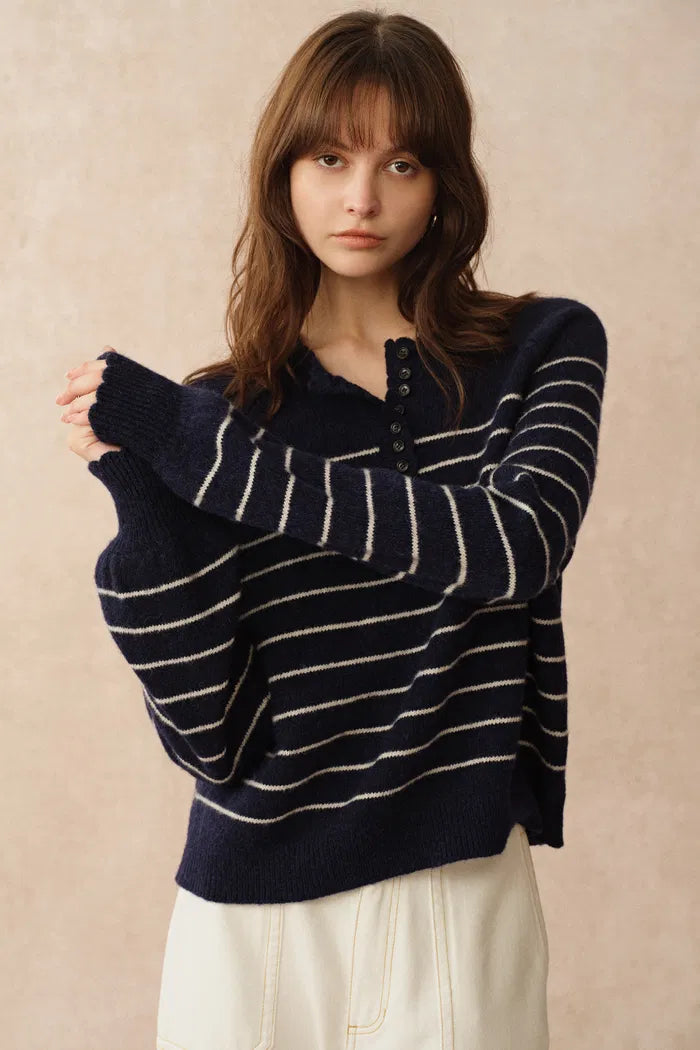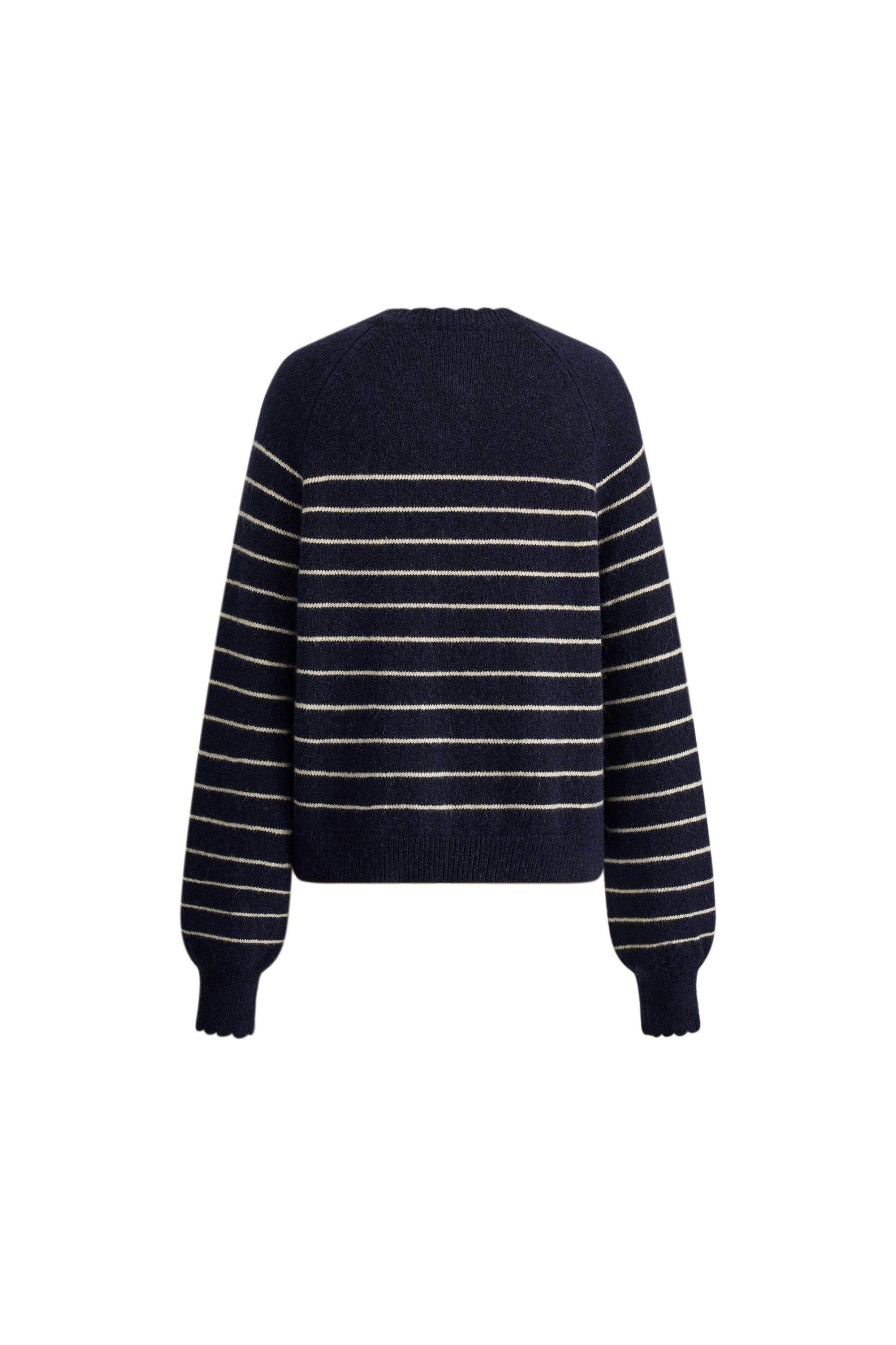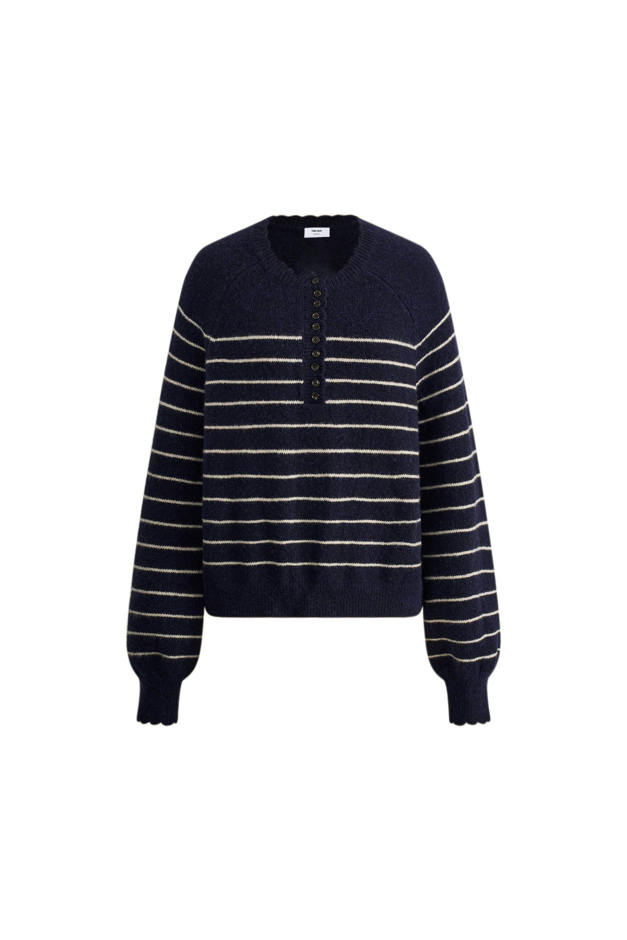 Rhea Scalloped Henley Striped Sweater in Wool-Alpaca Knit