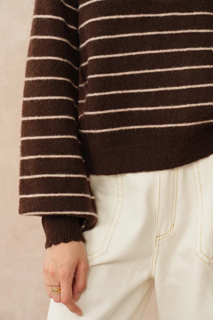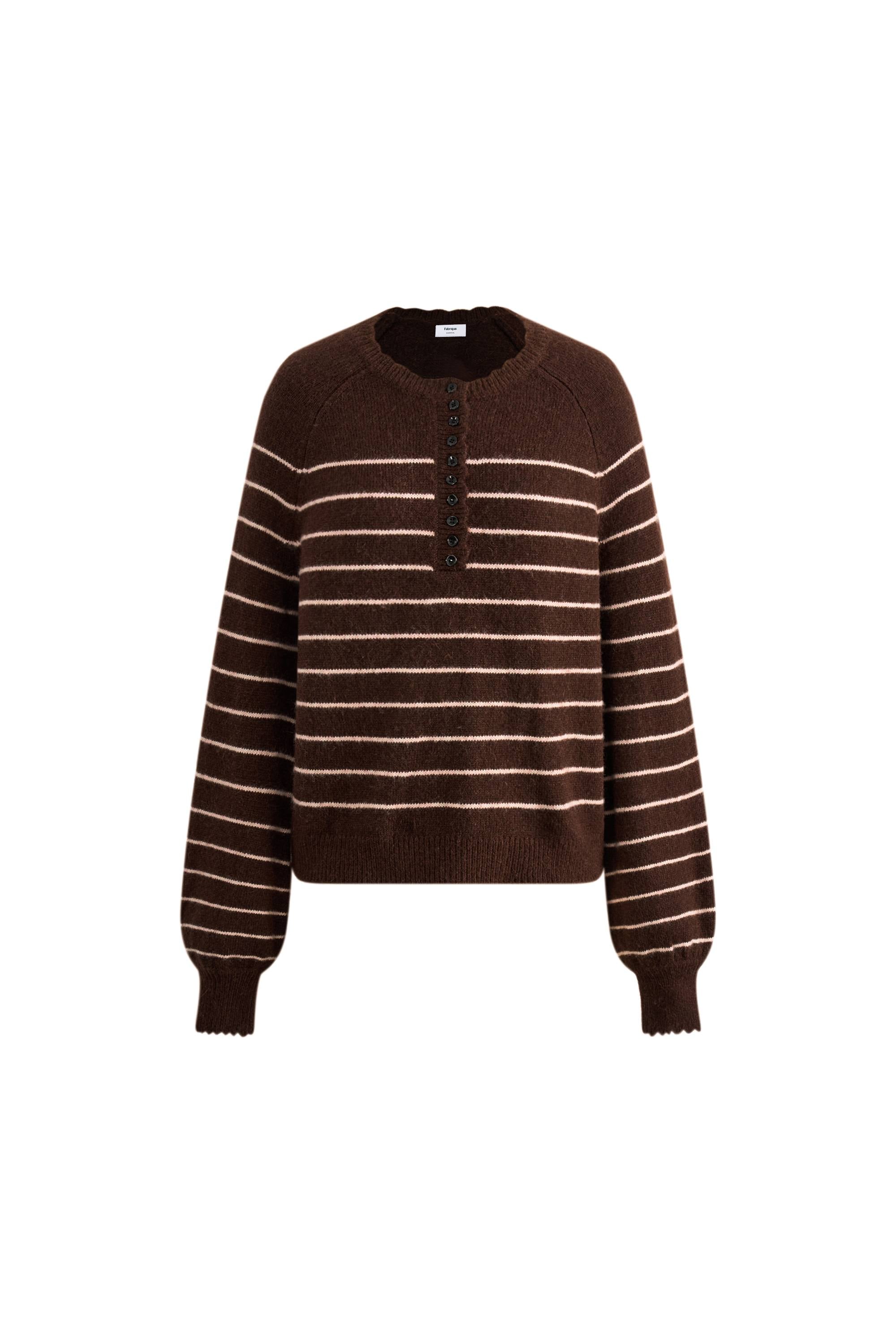 Rhea Scalloped Henley Striped Sweater in Wool-Alpaca Knit