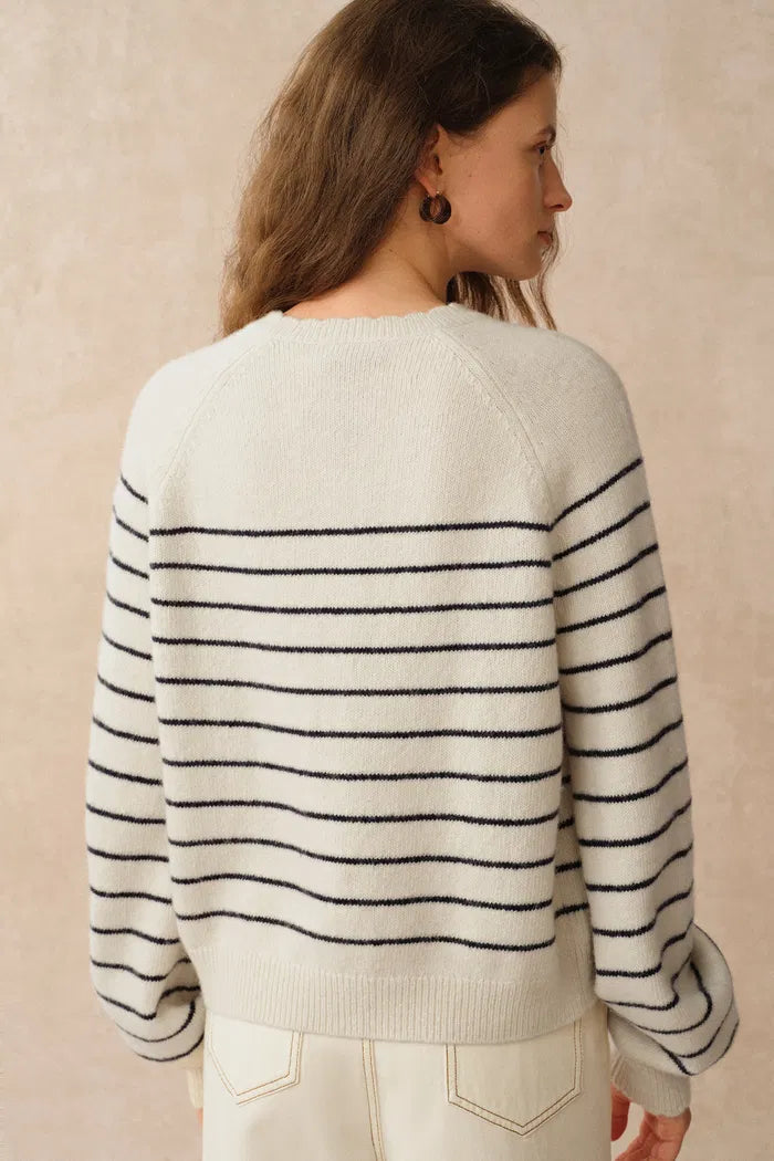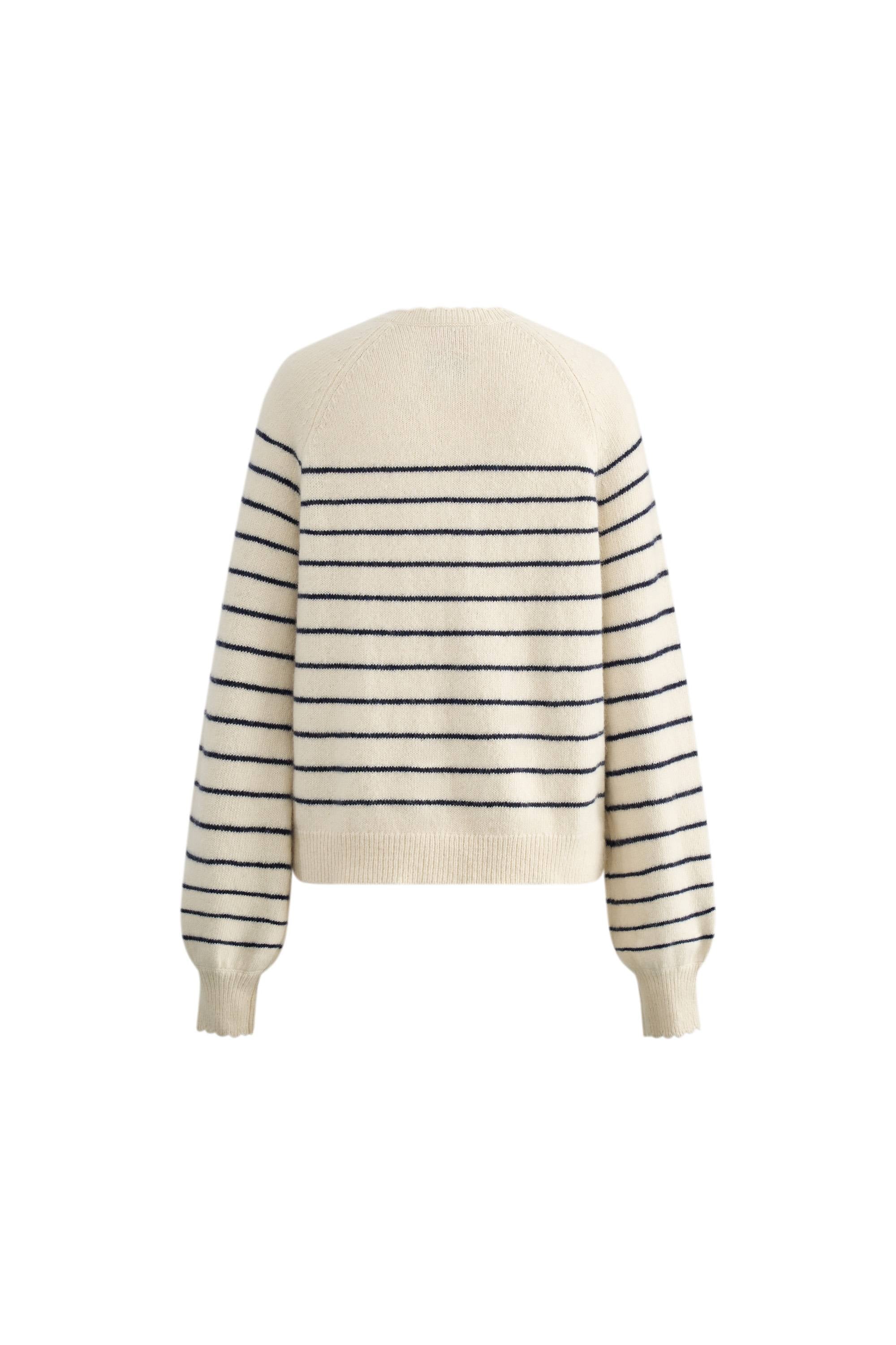 Rhea Scalloped Henley Striped Sweater in Wool-Alpaca Knit