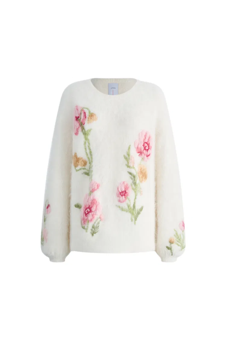 Rhoeadine 3D Jacquard Embroidered Sweater in Alpaca Wool