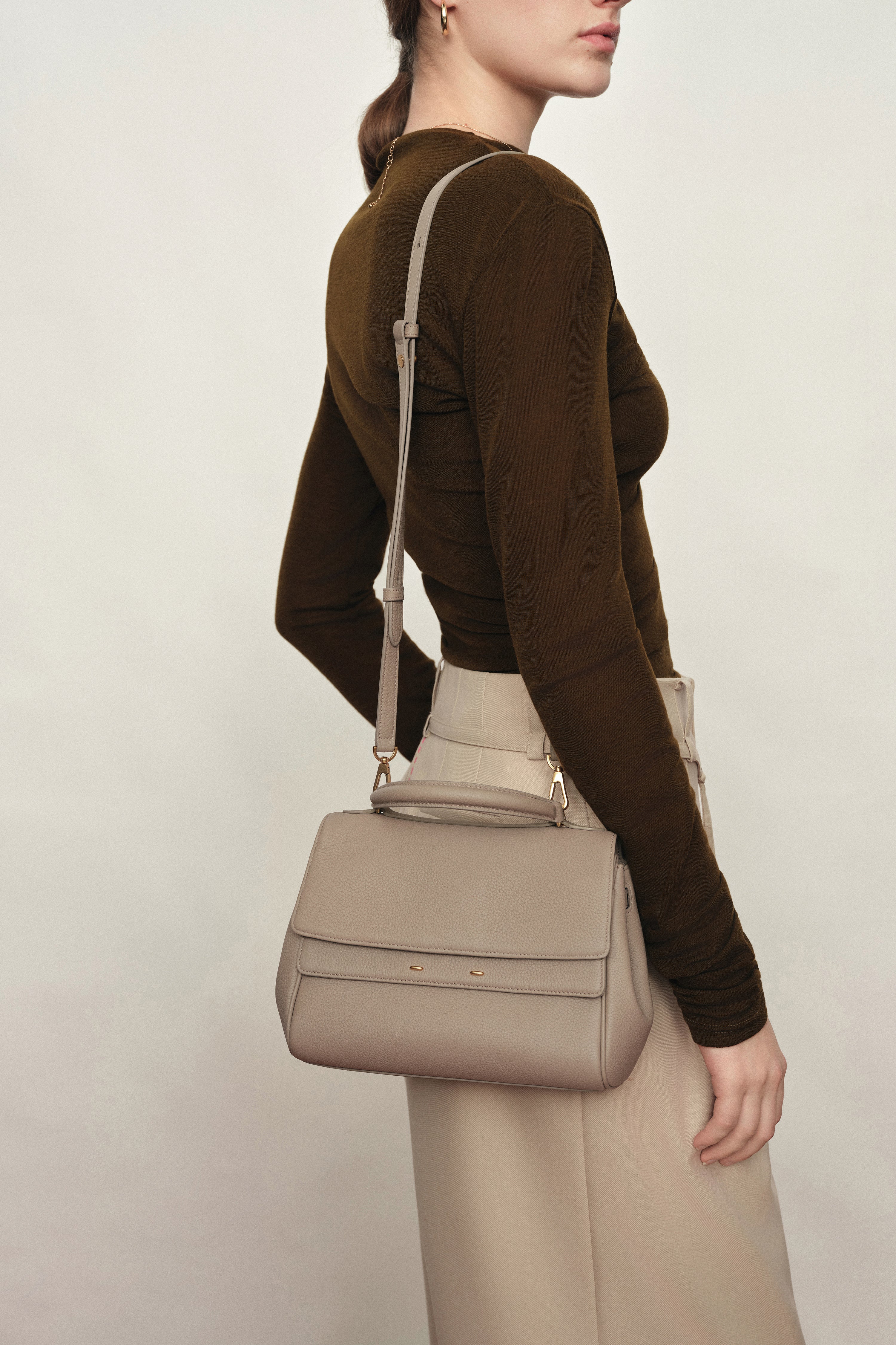 • Silhouette: Soft-curve trapeze satchel (curved trapezoid)