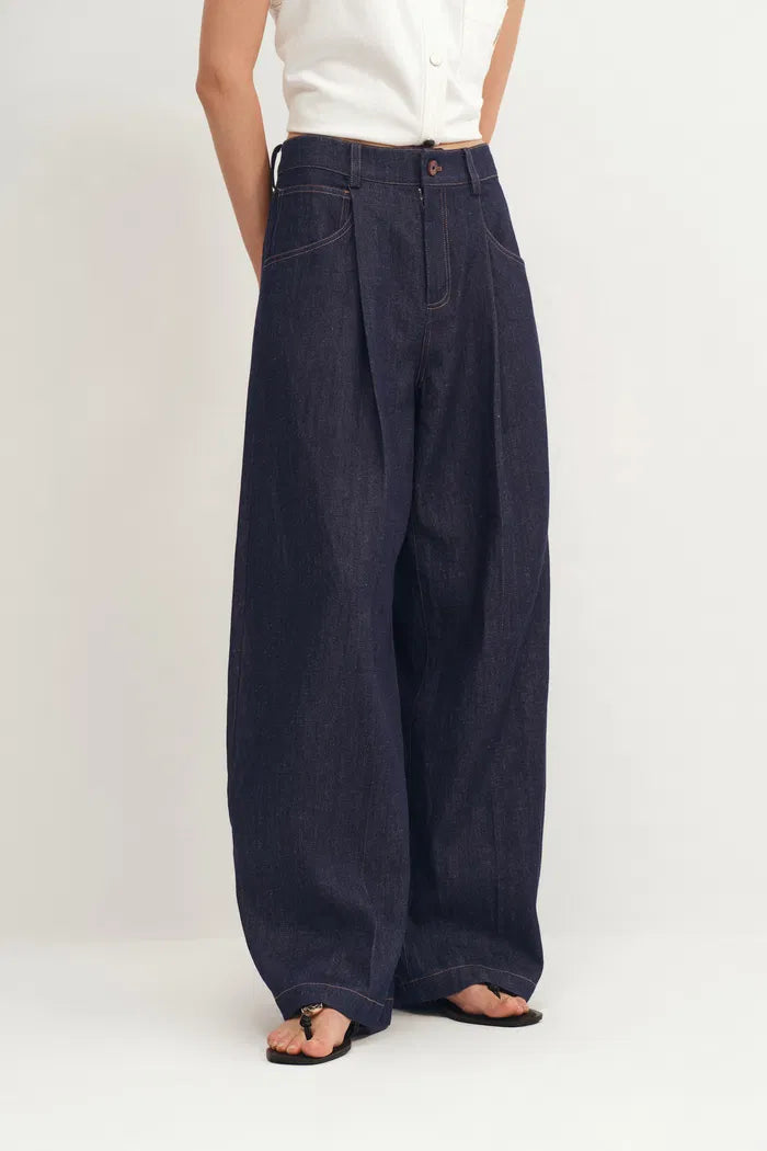 Riley Balloon Leg Jeans in Cotton Linen Denim